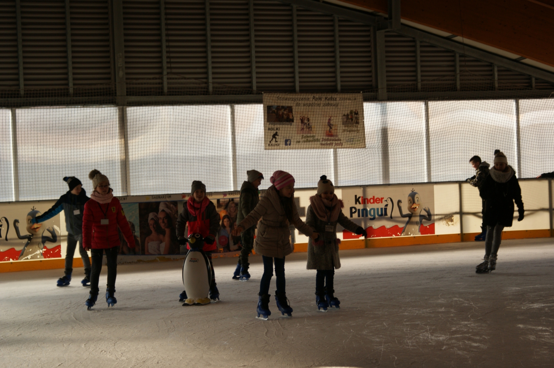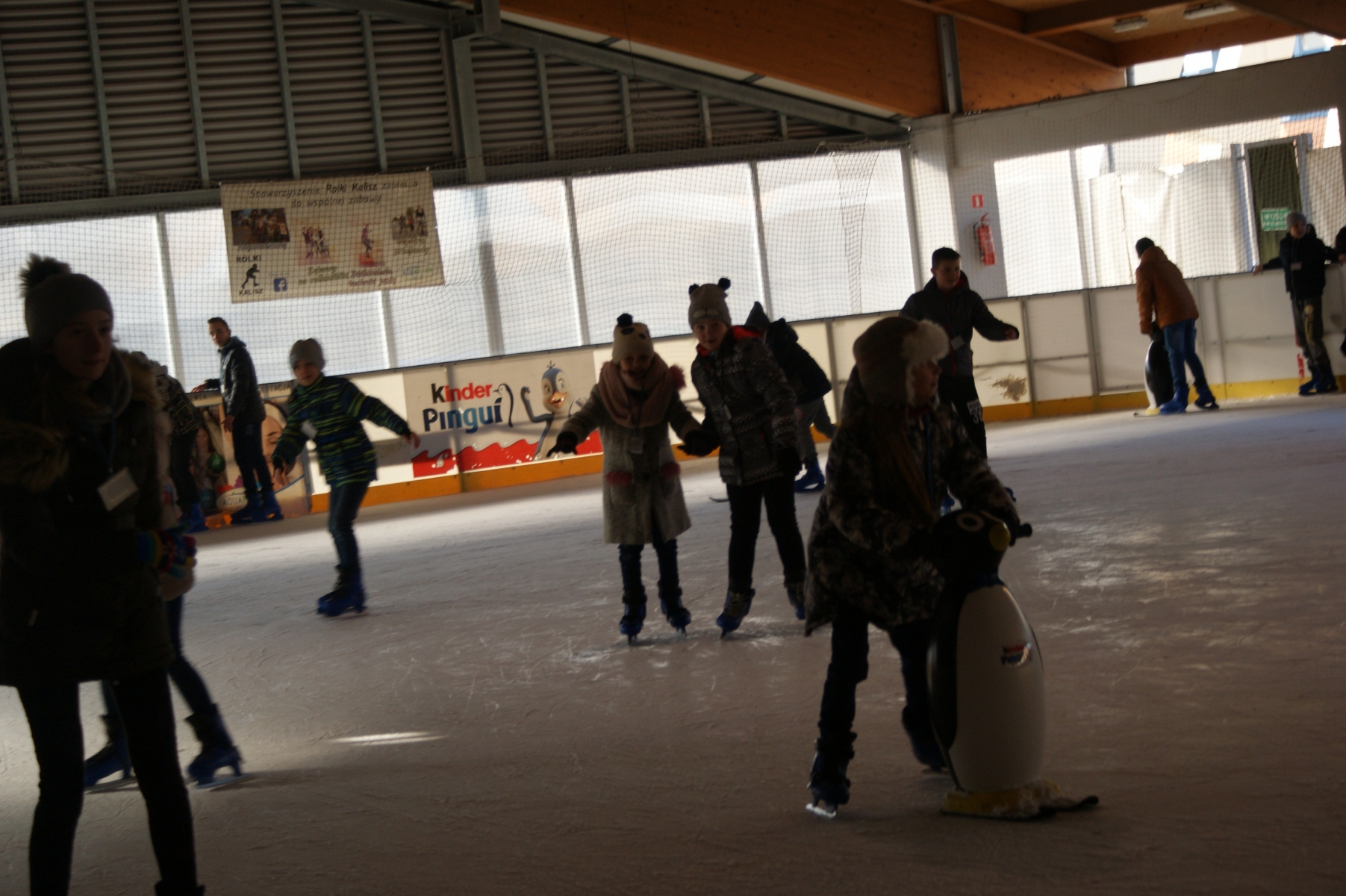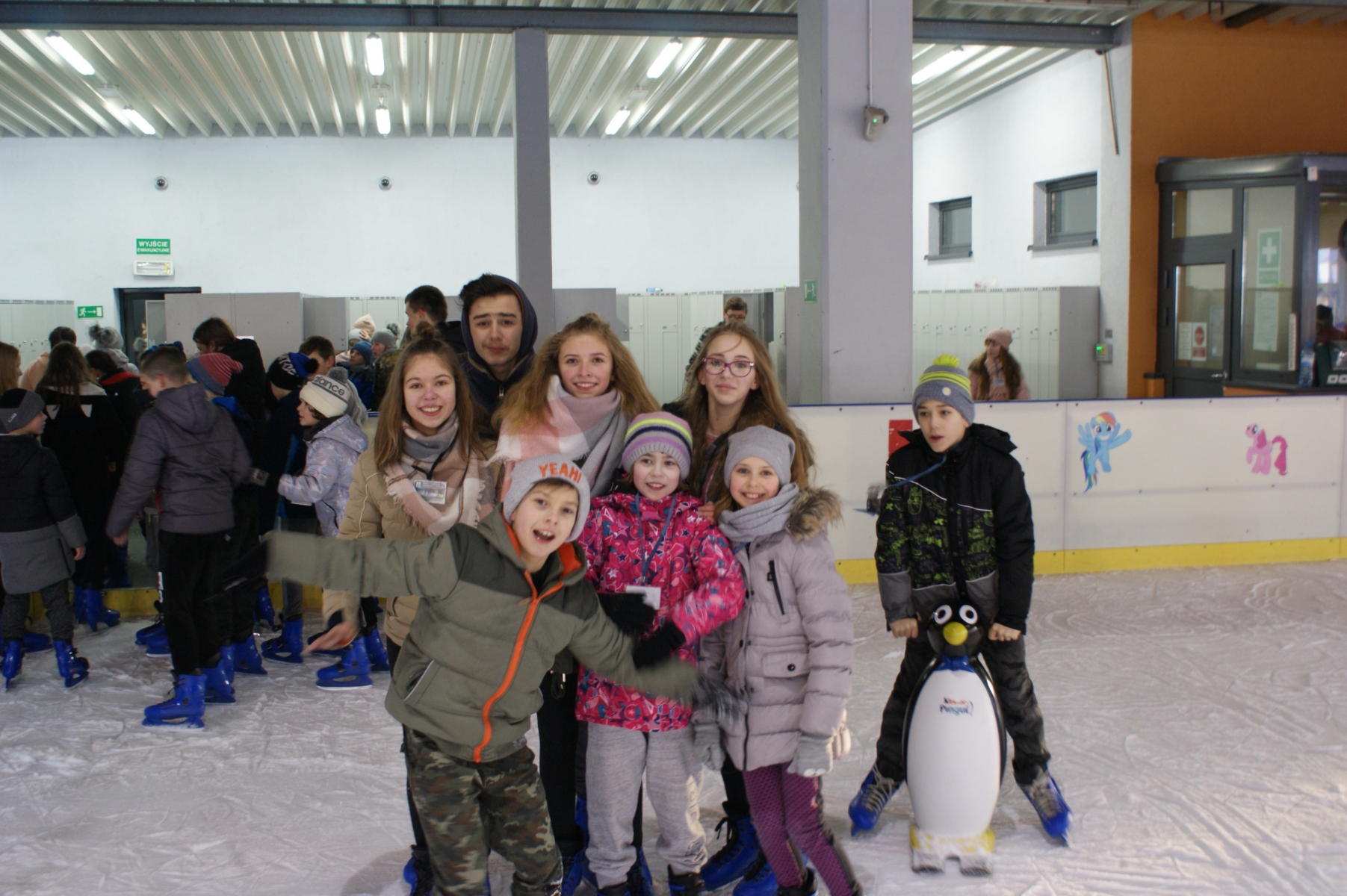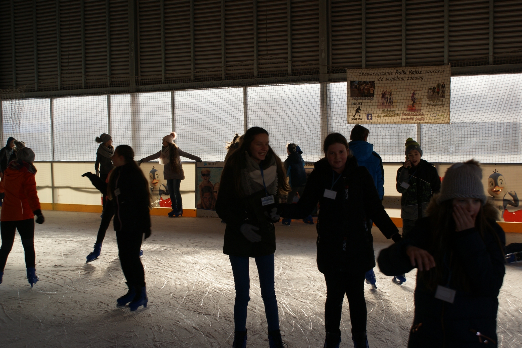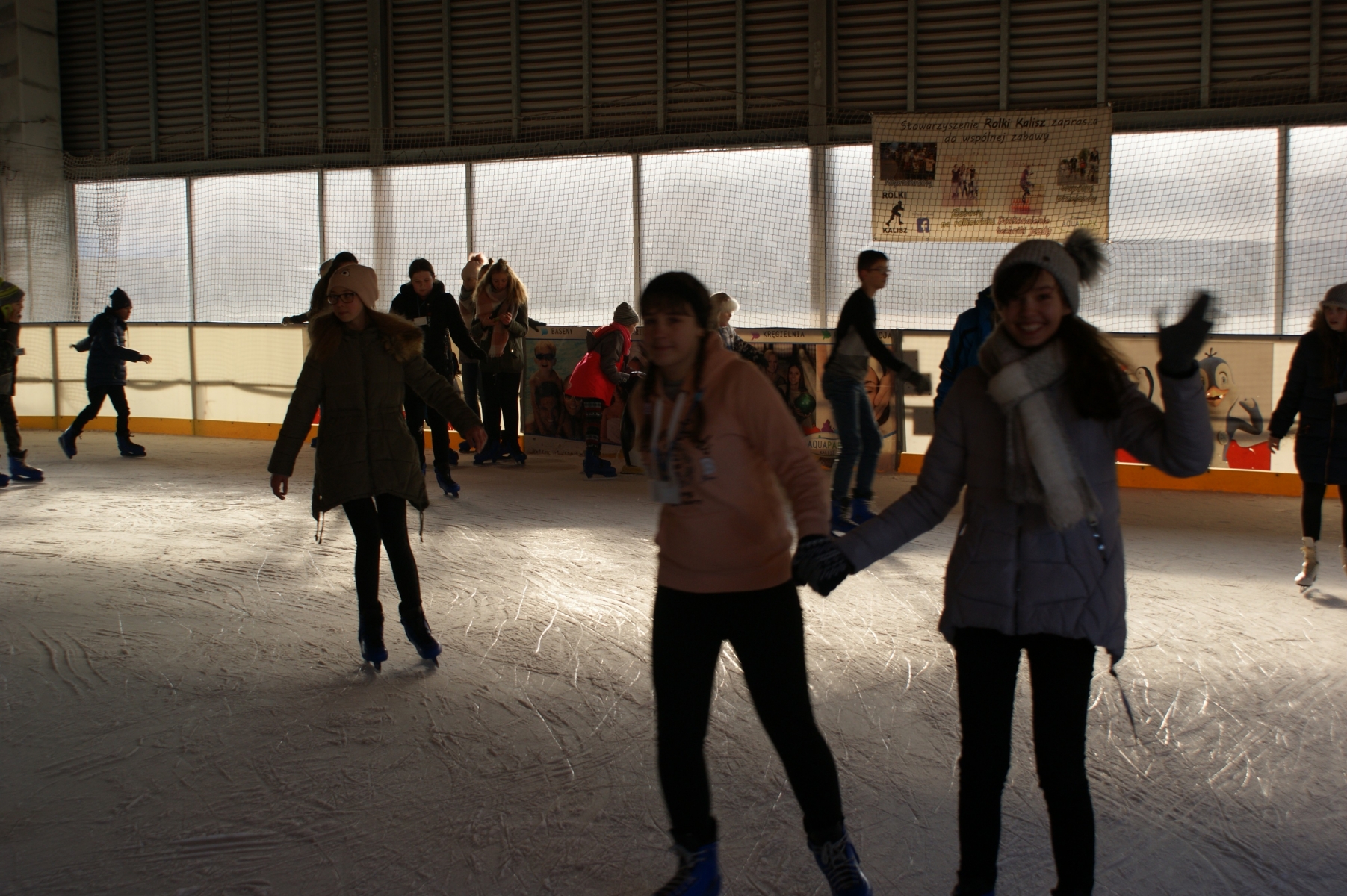 W czwartek 08 lutego grupa 94 uczniów wraz z opiekunami udała się na lodowisko w Kaliszu. Młodzi adepci zimowego szaleństwa podczas dwóch godzin na lodowisku poznali atrakcję łyżew. Uczniowie zaawansowani rozwijali swoje umiejętności jazdy na lodzie, natomiast początkujący poznali technikę utrzymania się na lodzie, odpychania oraz "miękkiego lądowania". Wszystkie potknięcia, niekontrolowane obroty przyśpieszenia, oraz próby szaleństwa były szybko weryfikowane przez śliskie podłoże. Wszystkim upadkom towarzyszył śmiech i zabawa. Jazda na łyżwach była świetną formą aktywnego odpoczynku tuż przed feriami zimowymi. Opiekę podczas wycieczki pełnili: Dorota Cyran, Justyna Pietrzak, Magdalena Nowicka, Urszula Kamińska, Julita Muszalska, Teresa Klimt oraz Radosław Zwoliński.
