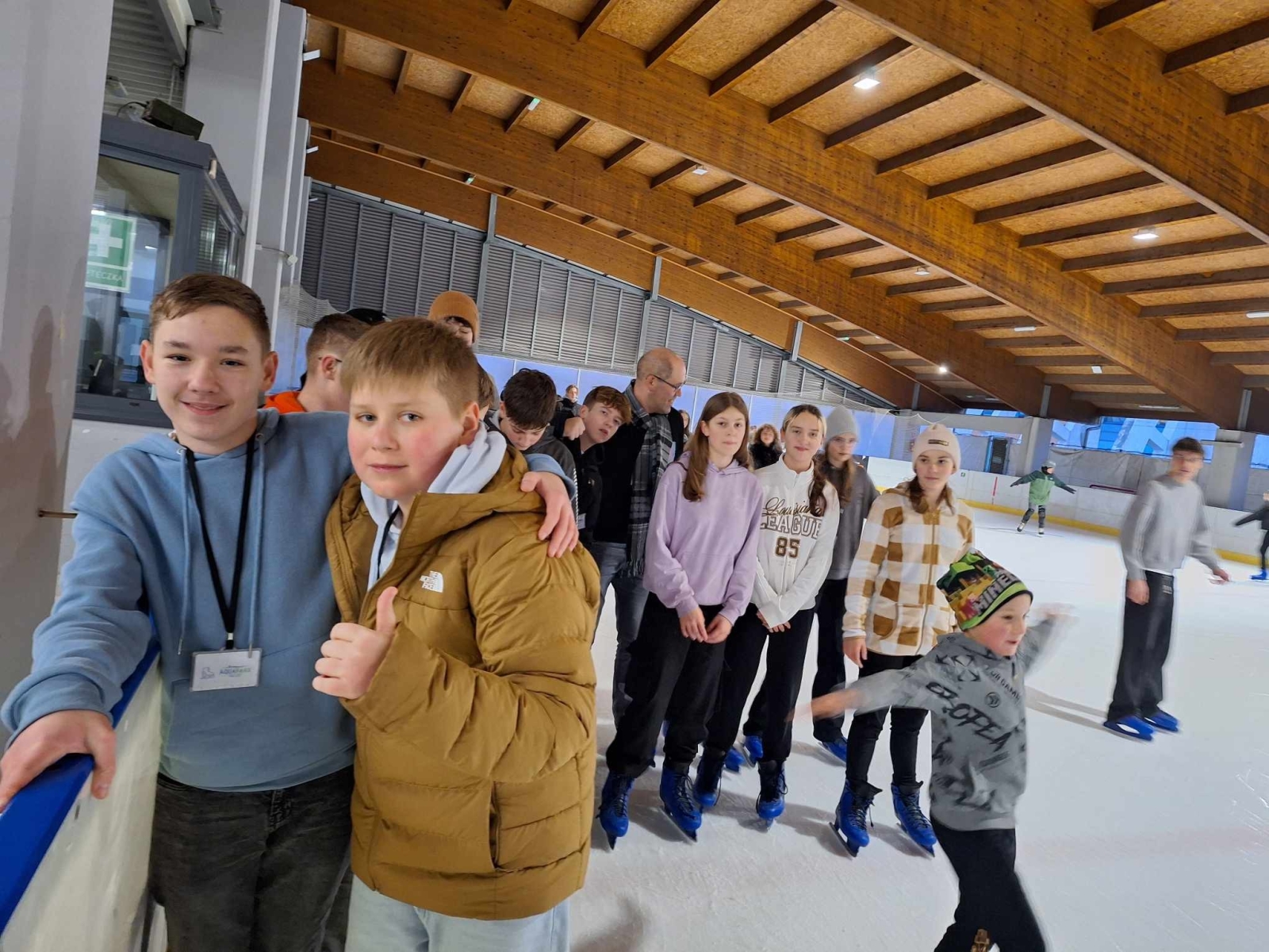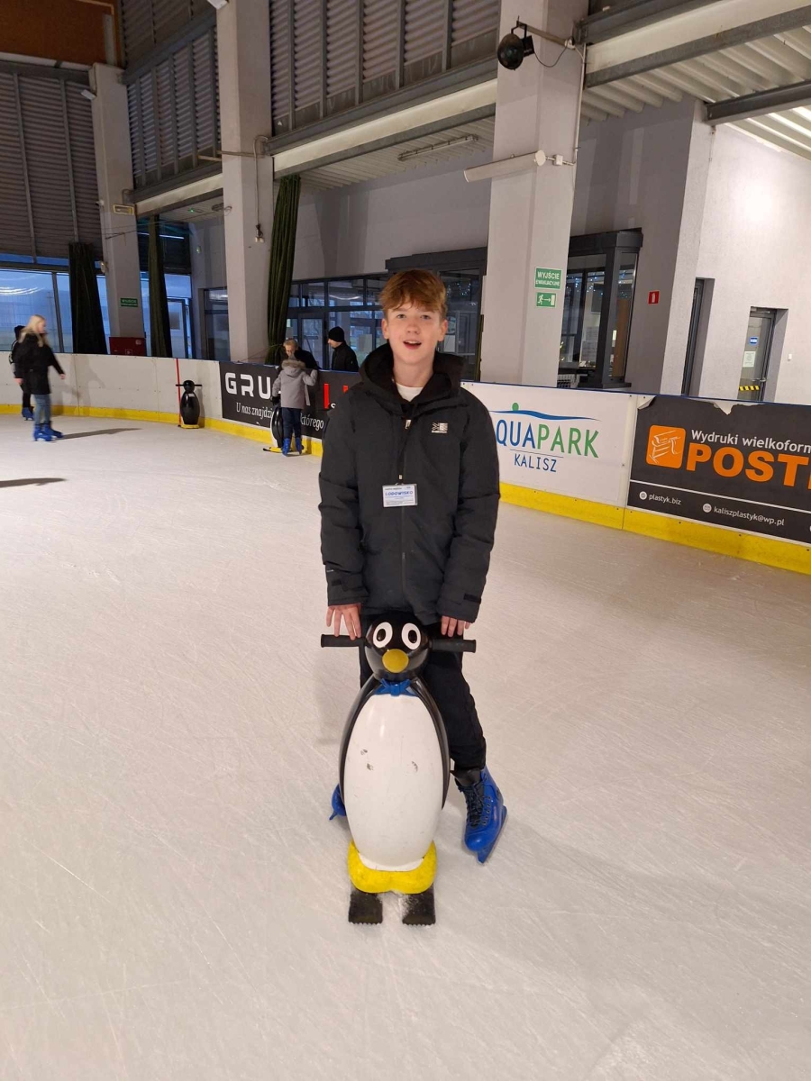 Klasa sportowa 7a wraz z opiekunami udała się na lodowisko w Kaliszu. Młodzi adepci zimowego szaleństwa podczas dwóch godzin na lodowisku poznali atrakcję łyżew. Uczniowie zaawansowani rozwijali swoje umiejętności jazdy na lodzie, natomiast początkujący poznali technikę utrzymania się na lodzie, odpychania oraz "miękkiego lądowania". Wszystkie potknięcia, niekontrolowane obroty, przyśpieszenia, oraz próby szaleństwa były szybko weryfikowane przez śliskie podłoże. Wszystkim upadkom towarzyszył śmiech i zabawa. Jazda na łyżwach była świetną formą aktywnego odpoczynku tuż przed przerwą świąteczną. Opiekę podczas wycieczki pełnili Mariusz Herbich i Radosław Zwoliński.