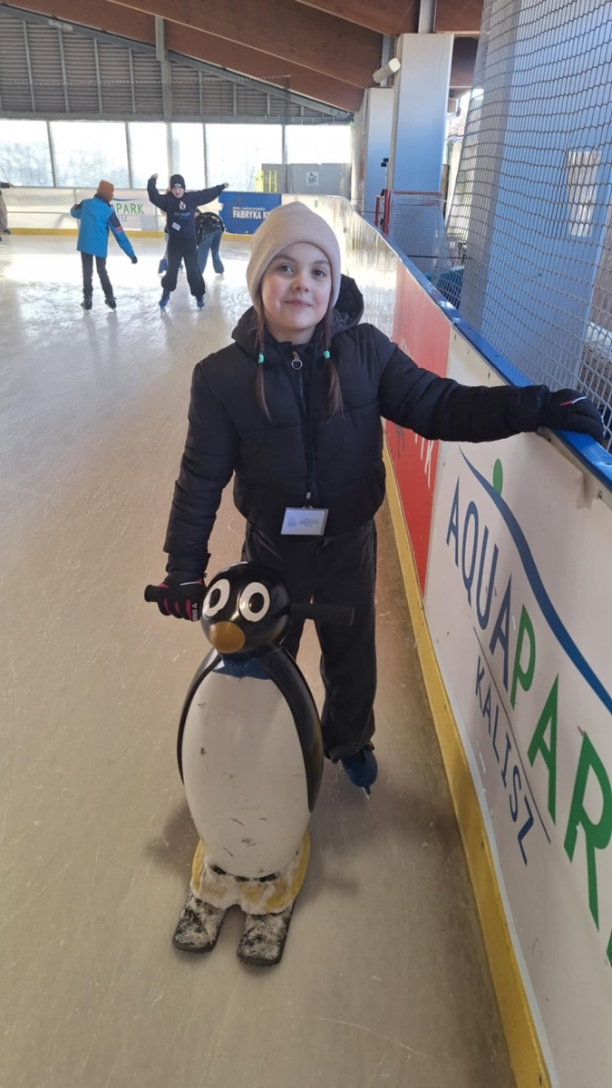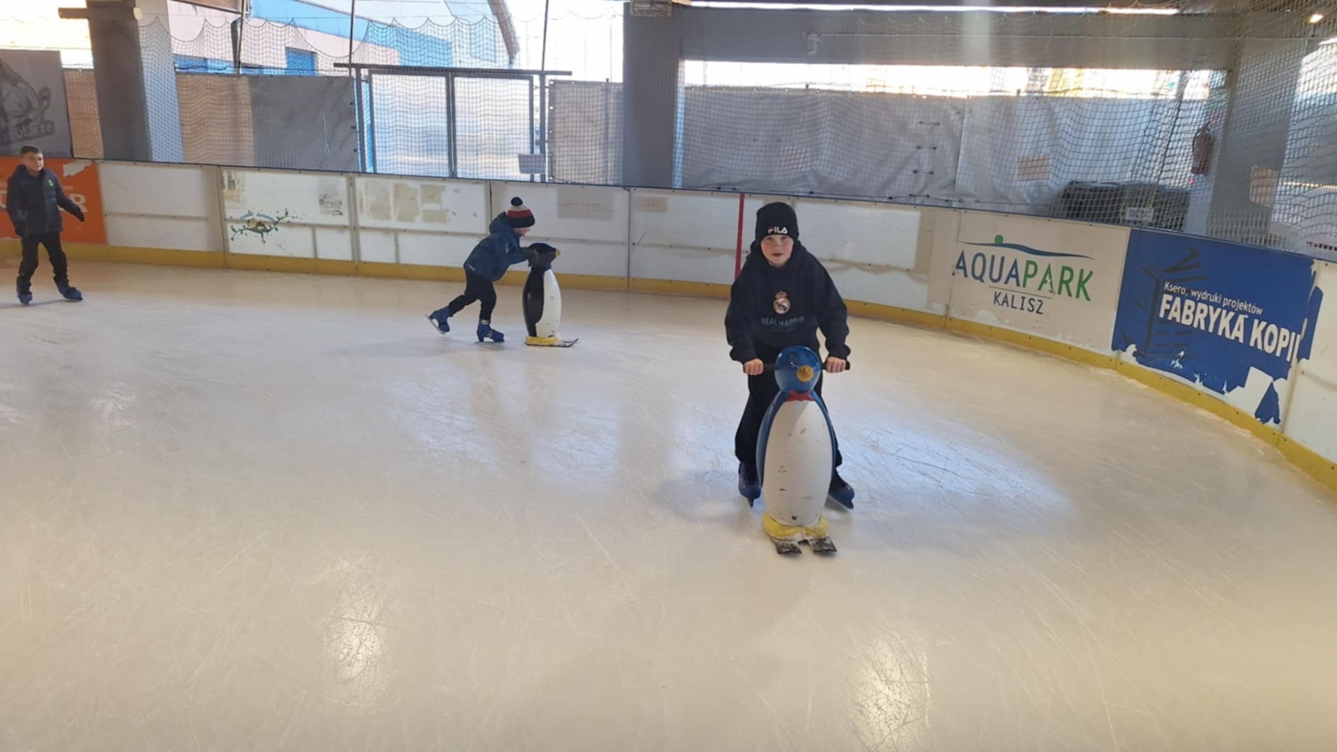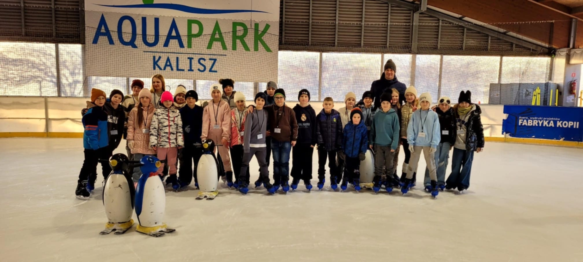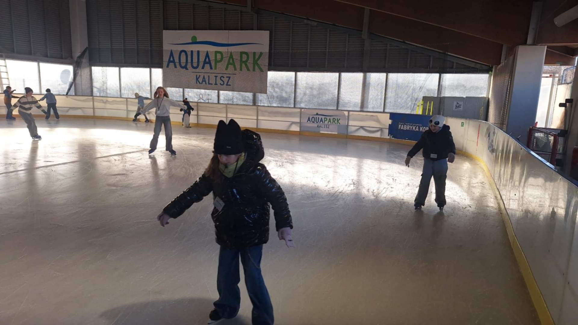 Klasa sportowa 4 a wraz z opiekunami udała się na lodowisko w Kaliszu. Młodzi adepci zimowego szaleństwa podczas dwóch godzin na lodowisku poznali atrakcję łyżew. Uczniowie zaawansowani rozwijali swoje umiejętności jazdy na lodzie, natomiast początkujący poznali technikę utrzymania się na lodzie, odpychania oraz "miękkiego lądowania". Wszystkie potknięcia, niekontrolowane obroty, przyśpieszenia, oraz próby szaleństwa były szybko weryfikowane przez śliskie podłoże. Wszystkim upadkom towarzyszył śmiech i zabawa. Jazda na łyżwach była świetną formą aktywnego odpoczynku. Opiekę podczas wycieczki pełnili Panowie: Marek Nowicki i Radosław Zwoliński.