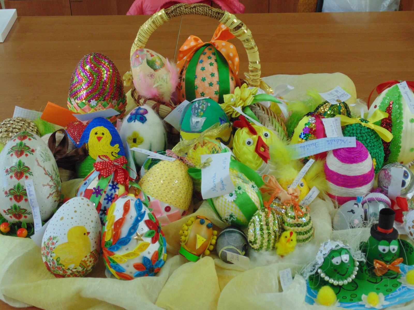 Do konkursu zgłoszono ponad trzydzieści pisanek uczniów klas I-VI, wykonanych przeróżnymi technikami zdobienia i na różnych materiałach.