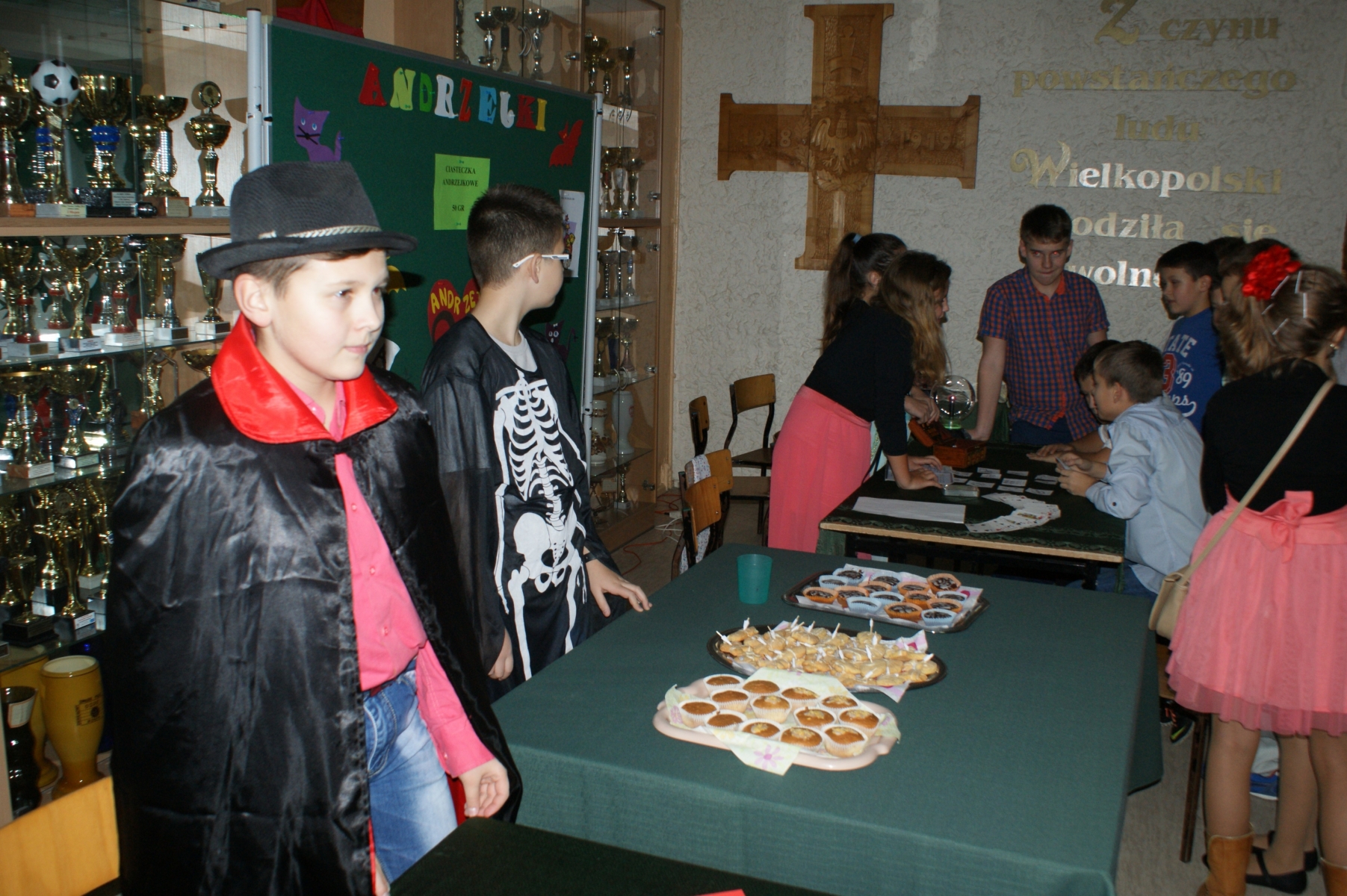 Z racji wieczoru andrzejkowego nie mogło oczywiście zabraknąć wróżb przygotowanych przez uczniów klasy VIb wraz z opiekunami Samorządu Uczniowskiego, które cieszyły się wśród dzieci ogromnym zainteresowaniem, wszak Andrzejki, to w Polsce tradycyjna okazja do wróżenia. Uczniowie mogli poznać swoją przyszłość czy imię ukochanej lub ukochanego, a przepowiednie te przekazywali czarodzieje, wróżki i czarownice. Dodatkowym elementem zabawy była sprzedaż andrzejkowych ciastek z wróżbą, które samodzielnie wypiekli uczniowie klasy VIb.
