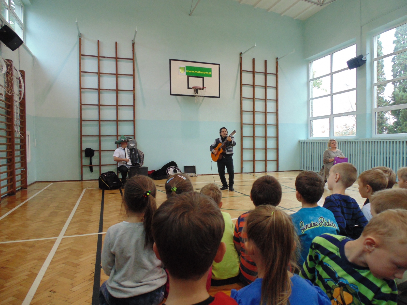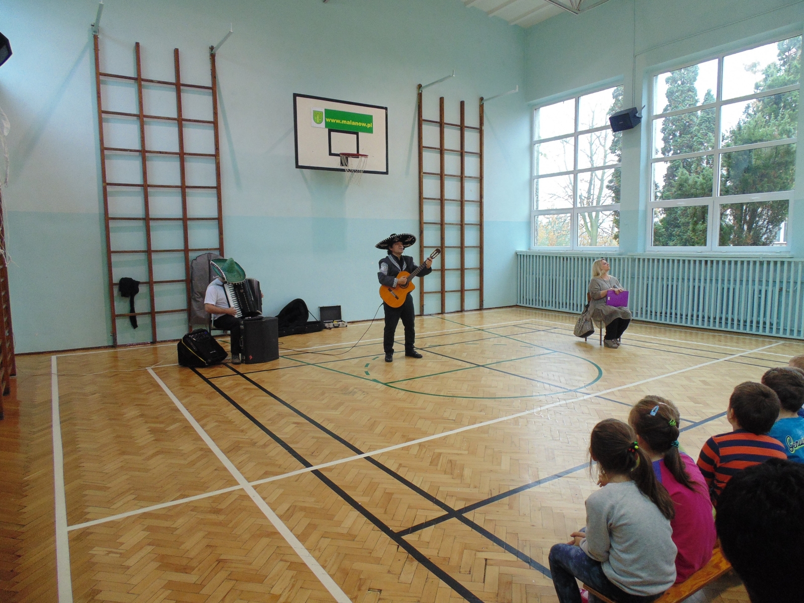 Dnia 1 października odbyła się w Szkole Podstawowej w Malanowie kolejna audycja muzyczna poświęcona muzyce Ameryki Południowej. Gościem spotkania był artysta Rafael Alvaro Alvarado, który zaprezentował grane na gitarze utwory z Meksyku, Wenezueli, Kuby i Brazylii. Uczniowie z radością i zainteresowaniem wysłuchali popularnych przebojów m. in. „Mariachi”, „Guanta Namera”, „Moliendo Cafe”, „La Bamba”, „Se en te pego” czy „La Cucaracha”. Dzieci z ciekawością wysłuchały opowieści prowadzącej pani Ewy Szymkiewicz o znanym przeboju meksykańskim „La Cucaracha”, tytułowym bohaterze utworu - tańczącym karaluchu bez jednej nogi. Zainteresowanie wzbudził również utwór „El Mariachi Lo Co”, do którego nasz gość nauczył młodszych i starszych słuchaczy kroków tanecznych znanego utworu meksykańskiego. Wszyscy świetnie bawili się przy dynamicznych i znanych dźwiękach muzyki.