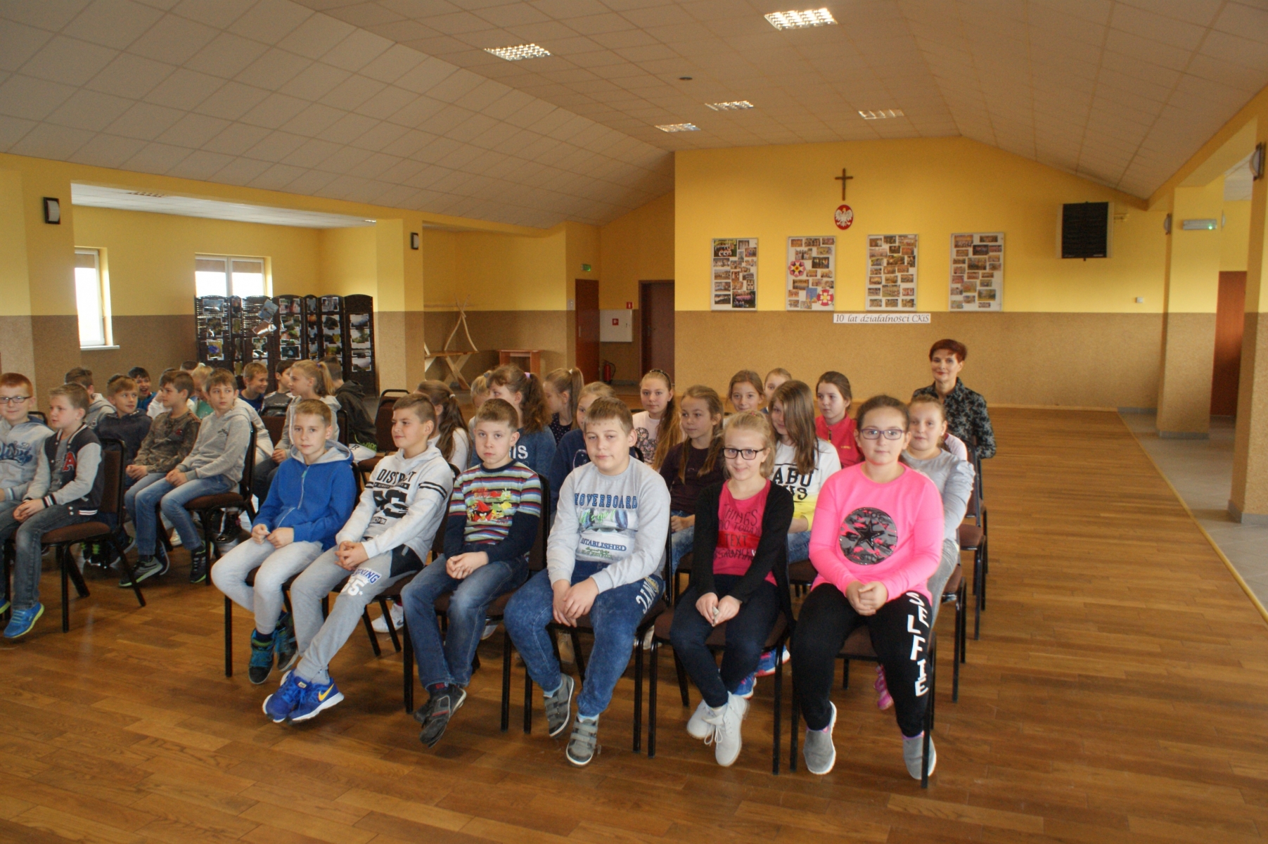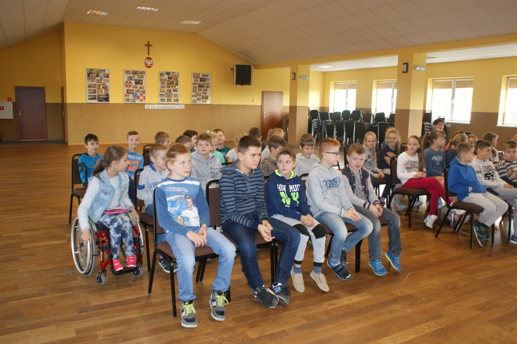 Pan Paweł zadbał o bardzo miłą atmosferę kontaktu z dziećmi, które z dużym zainteresowaniem słuchały słów pisarza. W pierwszej części spotkania młodzi czytelnicy dowiedzieli się jakie były początki drogi literackiej autora znanych i chętnie czytanych przez szerokiego odbiorcę książek. W dalszej części odbyły się sympatyczne „pogawędki przy herbatce”. Dotyczyły one tematów poruszanych przez pisarza w swoim literackim dorobku. Młodzi czytelnicy w ten nietypowy sposób poznawali bohaterów książek pana Beręsewicza. Za każdym razem pisarz, bardzo zgrabnie, z nutą dowcipu, pozostawiał uczniów w sytuacji ogromnego zainteresowania losami bohaterów, zachęcając w ten sposób do przeczytania swych książek. Dzieci nie miały okazji na chwilę nudy, ale największe ożywienie nastąpiło podczas rozgrywek piłkarskich, które w jednej chwili zamieniły salę w boisko sportowe, wszystko po to, aby przedstawić losy bohatera jednej z książek. Po wystudzeniu piłkarskich emocji nadszedł czas na rozmowy o zagadkach kryminalnych i finansach. Po podróżach w świecie literatury uczniowie mogli zadawać pytania kierowane bezpośrednio do pana Beręsewicza. Pytania były bardzo ciekawe i przemyślane, a odpowiedzi pisarza pozwoliły na jeszcze lepsze poznanie współczesnego twórcy literatury dla dzieci i młodzieży.