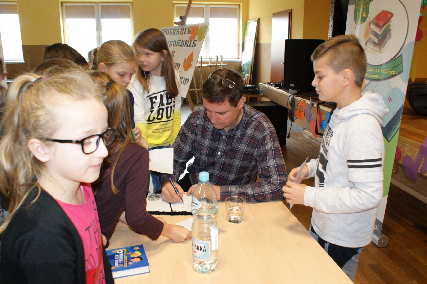 Spotkanie zakończyło się wpisem dedykacji autora do książek zakupionych przez naszych uczniów. To dobry początek zainteresowania literaturą i czytelnictwem.