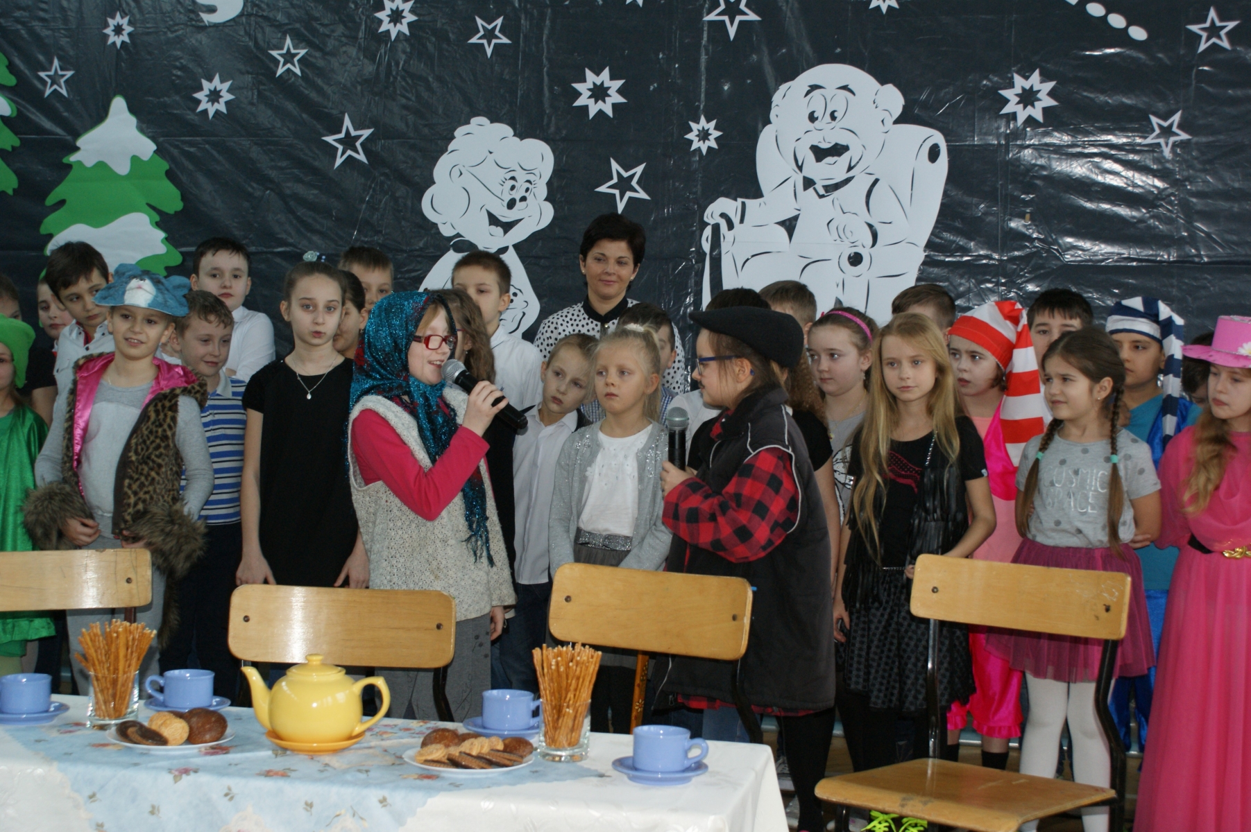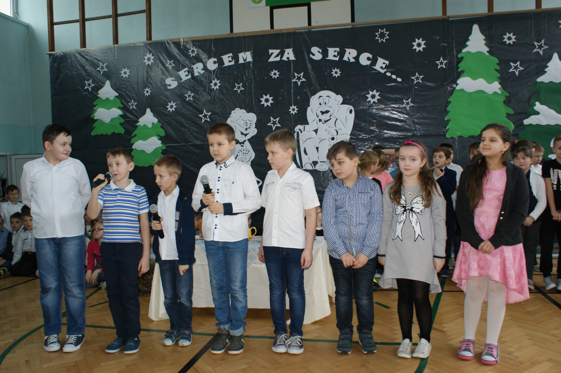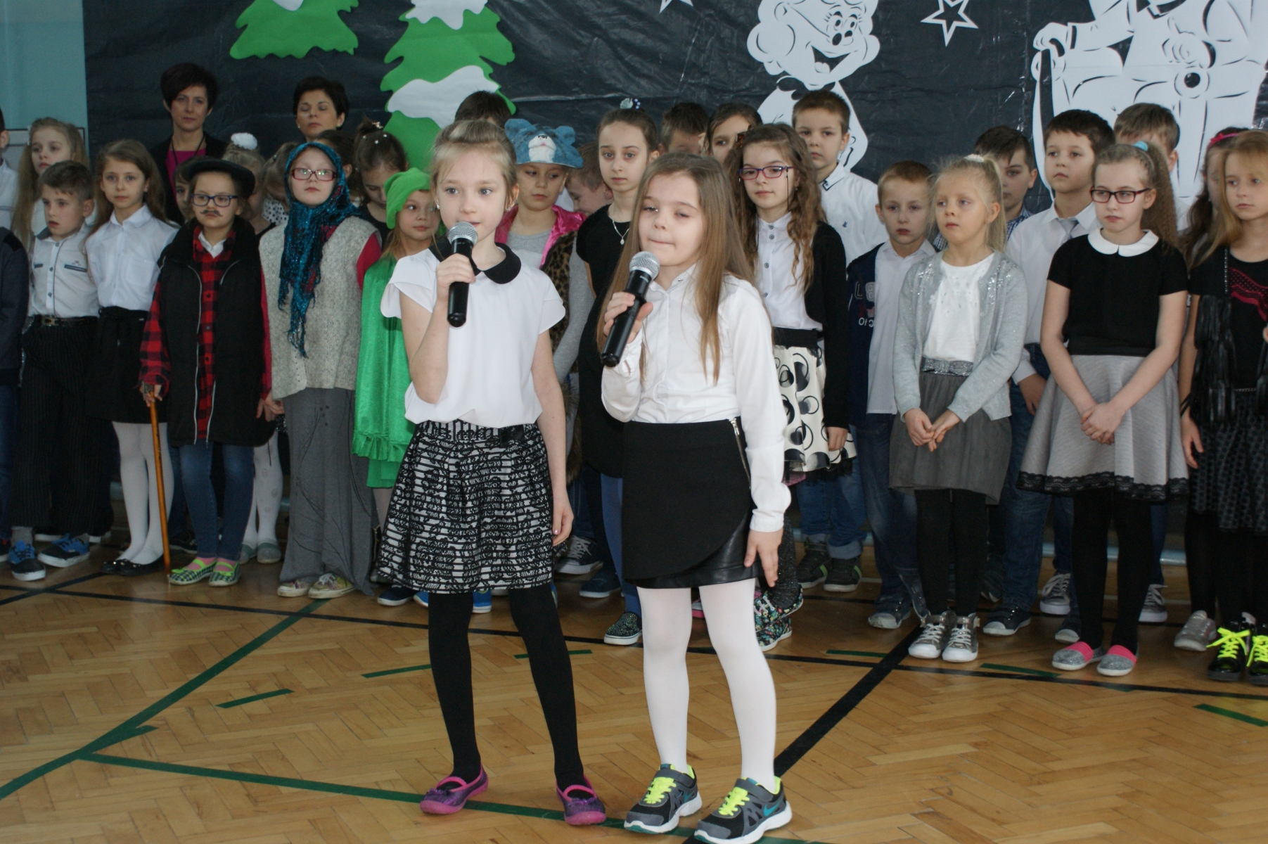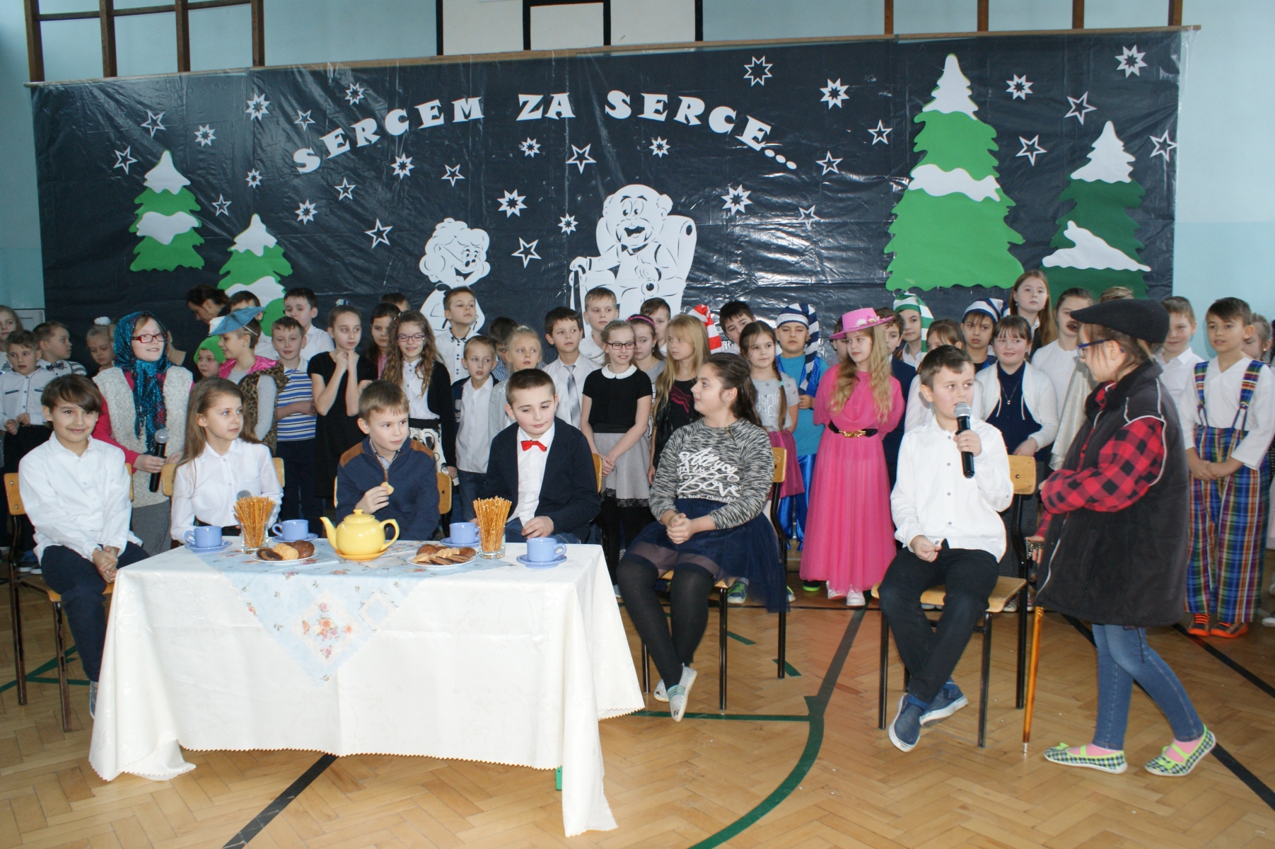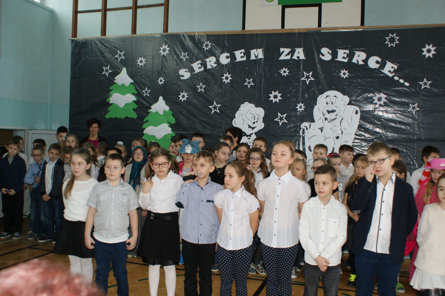 Wszystkie wnuczęta bardzo dobrze pamiętają o tym, jak wspaniale Babcie i Dziadkowie opowiadają bajki, śpiewają kołysanki, przytulają i pocieszają, kiedy w trudnych chwilach. Dlatego w tym dniu bardzo się starali, aby Goście miło i wesoło spędzili czas. Wierszem i piosenką wyrażali swoją miłość, wdzięczność i przywiązanie. Dumnie prezentowali się kolejno uczniowie wszystkich klas, nie zabrakło też odrobiny dobrego humoru. Dodatkową atrakcję stanowił występ zespołu tanecznego, którego opiekunem jest p. Ewa Stelmaszak.
