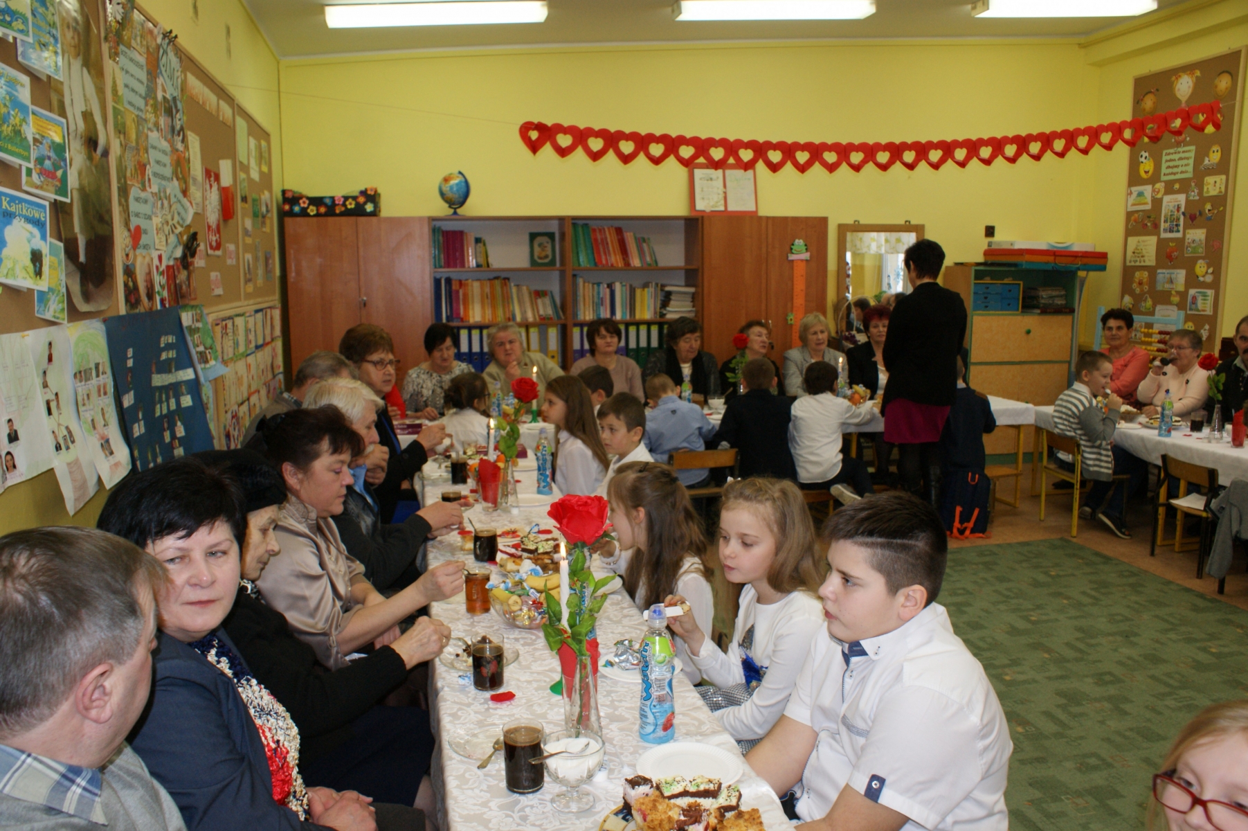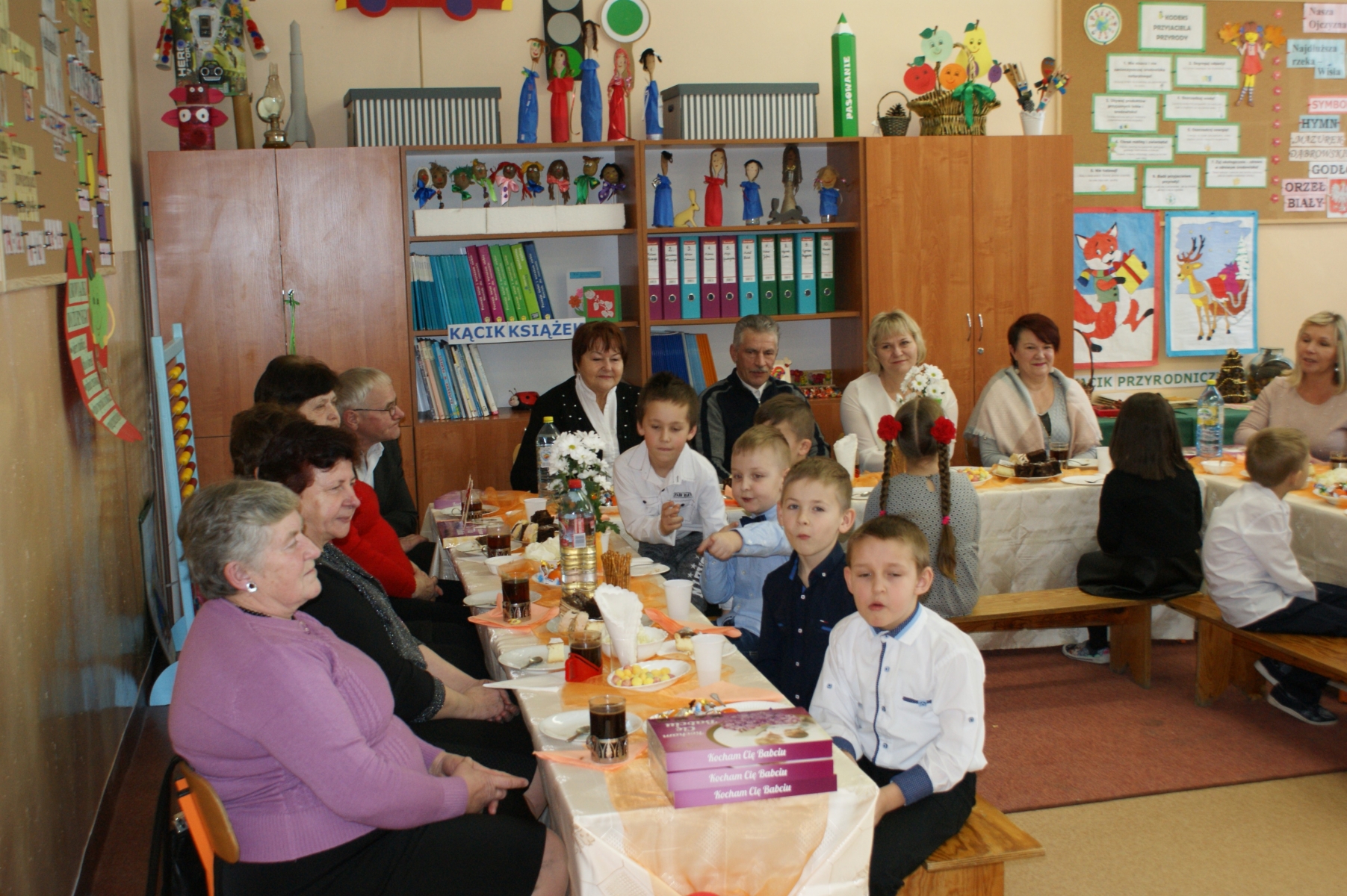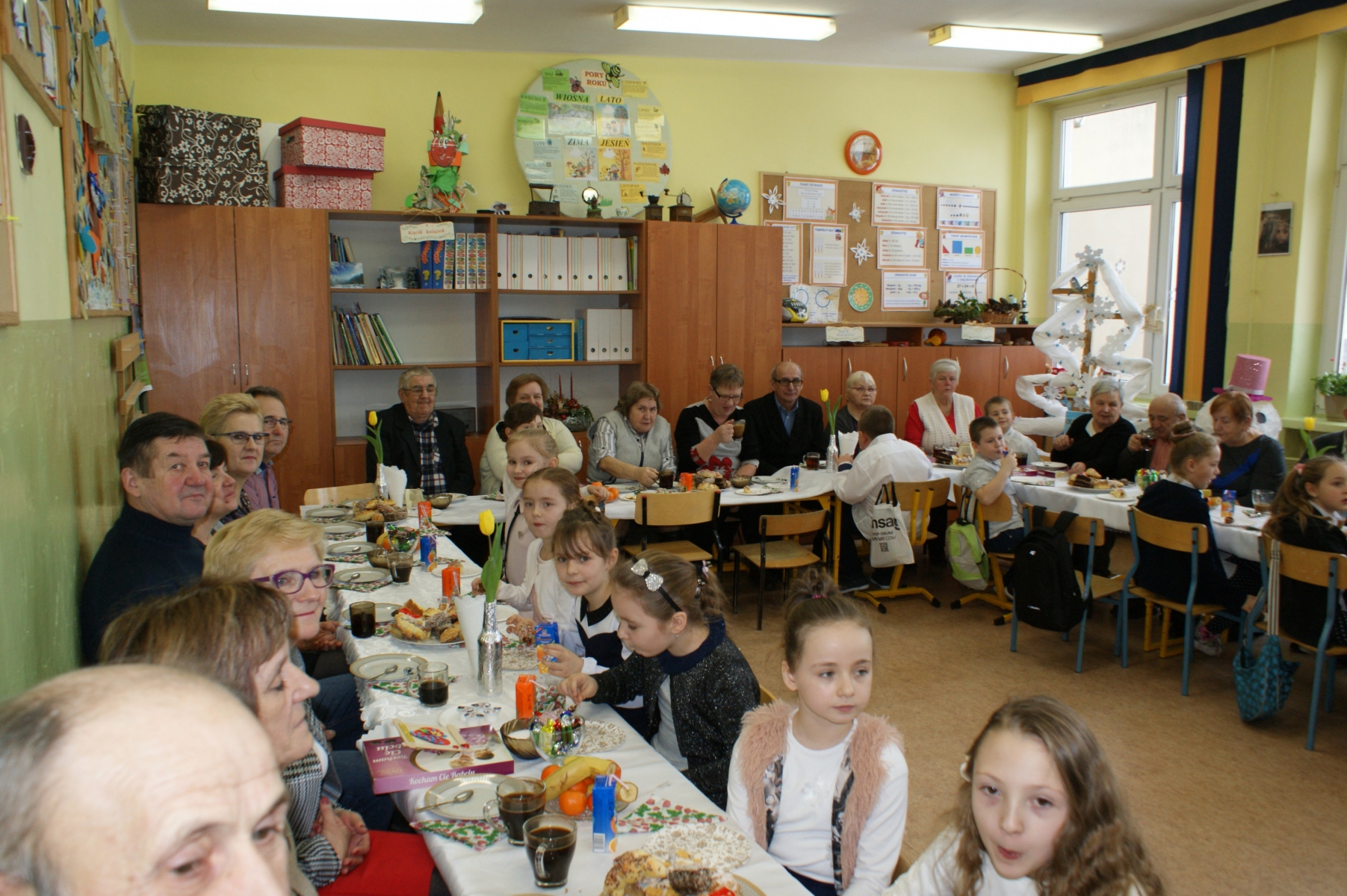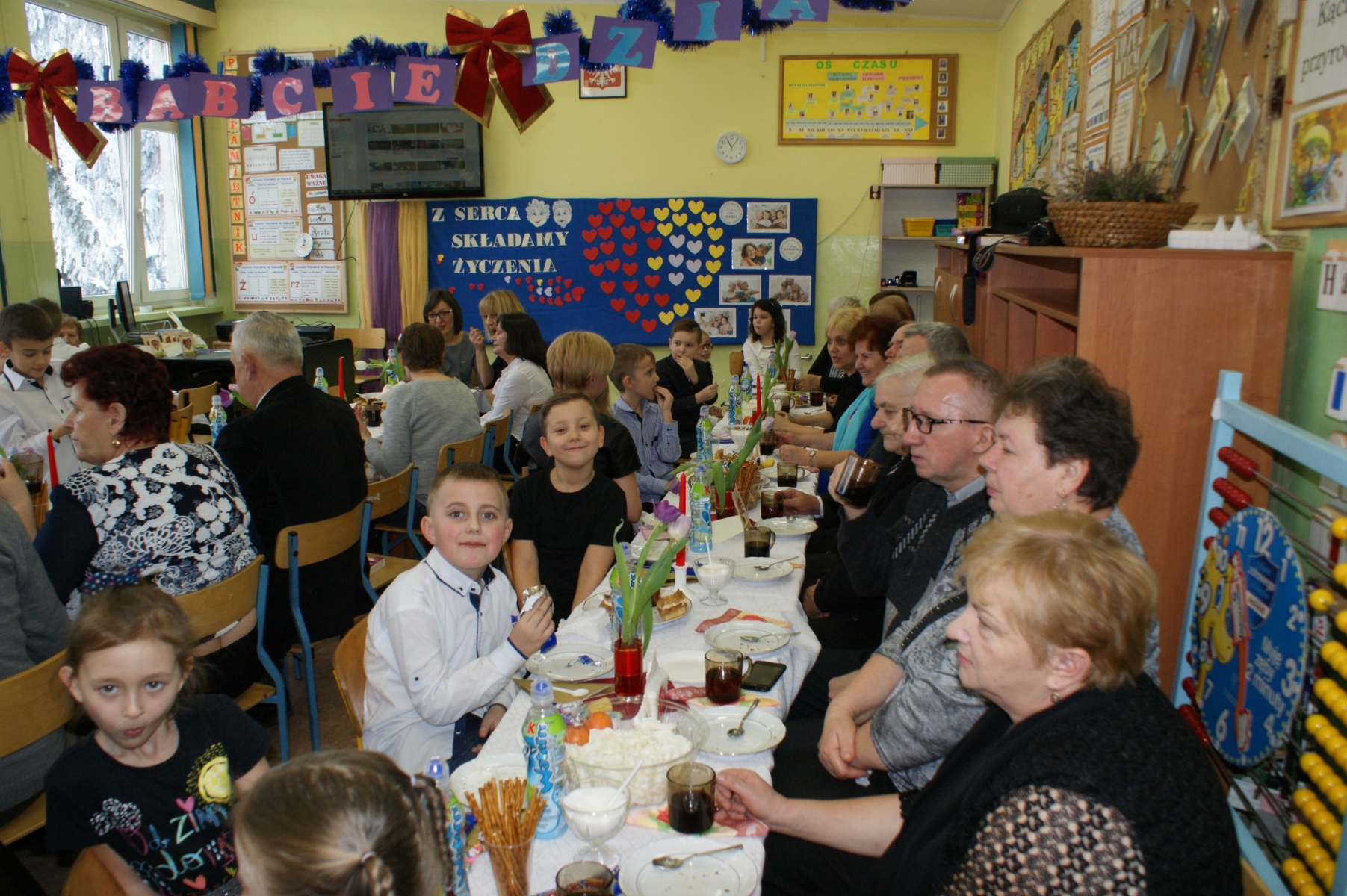 Po spotkaniu w sali gimnastycznej wnuczęta zaprosiły Babcie i Dziadków do swoich klas. Składali życzenia, wręczali upominki, dziękowali za miłość i opiekę. Dzięki bardzo dobrej organizacji i pomocy Rodziców, Goście i wnuczęta miło spędzili czas na wspólnym poczęstunku. Nad organizacją i sprawnym przebiegiem uroczystości czuwały Wychowawczynie: Małgorzata Wągiel, Justyna Pietrzak, Joanna Nowakowska, Ewa Stelmaszak, Maria Prentczyńska, Aleksandra Jasnowska, Emilia Andrzejczak.
