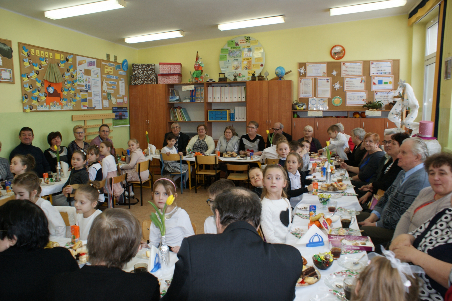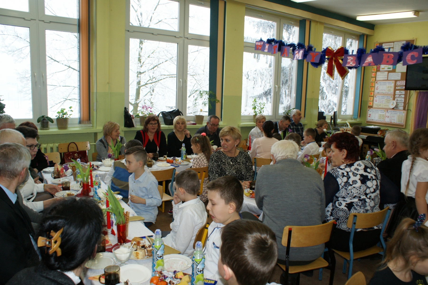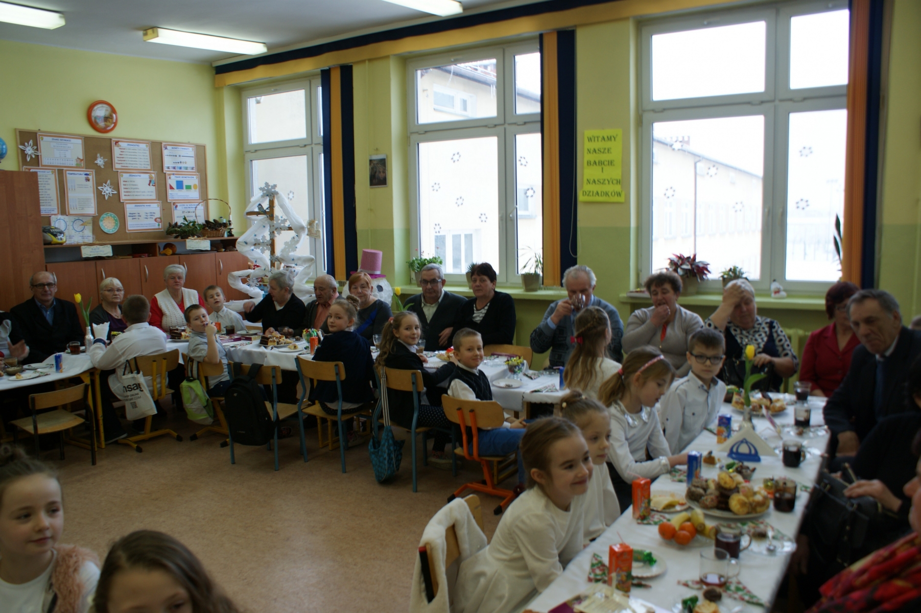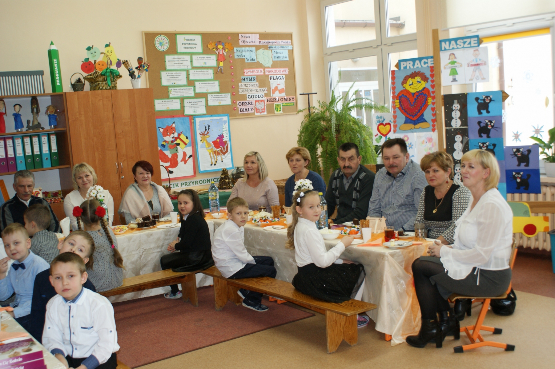 Po spotkaniu w sali gimnastycznej wnuczęta zaprosiły Babcie i Dziadków do swoich klas. Składali życzenia, wręczali upominki, dziękowali za miłość i opiekę. Dzięki bardzo dobrej organizacji i pomocy Rodziców, Goście i wnuczęta miło spędzili czas na wspólnym poczęstunku. Nad organizacją i sprawnym przebiegiem uroczystości czuwały Wychowawczynie: Małgorzata Wągiel, Justyna Pietrzak, Joanna Nowakowska, Ewa Stelmaszak, Maria Prentczyńska, Aleksandra Jasnowska, Emilia Andrzejczak.