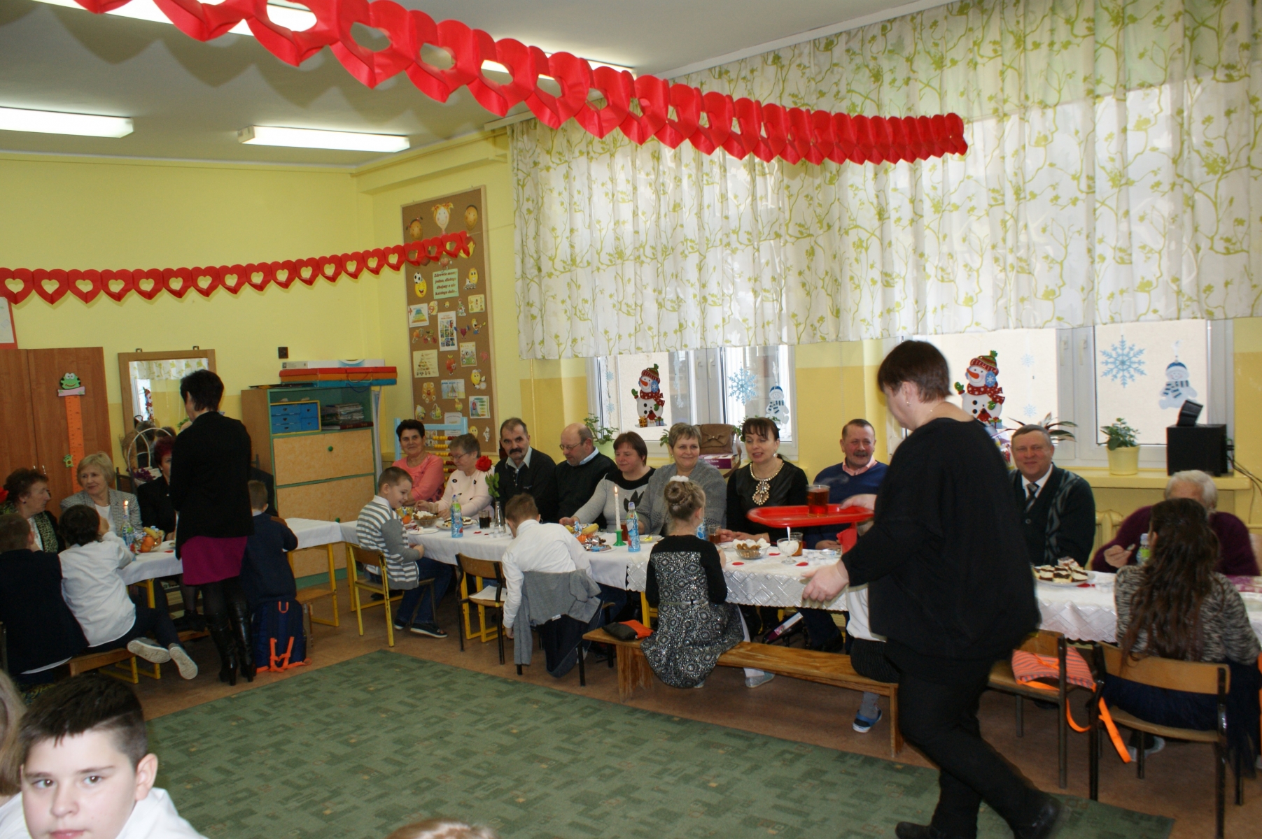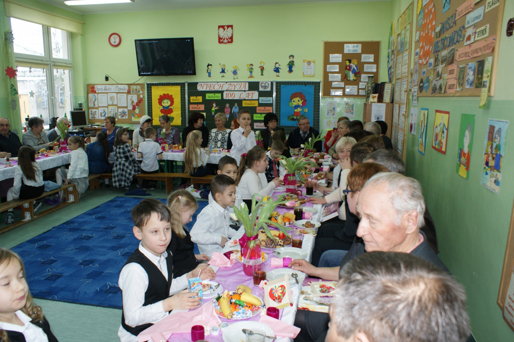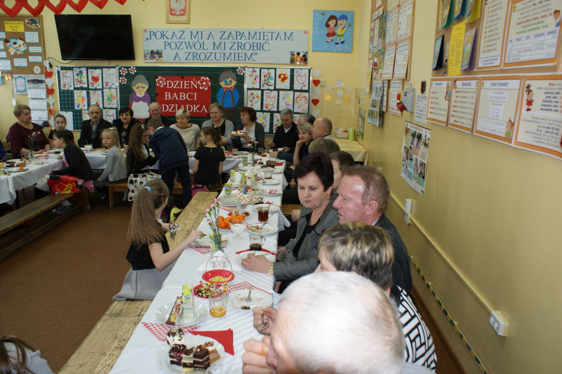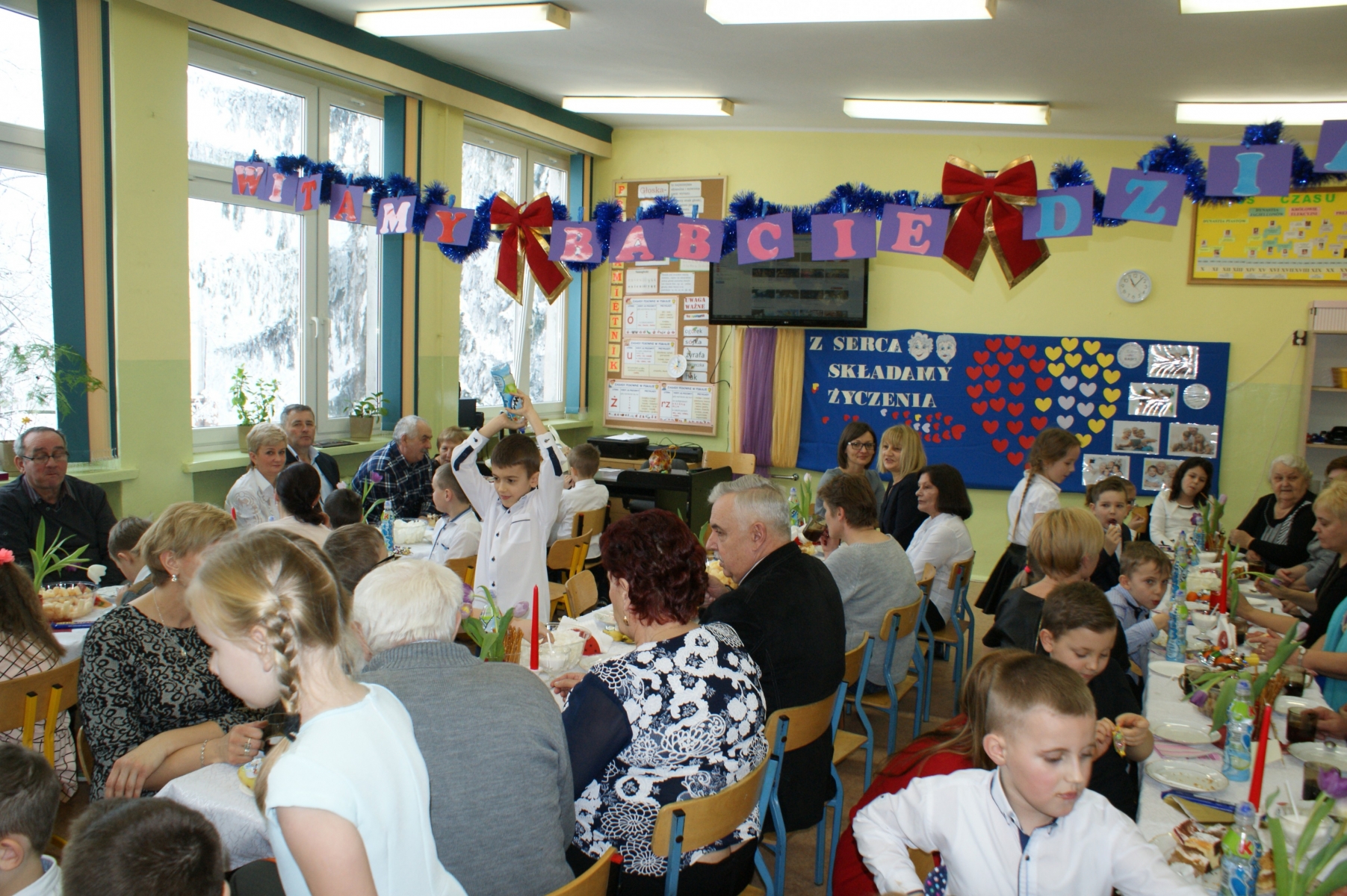 Po spotkaniu w sali gimnastycznej wnuczęta zaprosiły Babcie i Dziadków do swoich klas. Składali życzenia, wręczali upominki, dziękowali za miłość i opiekę. Dzięki bardzo dobrej organizacji i pomocy Rodziców, Goście i wnuczęta miło spędzili czas na wspólnym poczęstunku. Nad organizacją i sprawnym przebiegiem uroczystości czuwały Wychowawczynie: Małgorzata Wągiel, Justyna Pietrzak, Joanna Nowakowska, Ewa Stelmaszak, Maria Prentczyńska, Aleksandra Jasnowska, Emilia Andrzejczak.