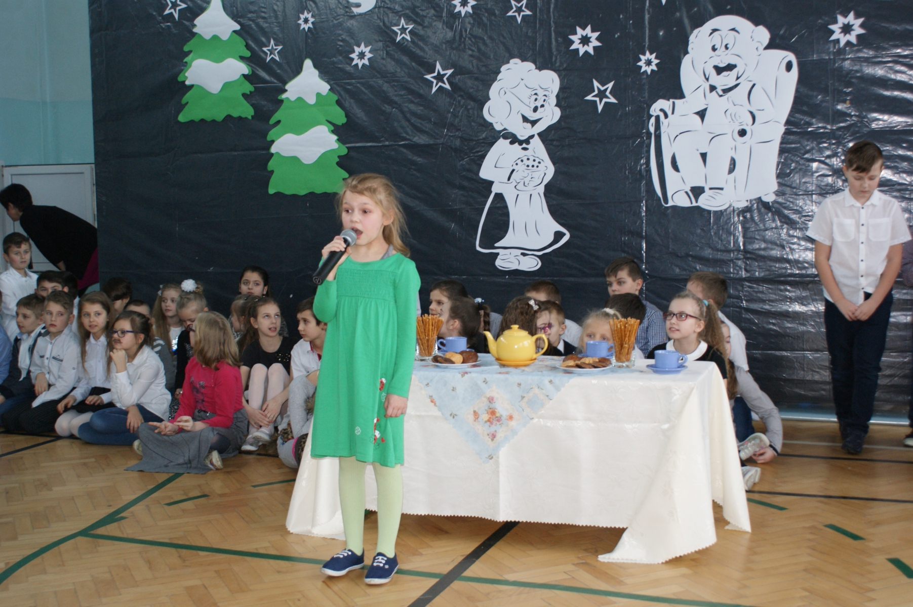… to słowa, wypowiadane przez uczniów klas I-III Szkoły Podstawowej w Malanowie na uroczystości z okazji Dnia Babci i Dziadka, w dn.: 19.01.2017r. Pan Dyrektor, a potem dzieci z radością powitały zaproszone Babcie i Dziadków, w sali gimnastycznej.