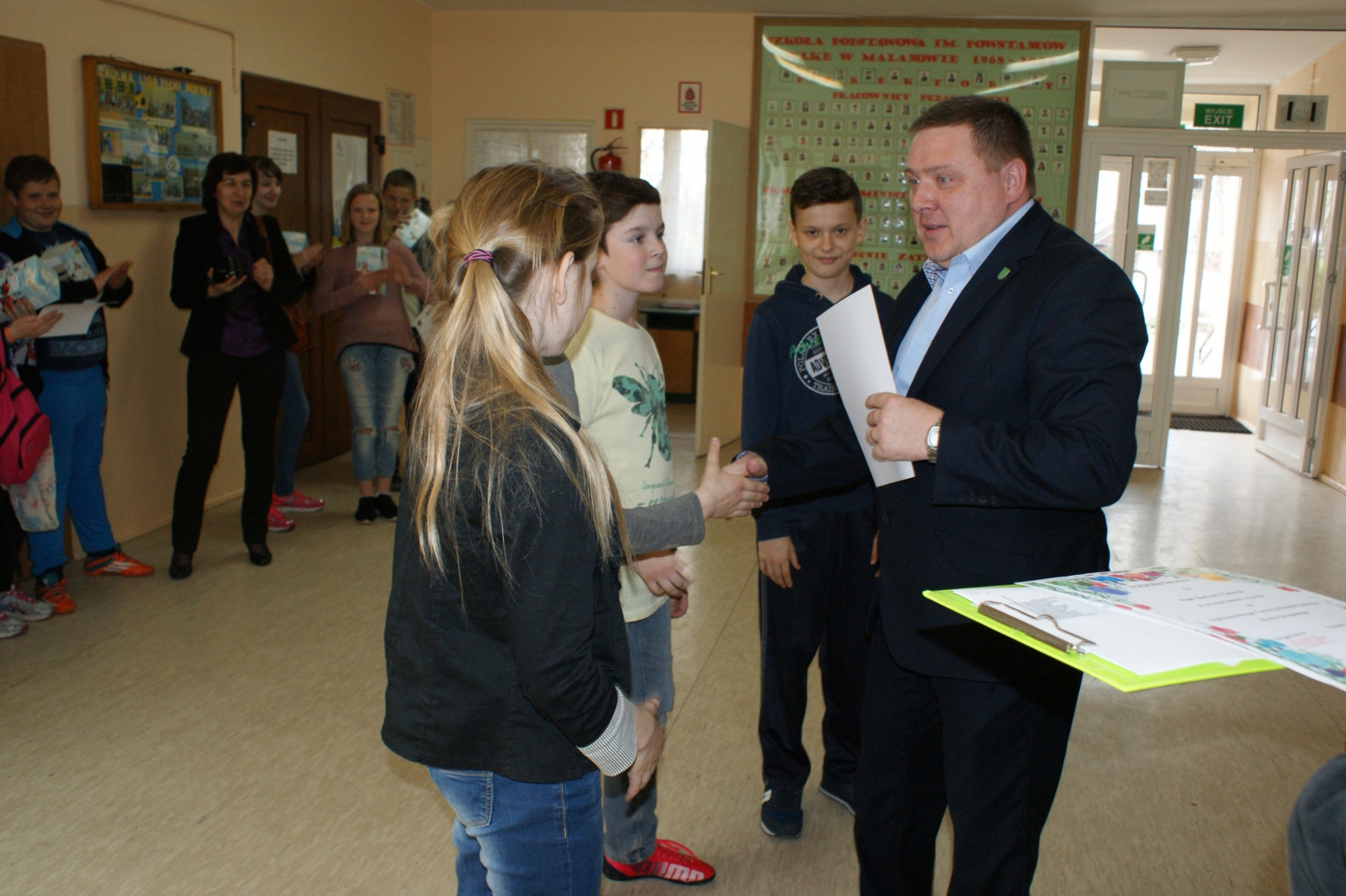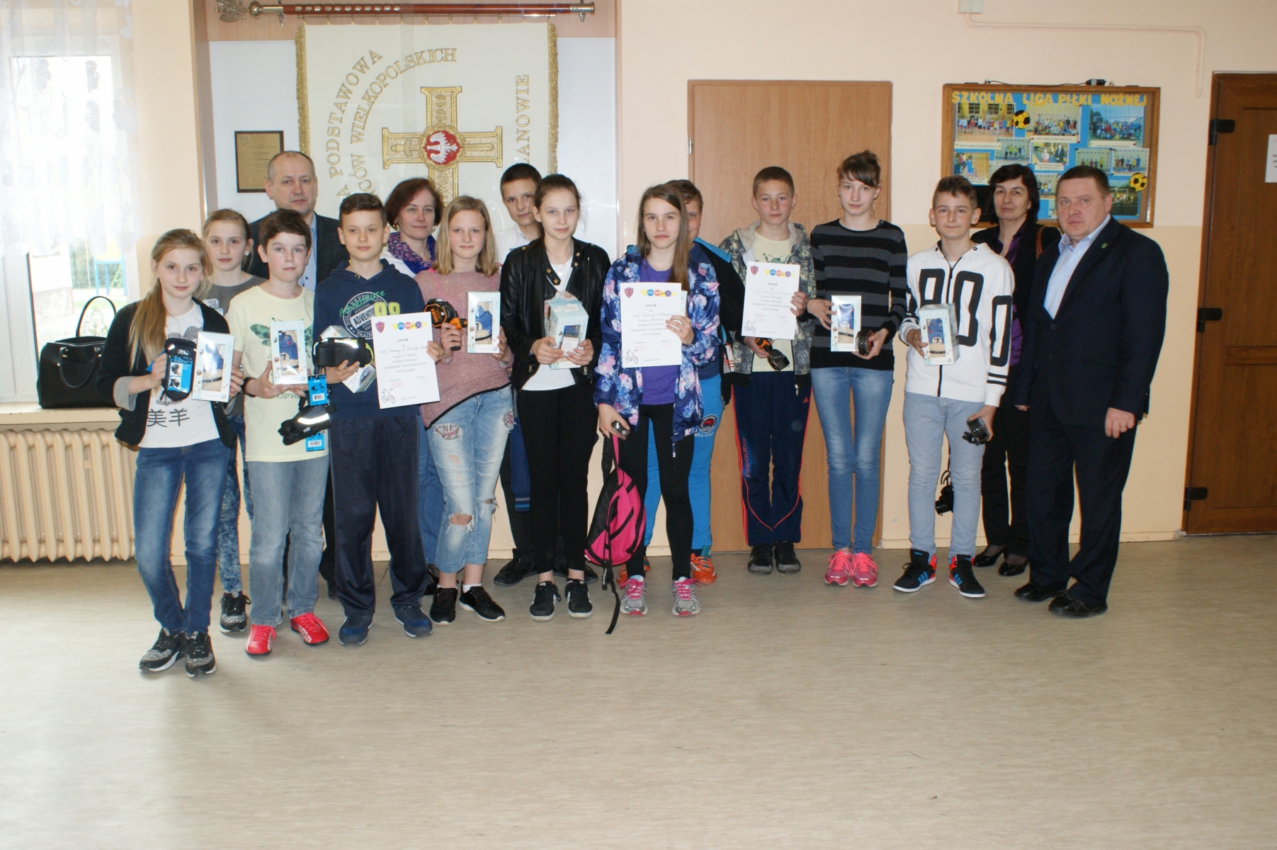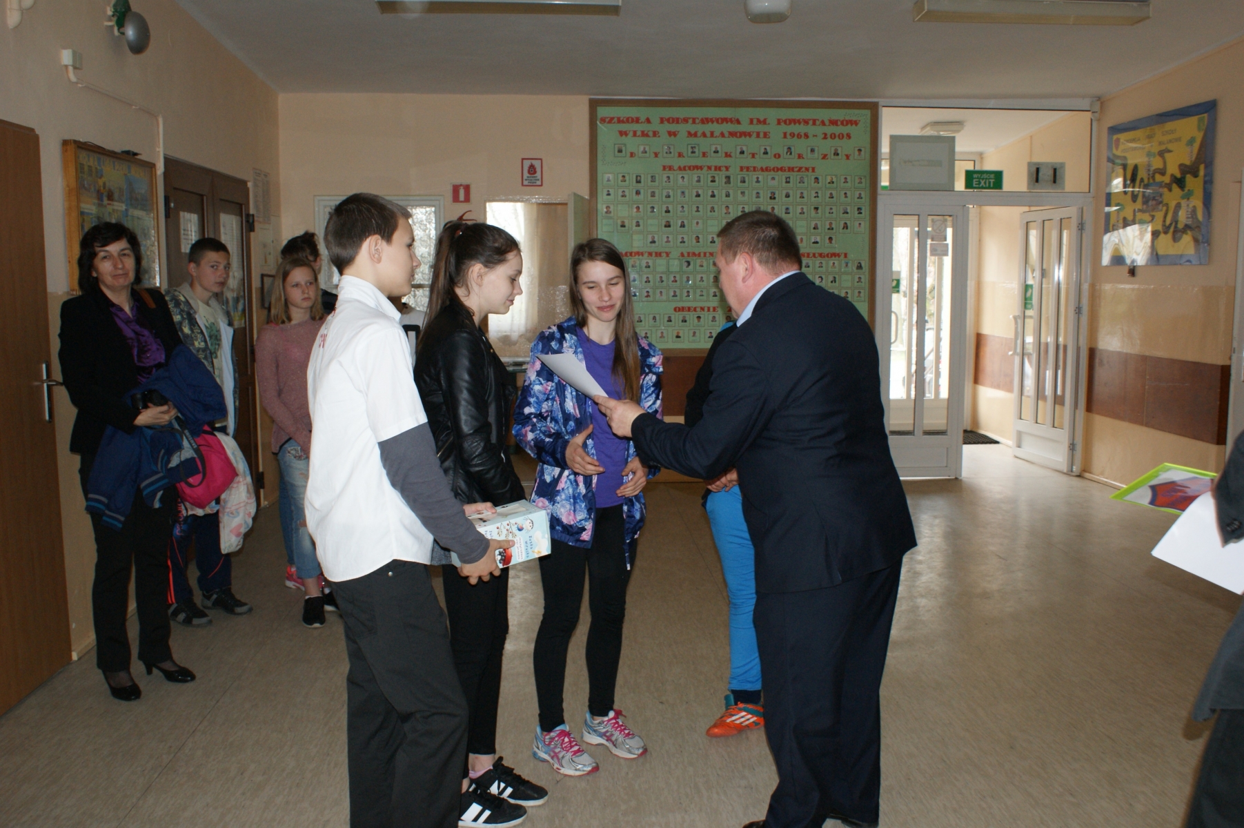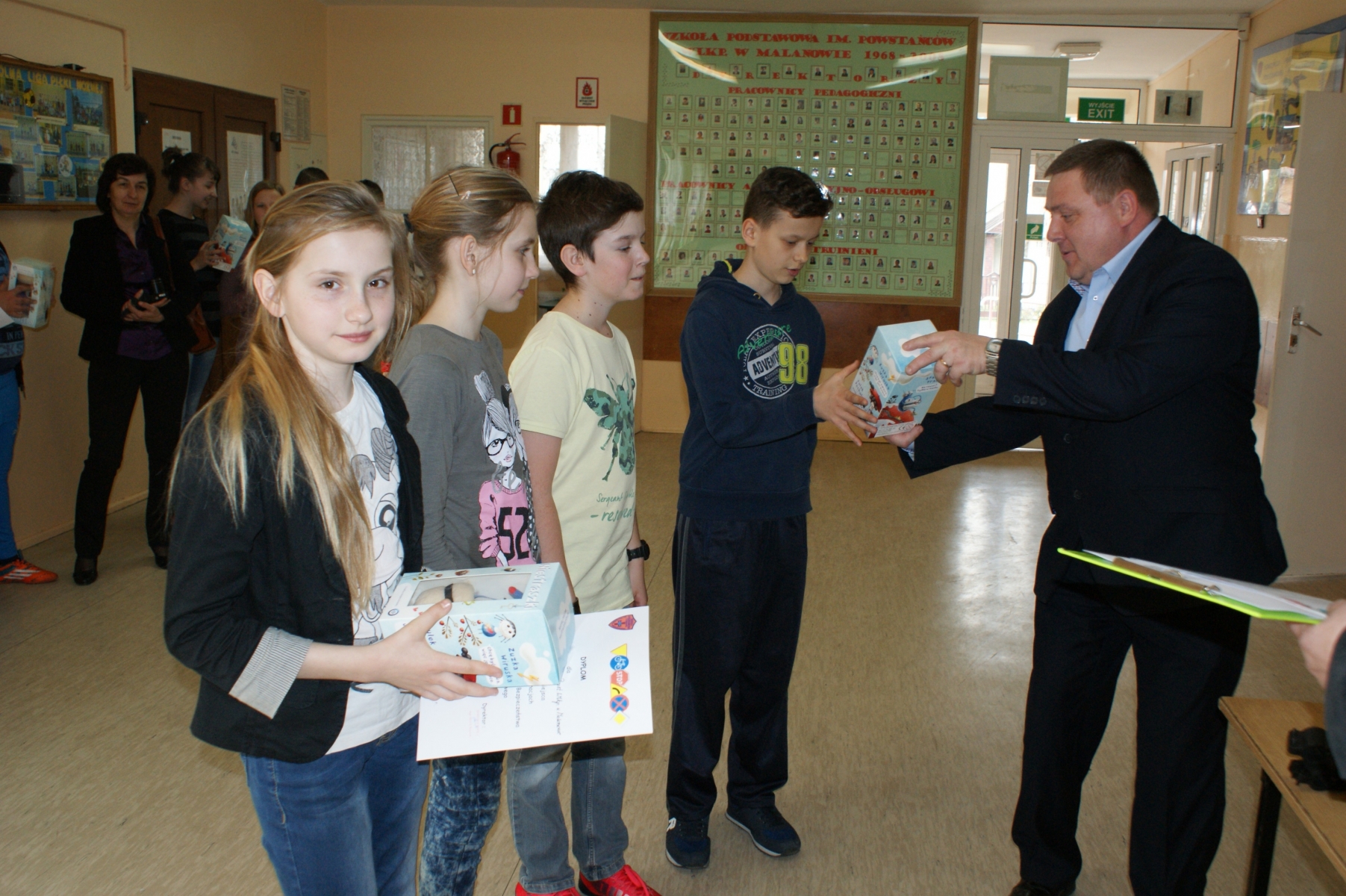 W dniu 12 kwietnia 2016 r. odbyły się Gminne Eliminacje Ogólnopolskiego Turnieju Bezpieczeństwa w Ruchu Drogowym. W tym roku rola organizatora rozgrywek przypadła naszej szkole. W turnieju brały udział 3 czteroosobowe drużyny (po 2 dziewczynki i 2 chłopców) reprezentujące uczniów Szkoły Podstawowej w Miłaczewie, Szkoły Podstawowej w Dziadowicach i Szkoły Podstawowej im. Powstańców Wlkp. W Malanowie. Po uroczystym rozpoczęciu turnieju przez Zastępcę Wójta Gminy Malanów p. Piotra Cylsa uczniowie przystąpili do rozwiązywania testu sprawdzającego znajomość przepisów ruchu drogowego oraz umiejętność rozwiązywania „Krzyżówek drogowych”. Kolejną konkurencją, w której przebiegu pomagali przedstawiciele Powiatowej Komendy Policji w Turku( za co serdecznie Im dziękujemy), był rowerowy tor przeszkód. Konkurencja ta, bardzo trudna technicznie, sprawiła najwięcej problemów i wpłynęła zdecydowanie na końcowe wyniki turnieju. Po jej ukończeniu uczniowie mieli jeszcze jeden sprawdzian z umiejętności udzielania pierwszej pomocy. Po dość wyrównanej walce i podsumowaniu wyników wszystkich konkurencji nasza drużyna zajęła I miejsce, drugie uczniowie ze szkoły w Miłaczewie a trzecie uczniowie z Dziadowic. Ponieważ do dalszych rozgrywek przechodzi tylko jedna drużyna, więc to nasi uczniowie będą reprezentować Gminę Malanów podczas rozgrywek powiatowych w Słodkowie w dniu 5 maja. Nasi zwycięzcy to: Klaudia i Martyna Kapusta, Bartłomiej Kujawa i Maksymilian Filipowicz. Uczniów przygotowywał Marek Nowicki. Organizatorzy turnieju dziękują firmie Pana Sławomira Jakubowskiego za przygotowanie elementów toru przeszkód oraz firmie PZU za ufundowanie upominków dla uczestników turnieju.