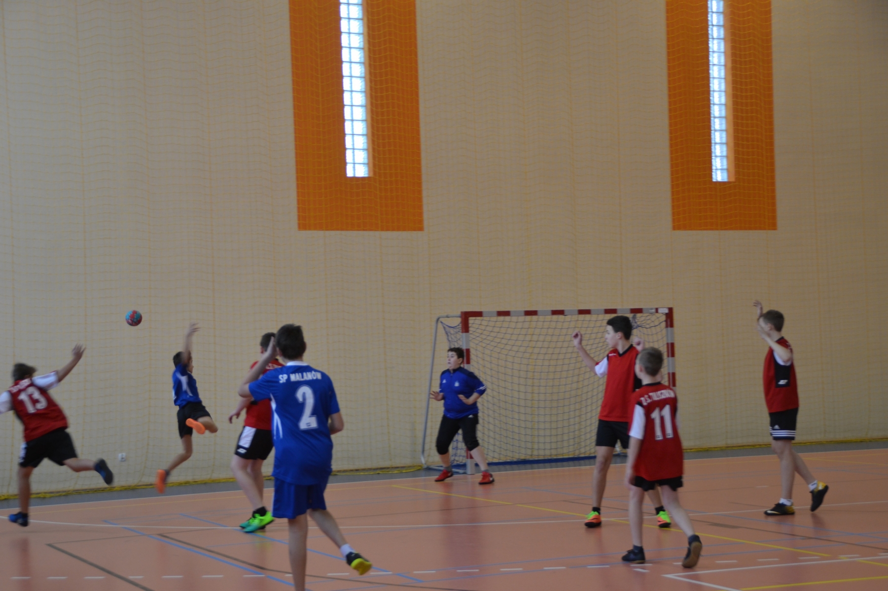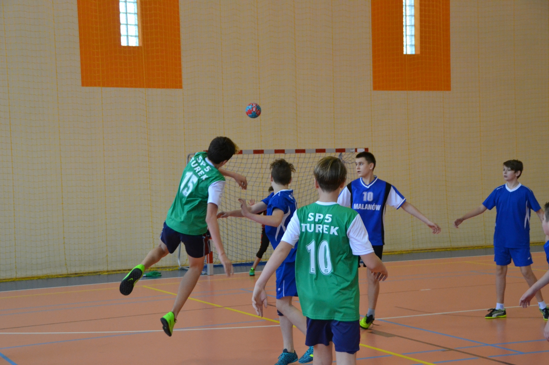 Dzień później do walki o tytuł najlepszych piłkarzy stanęli chłopcy. Turniej poprzedziły eliminacje międzyszkolne, a w finale zagrały cztery zespoły, które przebrnęły wcześniejsze mecze w grupach eliminacyjnych. Pierwszym przeciwnikiem naszych reprezentantów byli szczypiorniści z Tuliszkowa. Po emocjonującym i wyrównanym meczu chłopcy z Malanowa zwyciężyli 6:5 i jako pierwsi zawitali w finale rozgrywek. W drugim półfinale SP 5 Turek zwyciężyła z SP Słodków. Mecz o brąz to potyczka SP Słodków z SP Tuliszków, z którego obronną ręką wyszli reprezentanci Tuliszkowa pokonując przeciwników 8:4. W meczu finałowym, walka drużyn była bardzo wyrównana. Obie drużyny stwarzały sobie dogodne sytuacje rzutowe, jednak parady bramkarskie i lepsza skuteczność rzutowa reprezentantów SP 5 Turek zdecydowały o ich końcowym tryumfie. Gospodarze turnieju ulegli w finale 9:5.
