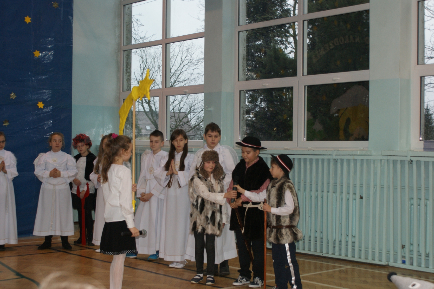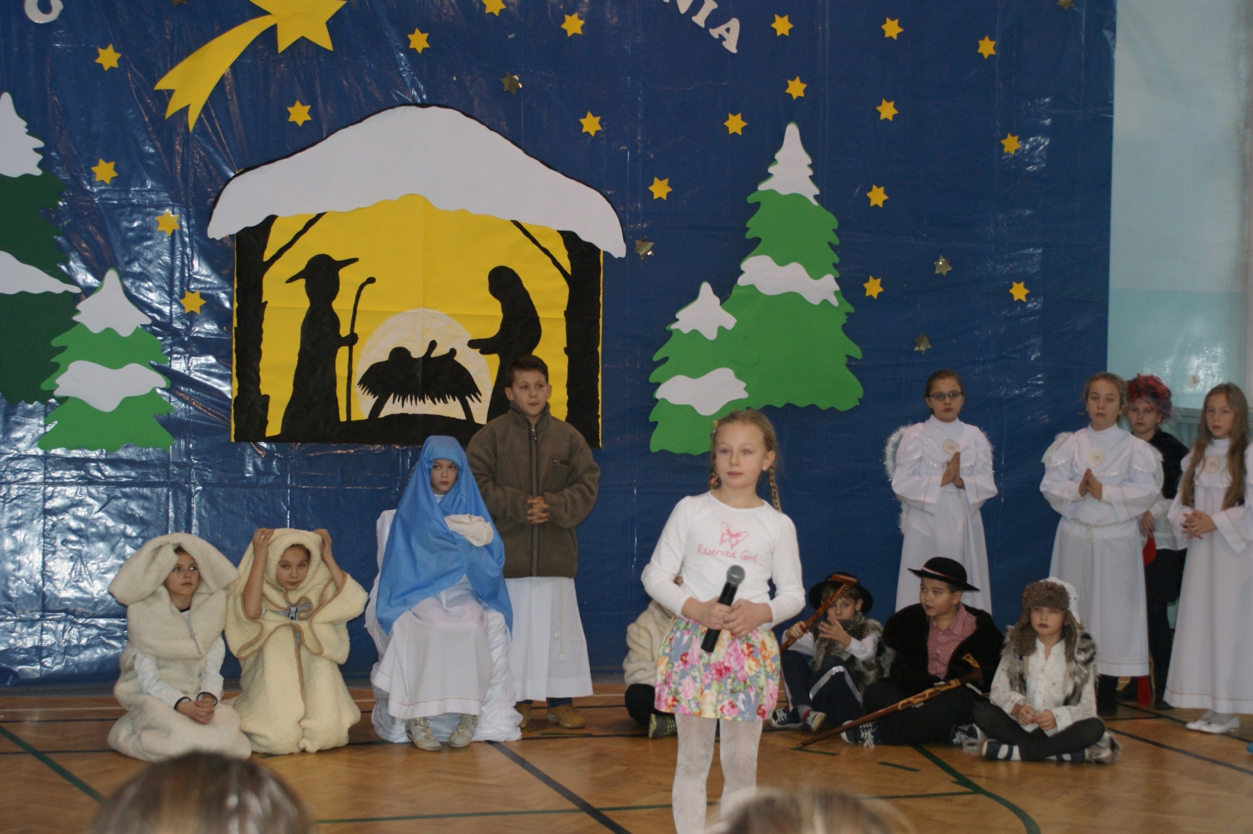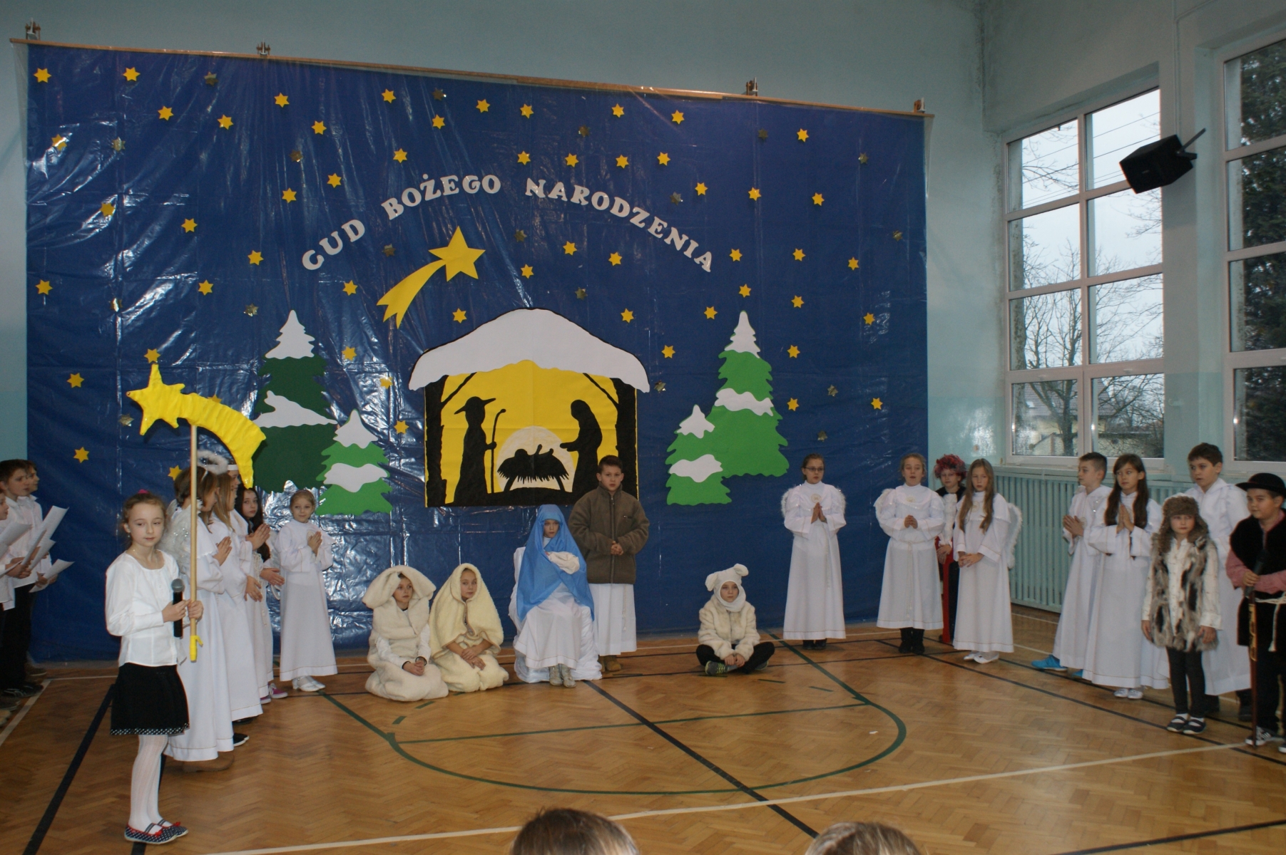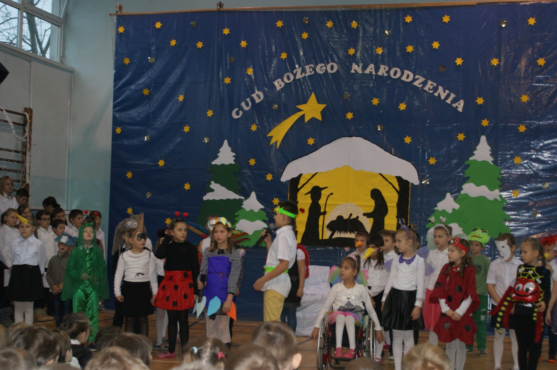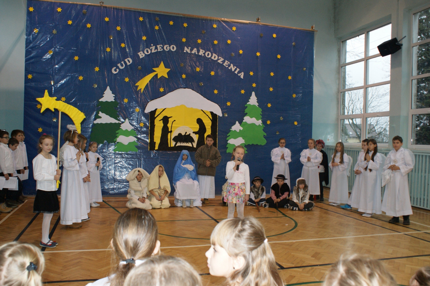 Jasełka przygotowali: ks. Tomasz Smoliński i p. katechetka Małgorzata Przybylak. Przedstawienie przeplatane było pięknymi kolędami w wykonaniu uczniów klas IV – VI pod kierunkiem p. Katarzyny Tomczyk. Na świąteczny nastrój wpływ miała dekoracja wykonana przez p. Emilkę Stefaniak.