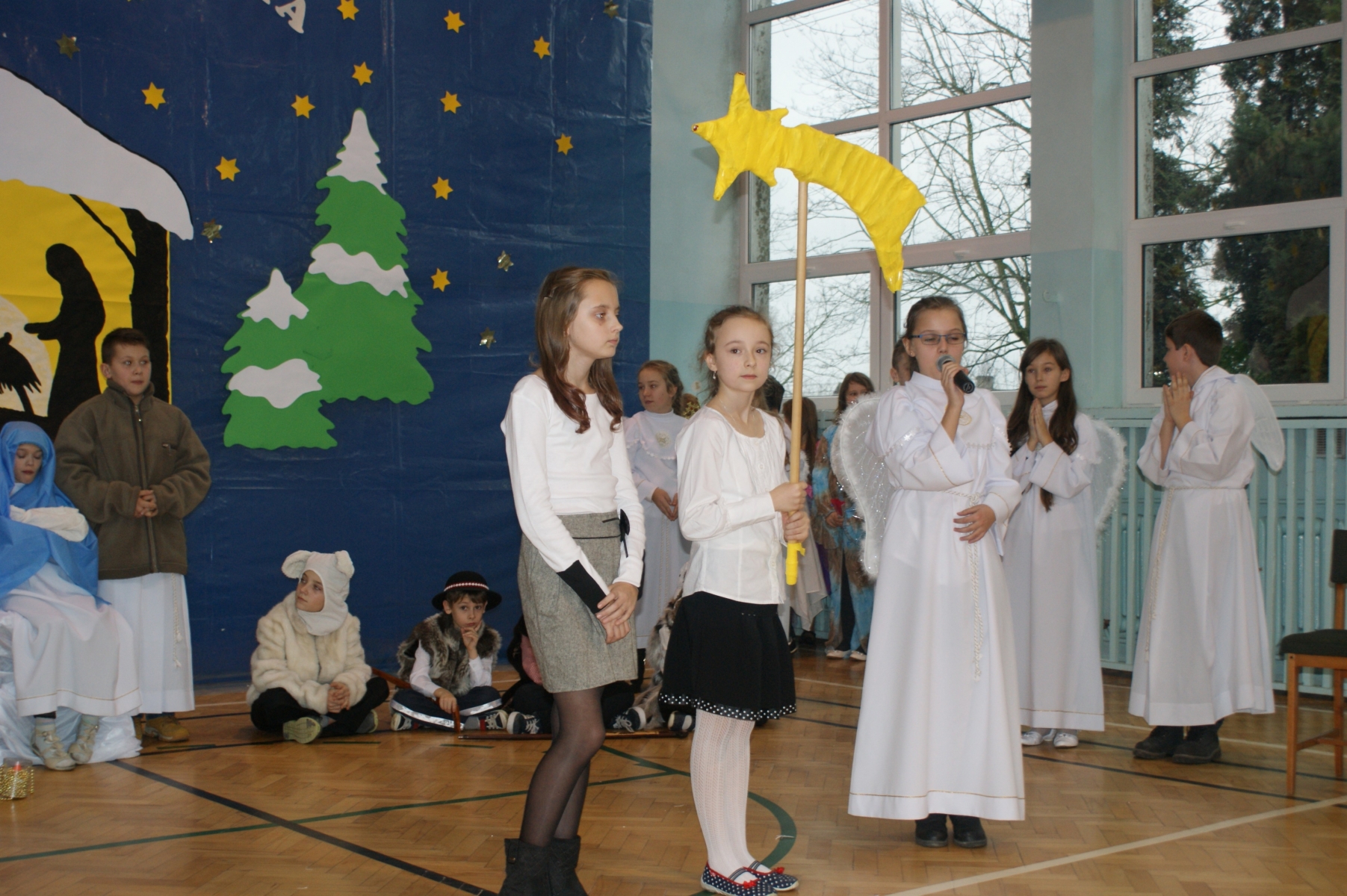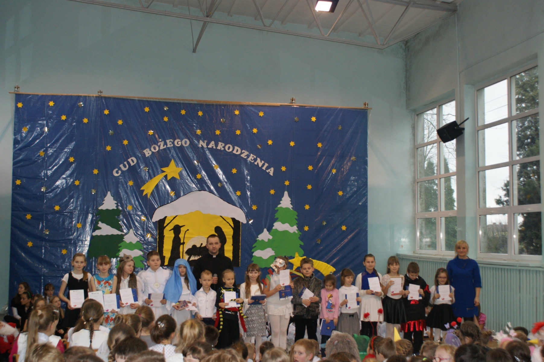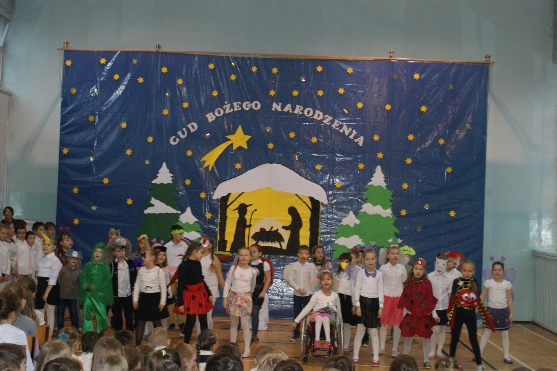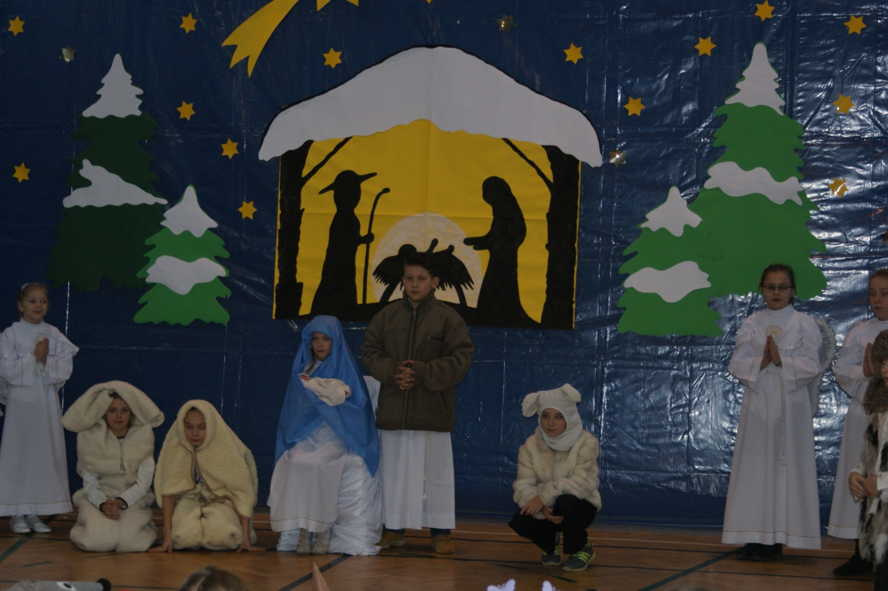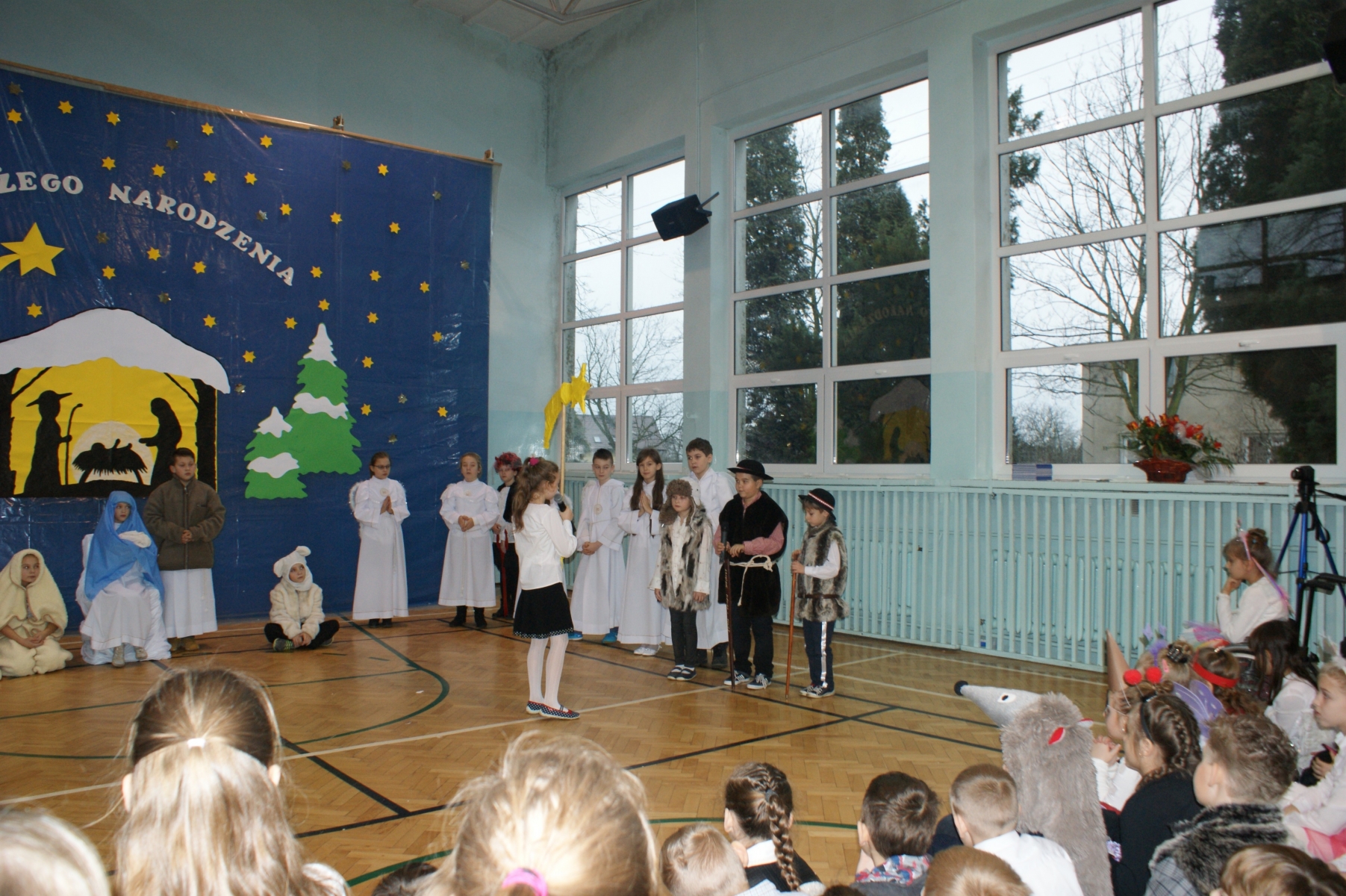 Jasełka przygotowali: ks. Tomasz Smoliński i p. katechetka Małgorzata Przybylak. Przedstawienie przeplatane było pięknymi kolędami w wykonaniu uczniów klas IV – VI pod kierunkiem p. Katarzyny Tomczyk. Na świąteczny nastrój wpływ miała dekoracja wykonana przez p. Emilkę Stefaniak.