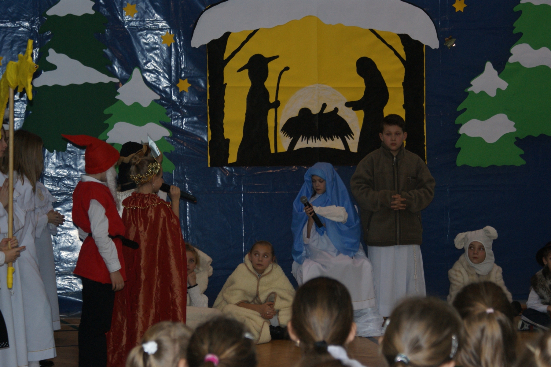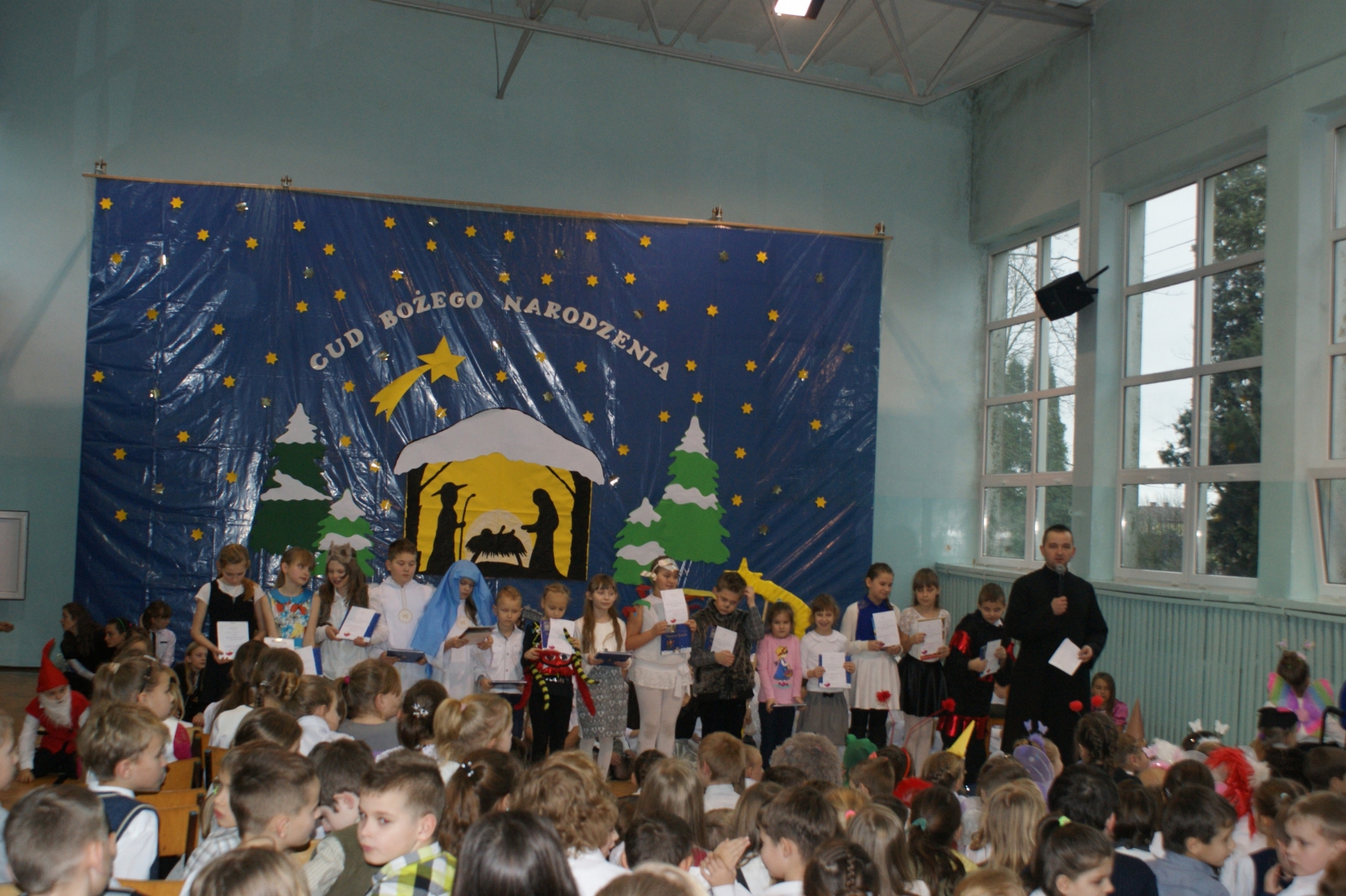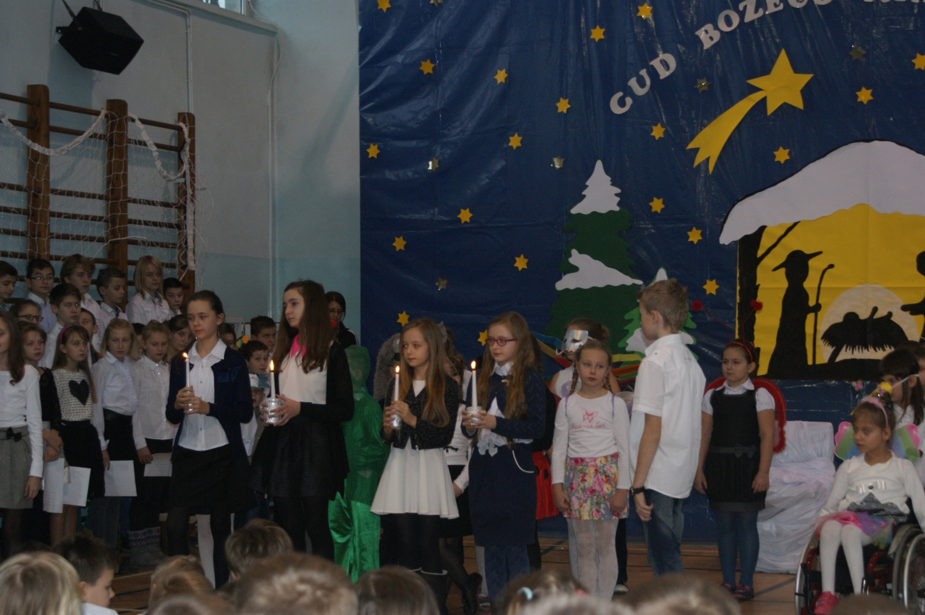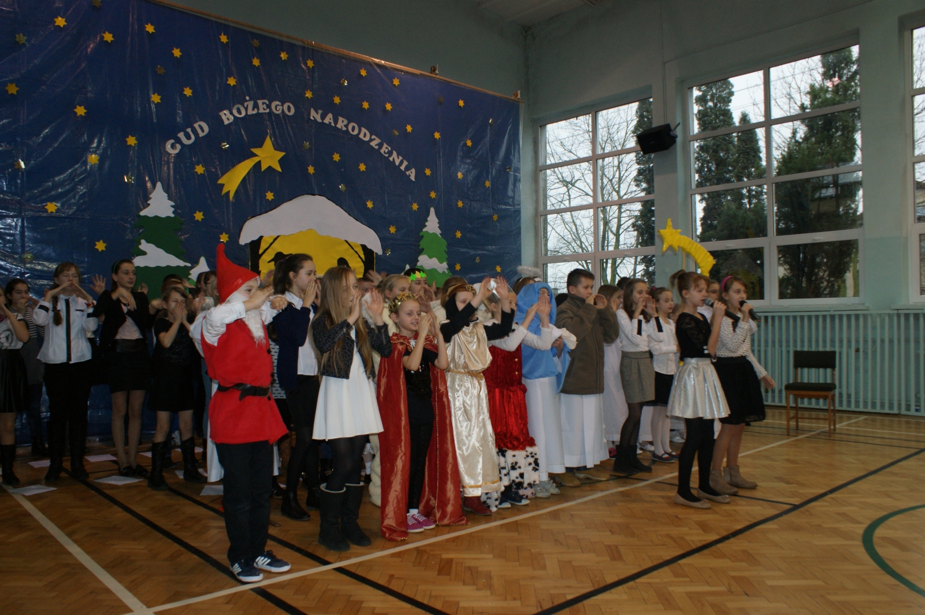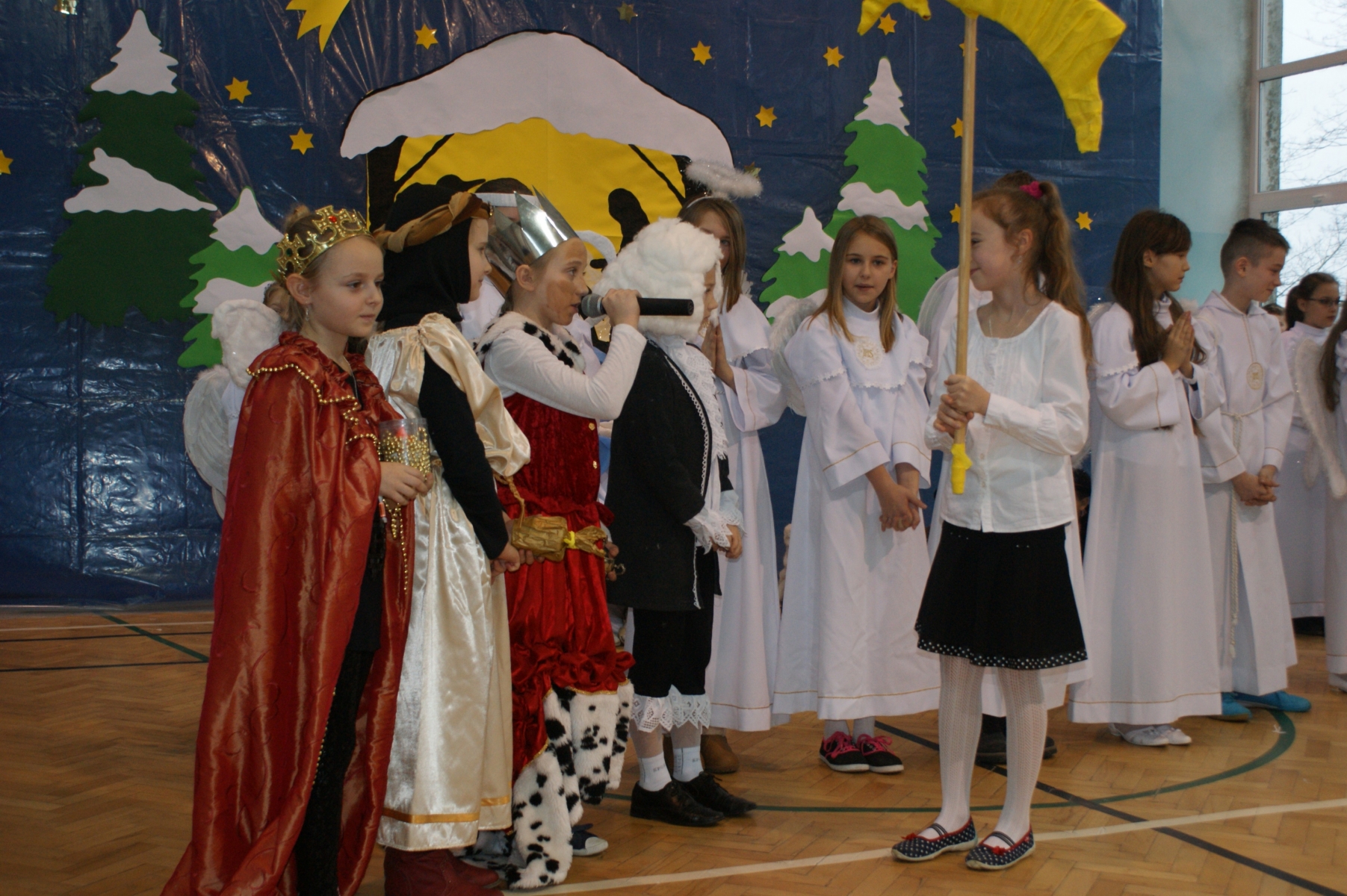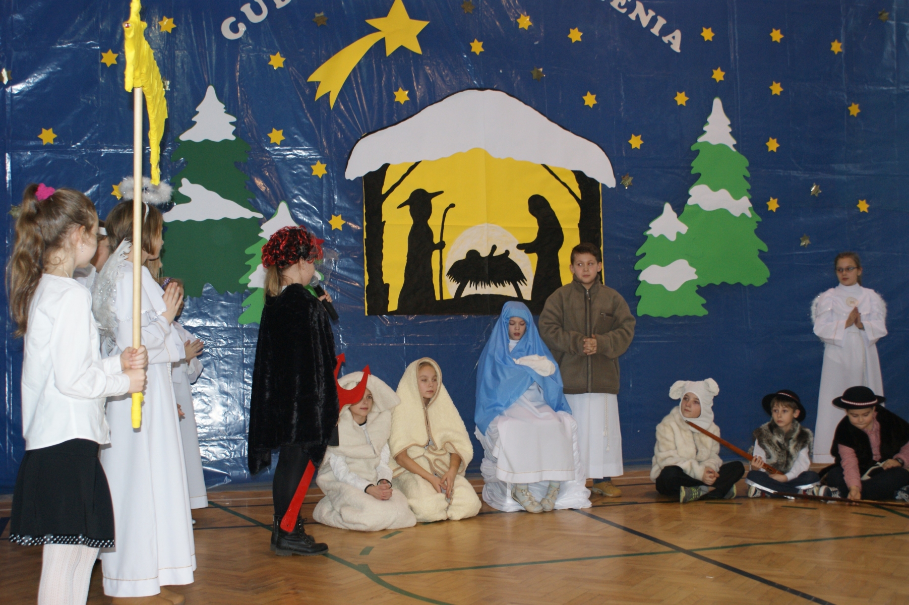 Jasełka przygotowali: ks. Tomasz Smoliński i p. katechetka Małgorzata Przybylak. Przedstawienie przeplatane było pięknymi kolędami w wykonaniu uczniów klas IV – VI pod kierunkiem p. Katarzyny Tomczyk. Na świąteczny nastrój wpływ miała dekoracja wykonana przez p. Emilkę Stefaniak.