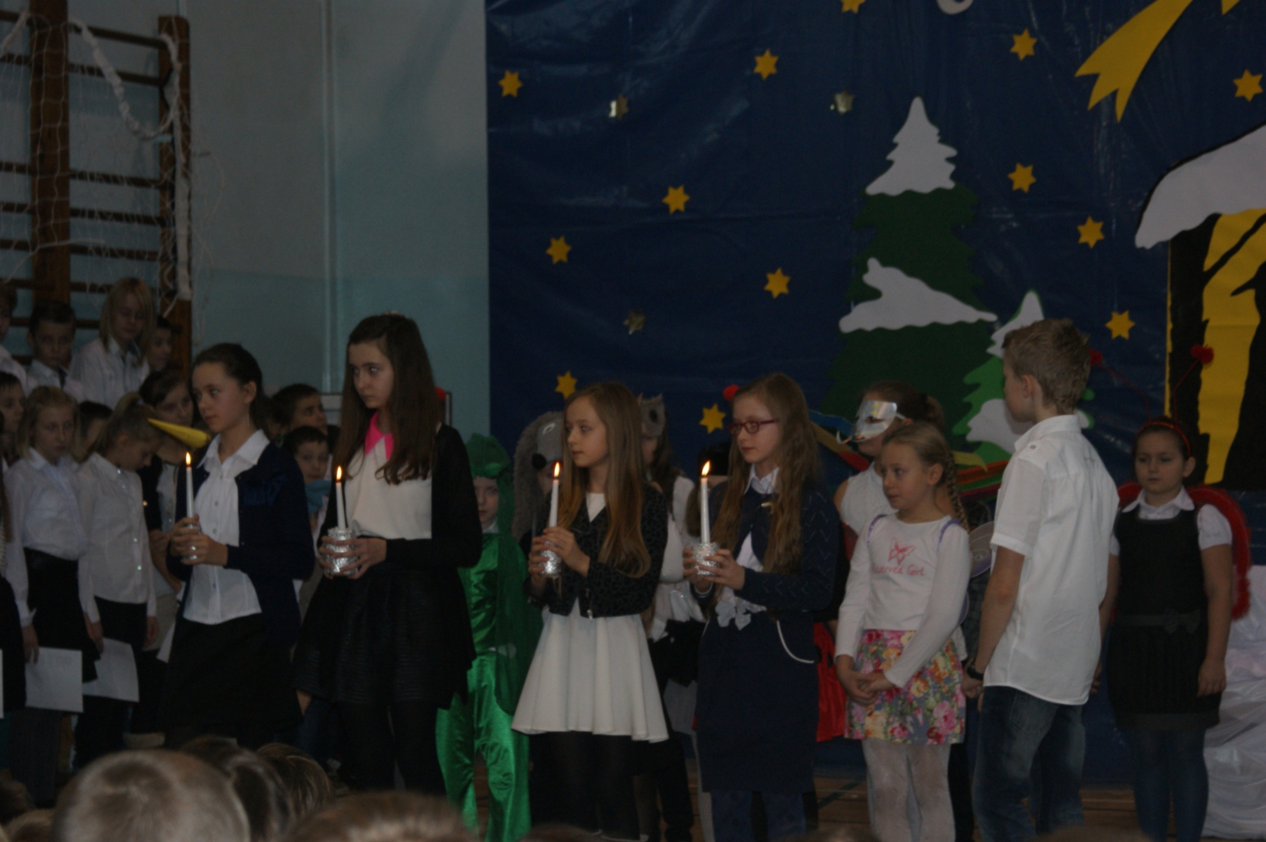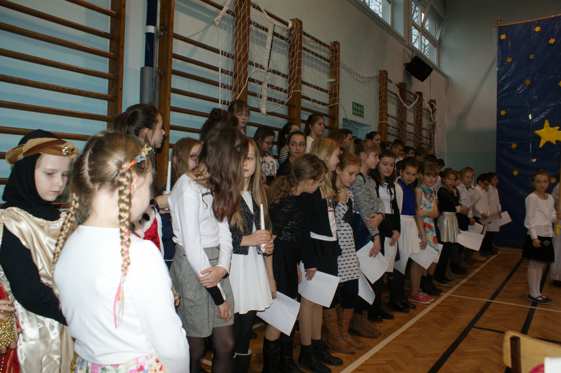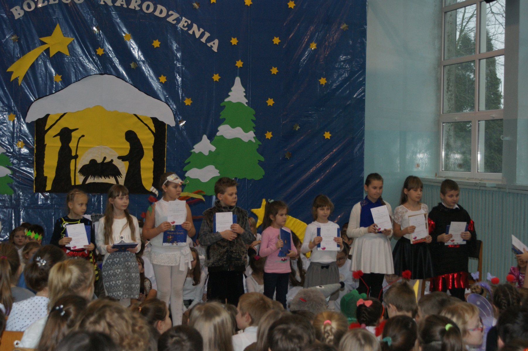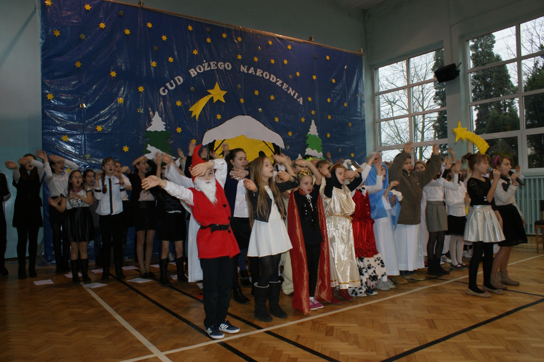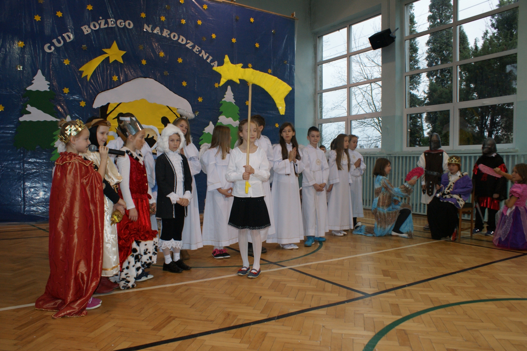 Jasełka przygotowali: ks. Tomasz Smoliński i p. katechetka Małgorzata Przybylak. Przedstawienie przeplatane było pięknymi kolędami w wykonaniu uczniów klas IV – VI pod kierunkiem p. Katarzyny Tomczyk. Na świąteczny nastrój wpływ miała dekoracja wykonana przez p. Emilkę Stefaniak.