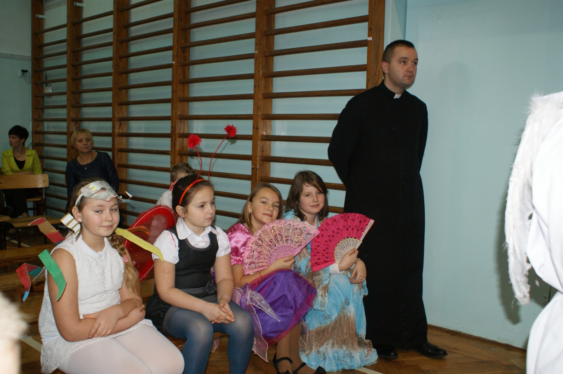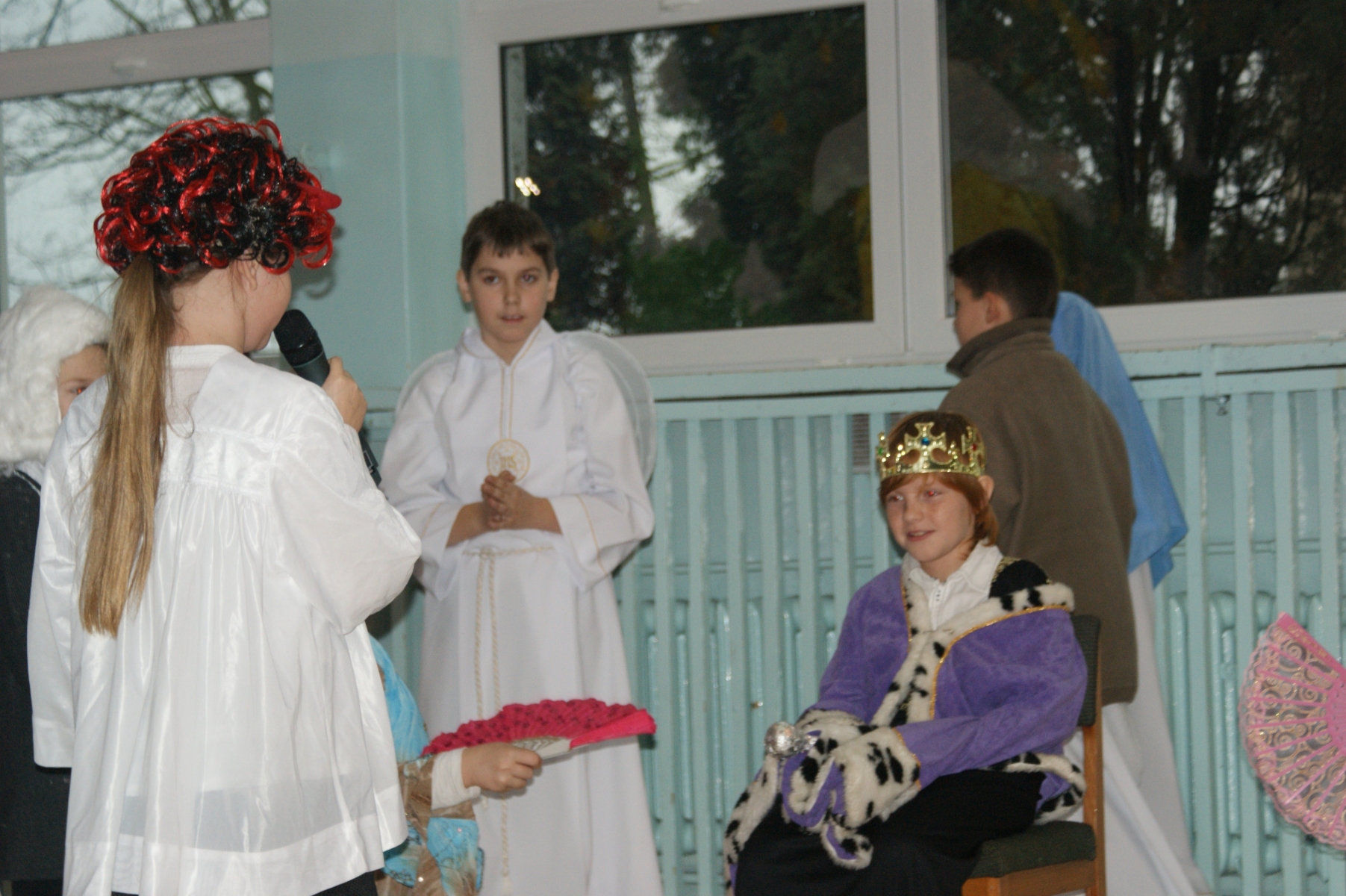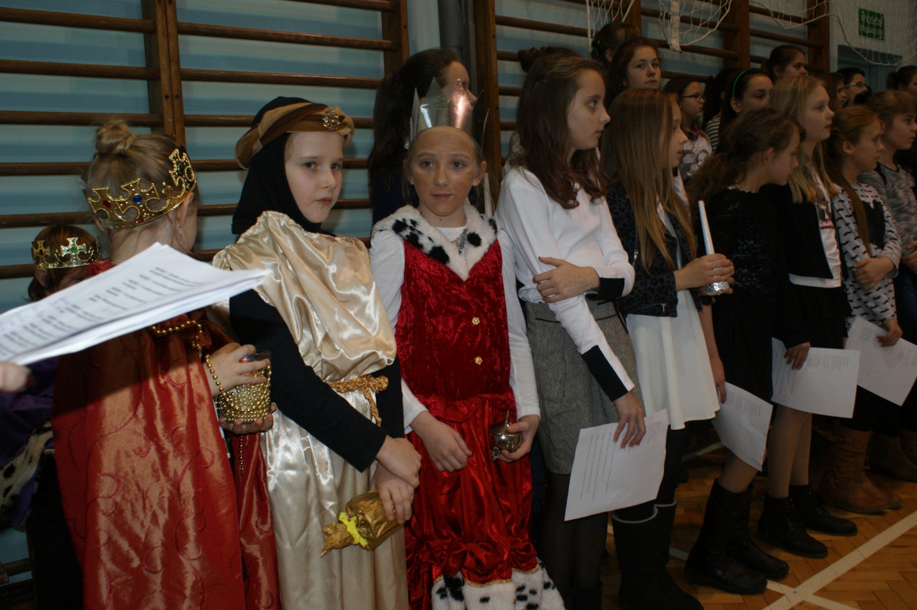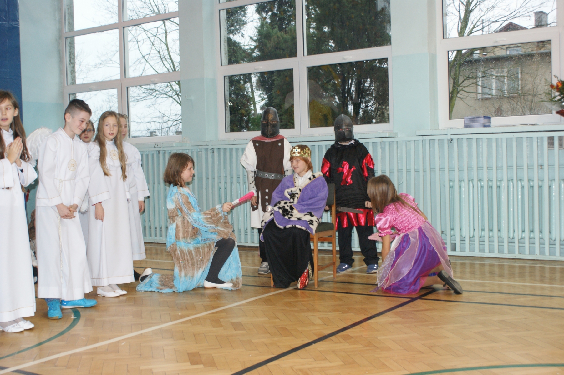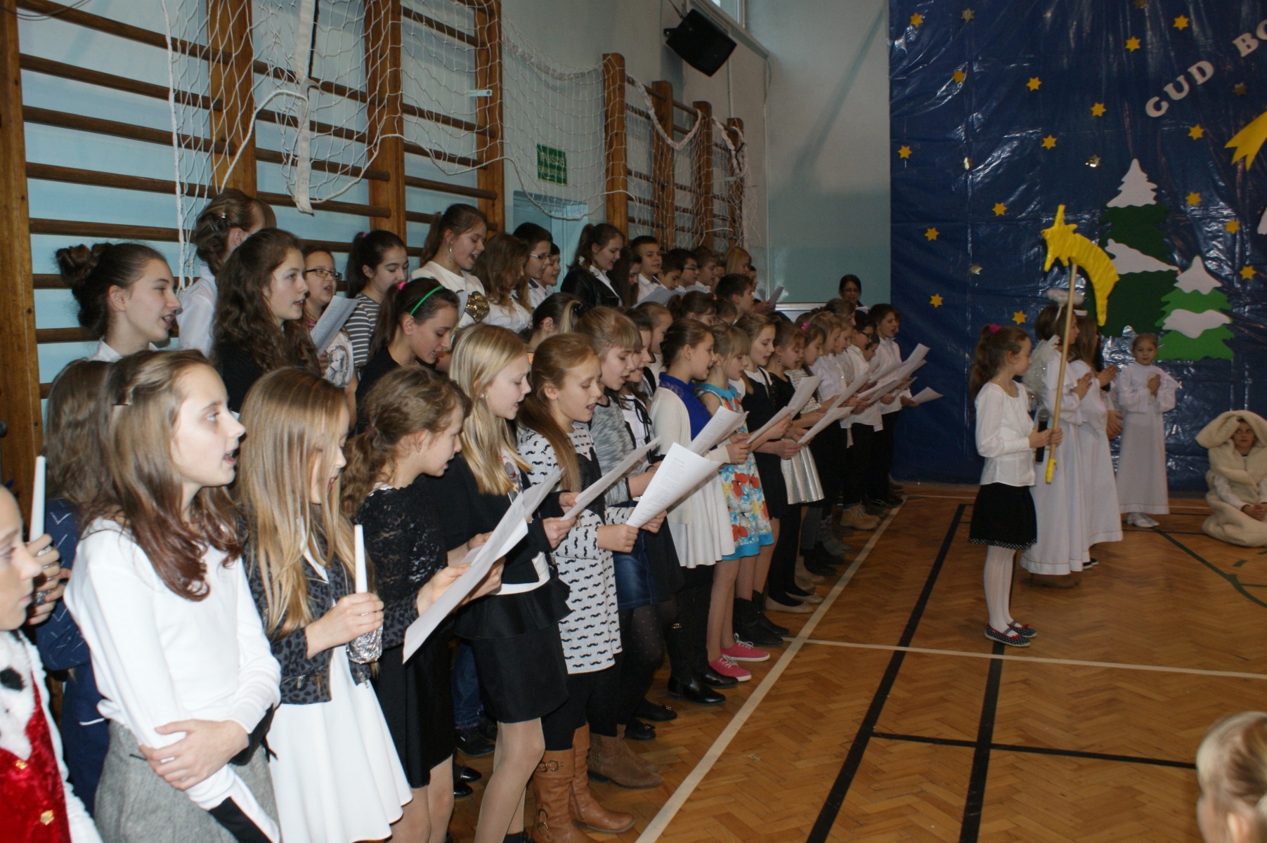 Jasełka przygotowali: ks. Tomasz Smoliński i p. katechetka Małgorzata Przybylak. Przedstawienie przeplatane było pięknymi kolędami w wykonaniu uczniów klas IV – VI pod kierunkiem p. Katarzyny Tomczyk. Na świąteczny nastrój wpływ miała dekoracja wykonana przez p. Emilkę Stefaniak.
