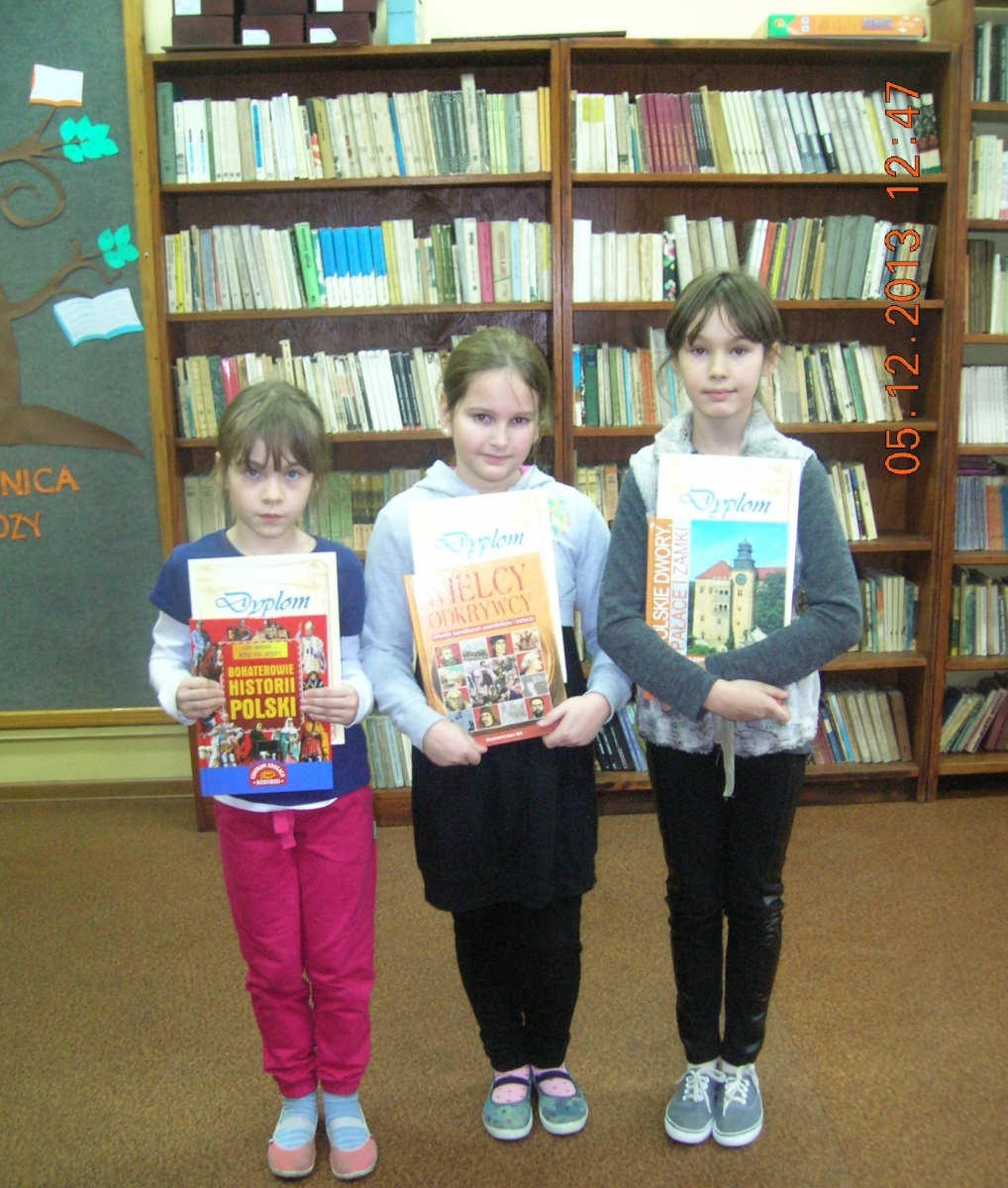 Zwycięzcy otrzymali dyplomy i nagrody książkowe. Pozostali uczestnicy nagrodzeni zostali drobnymi upominkami.