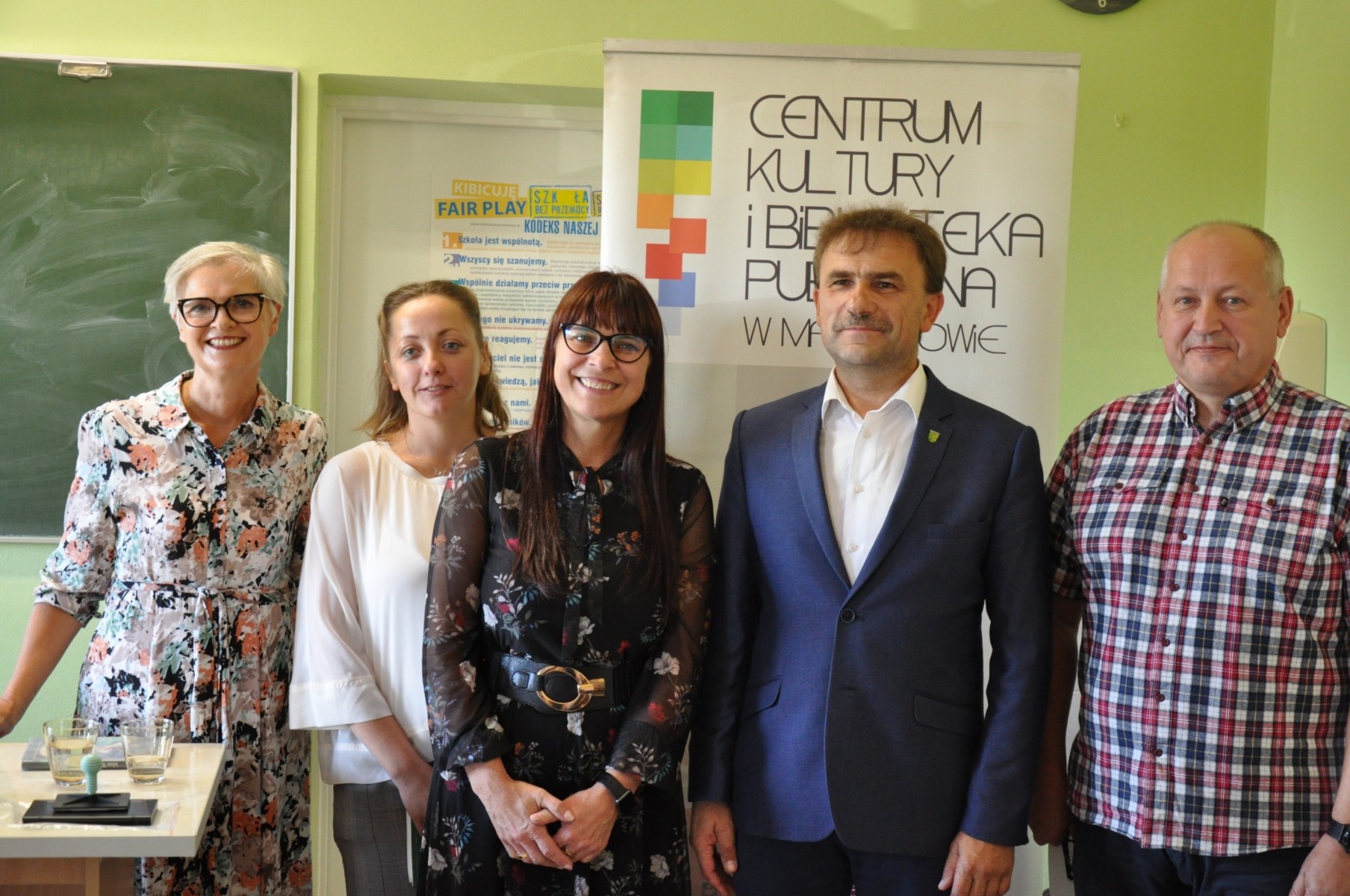 Do klasy wkroczyli p. dyrektor Marek Nowicki w towarzystwie p. wójta Ireneusza Augustyniaka oraz p. dyrektor CKiBP Małgorzaty Przygońskiej i bibliotekarza p. Anny Sobczak.