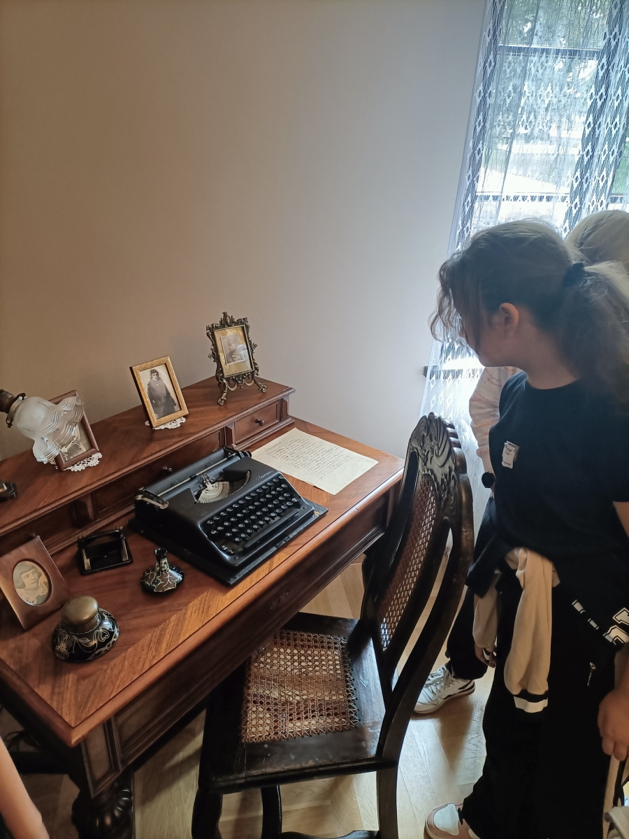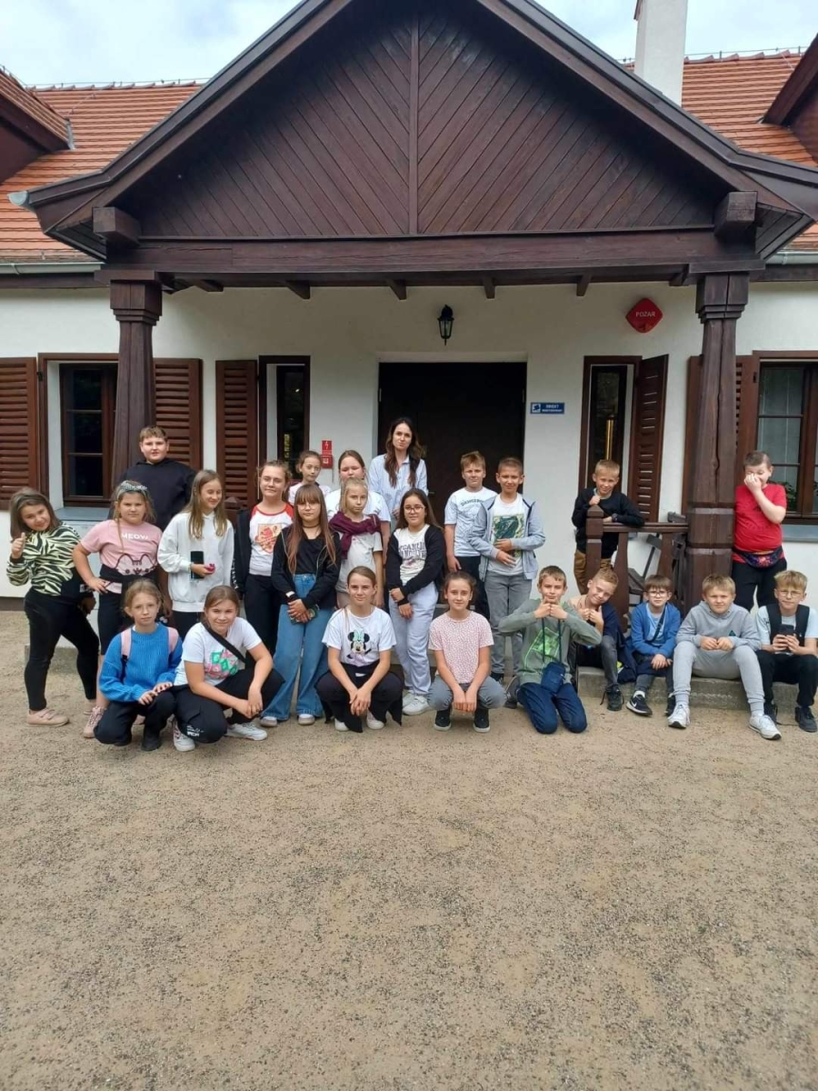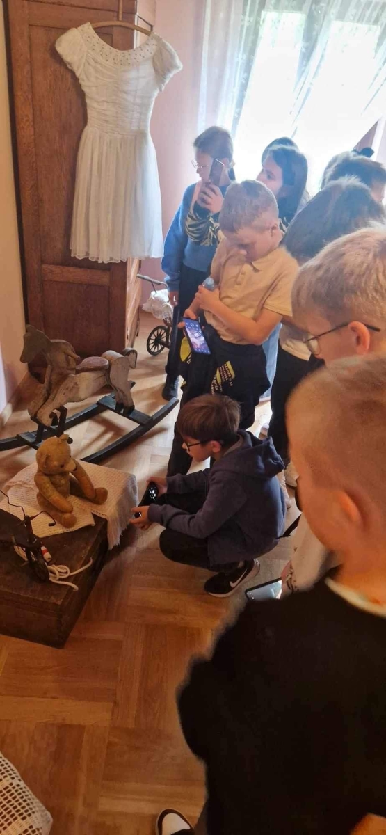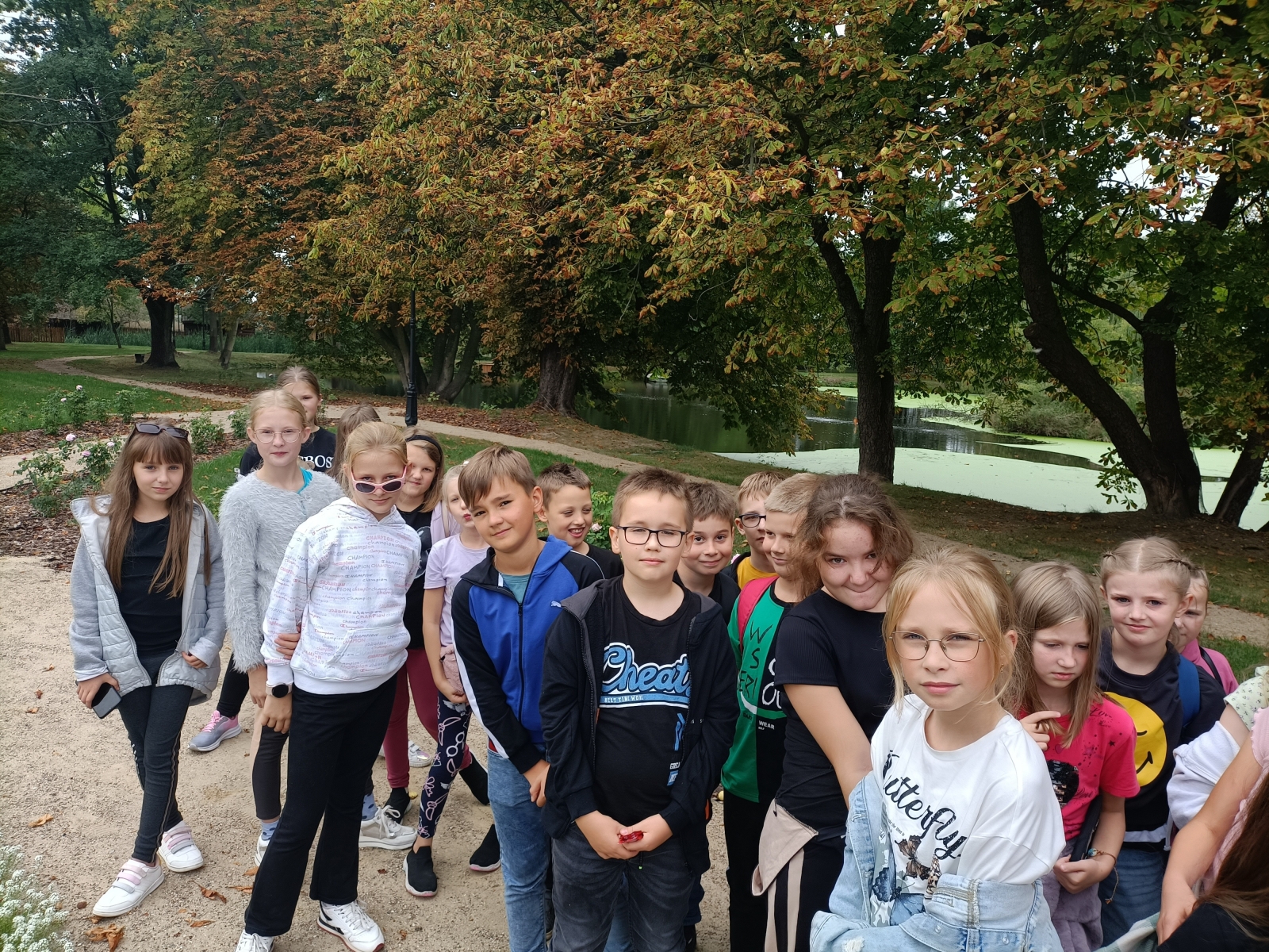 Następnie czwartoklasiści odbyli ciekawą lekcję muzealną w Dworku Marii Dąbrowskiej w Russowie. Muzeum poświęcone słynnej pisarce, otwarte w 1971 roku w jej rodzinnym dworku w zabytkowym parku w Russowie, wywołuje ogromne wrażenie na zwiedzających, ze względu na nowo otwarte wystawy interaktywne. Już na wejściu do muzeum czekają panele interaktywne z informacjami o Marii Dąbrowskiej, a na górze urządzona jest nowa sala poświęconą ekranizacji "Nocy i dni" na miarę XXI w., czyli dużo interaktywnych elementów, gramofon, który po nakręceniu gra słynny walc, multimedialną przebieralnię, panel z filmem, kostiumy. Dworek otacza cudowny park. Coś pięknego!