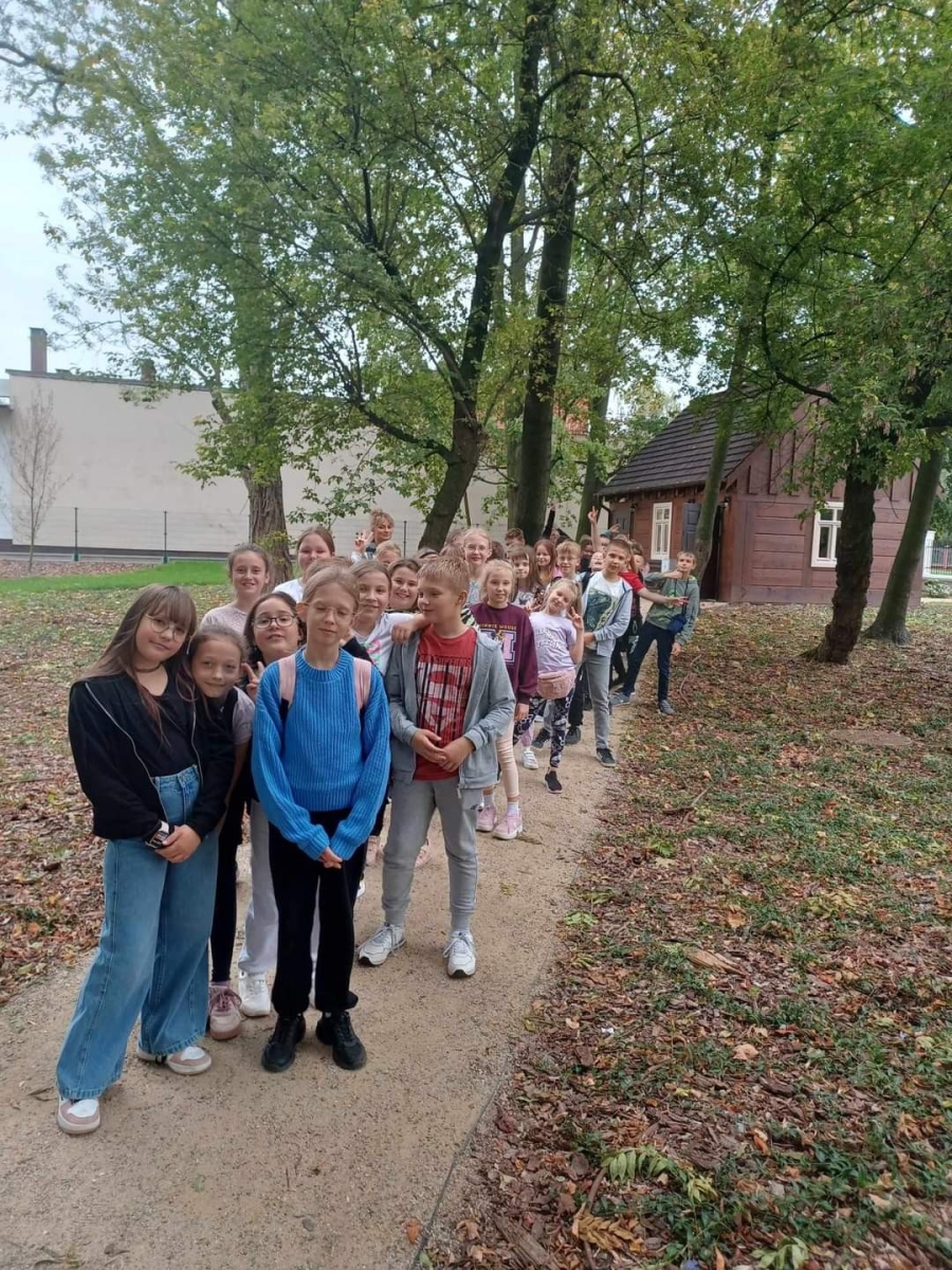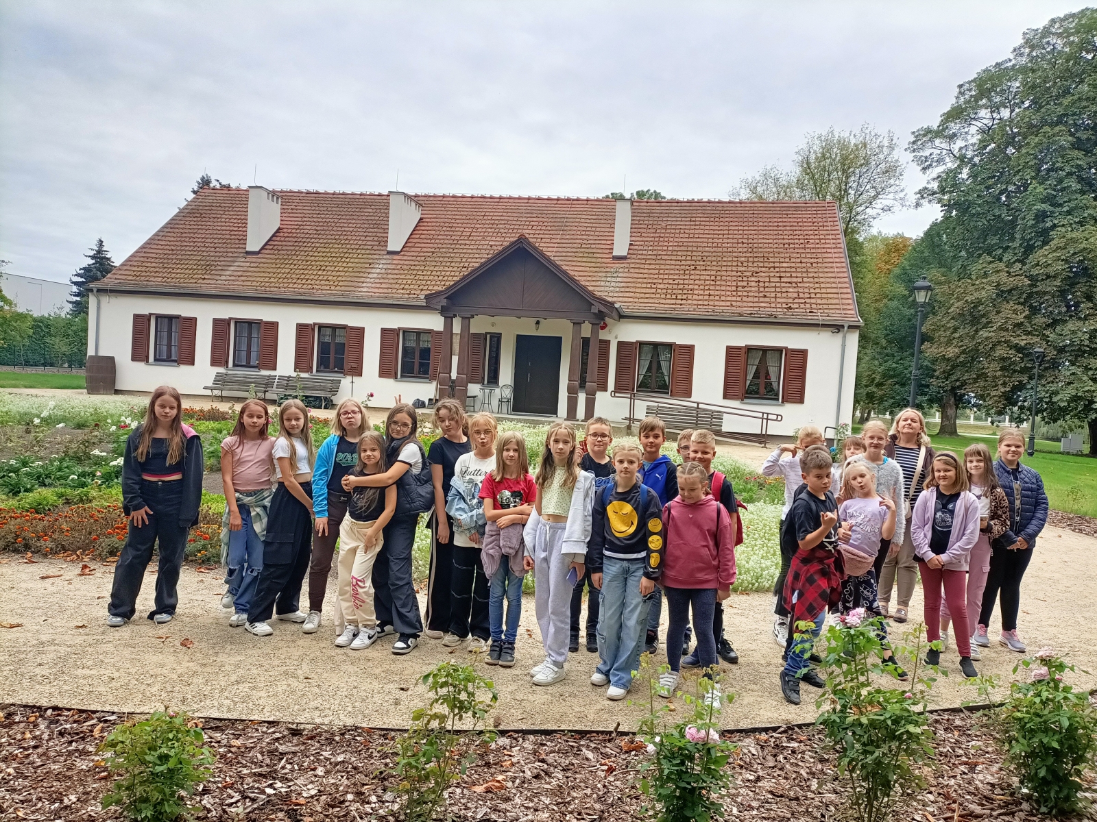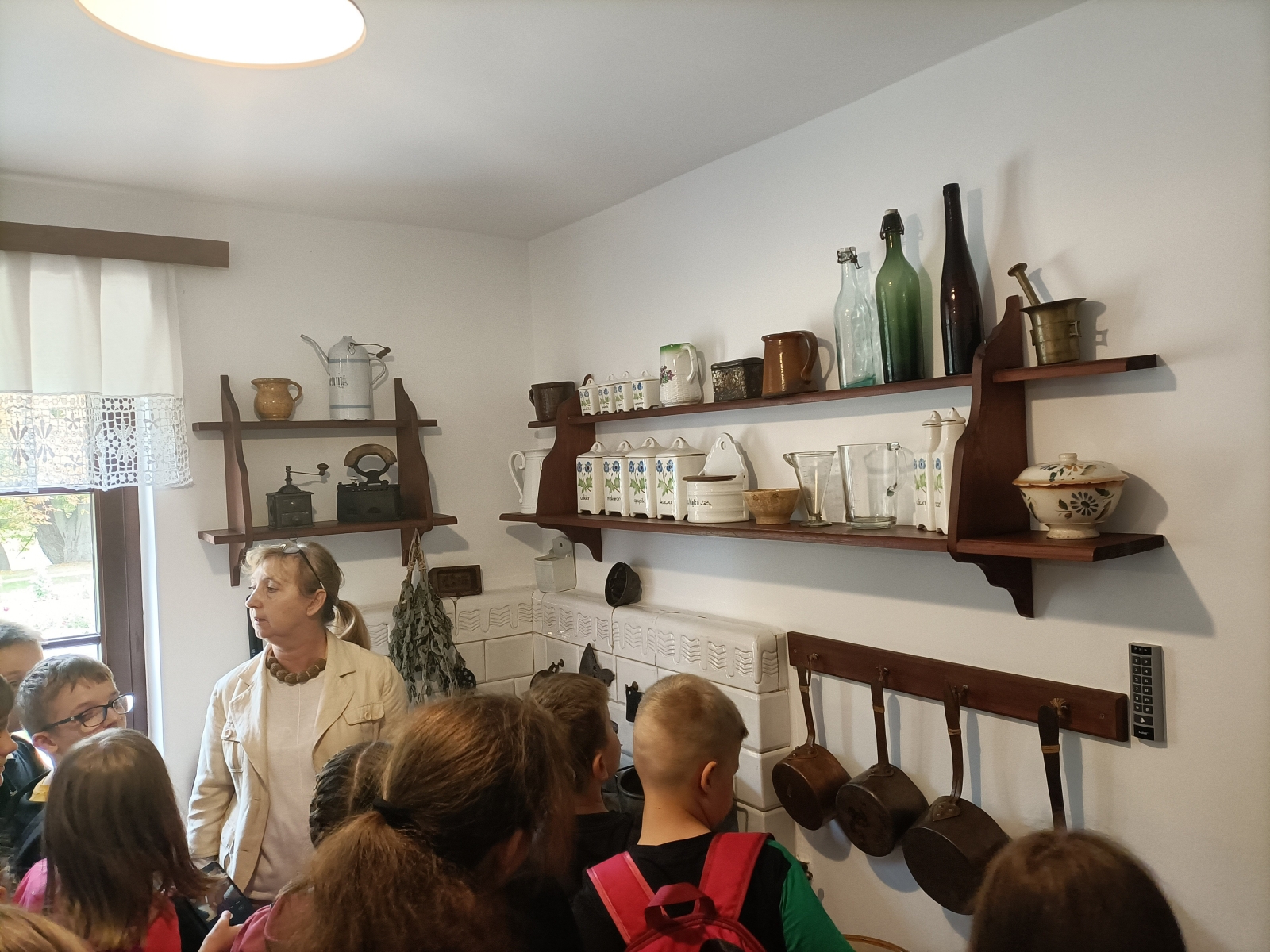 Następnie czwartoklasiści odbyli ciekawą lekcję muzealną w Dworku Marii Dąbrowskiej w Russowie. Muzeum poświęcone słynnej pisarce, otwarte w 1971 roku w jej rodzinnym dworku w zabytkowym parku w Russowie, wywołuje ogromne wrażenie na zwiedzających, ze względu na nowo otwarte wystawy interaktywne. Już na wejściu do muzeum czekają panele interaktywne z informacjami o Marii Dąbrowskiej, a na górze urządzona jest nowa sala poświęconą ekranizacji "Nocy i dni" na miarę XXI w., czyli dużo interaktywnych elementów, gramofon, który po nakręceniu gra słynny walc, multimedialną przebieralnię, panel z filmem, kostiumy. Dworek otacza cudowny park. Coś pięknego!