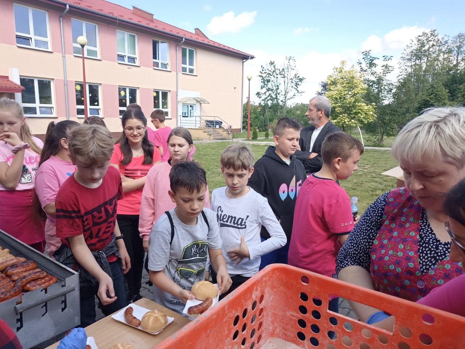 Uczniowie integrowali się, korzystając z możliwości wspólnego posiłku. Rodzice na posiłek ufundowali kiełbaski z grilla, bułki, napój i oczywiście lody!