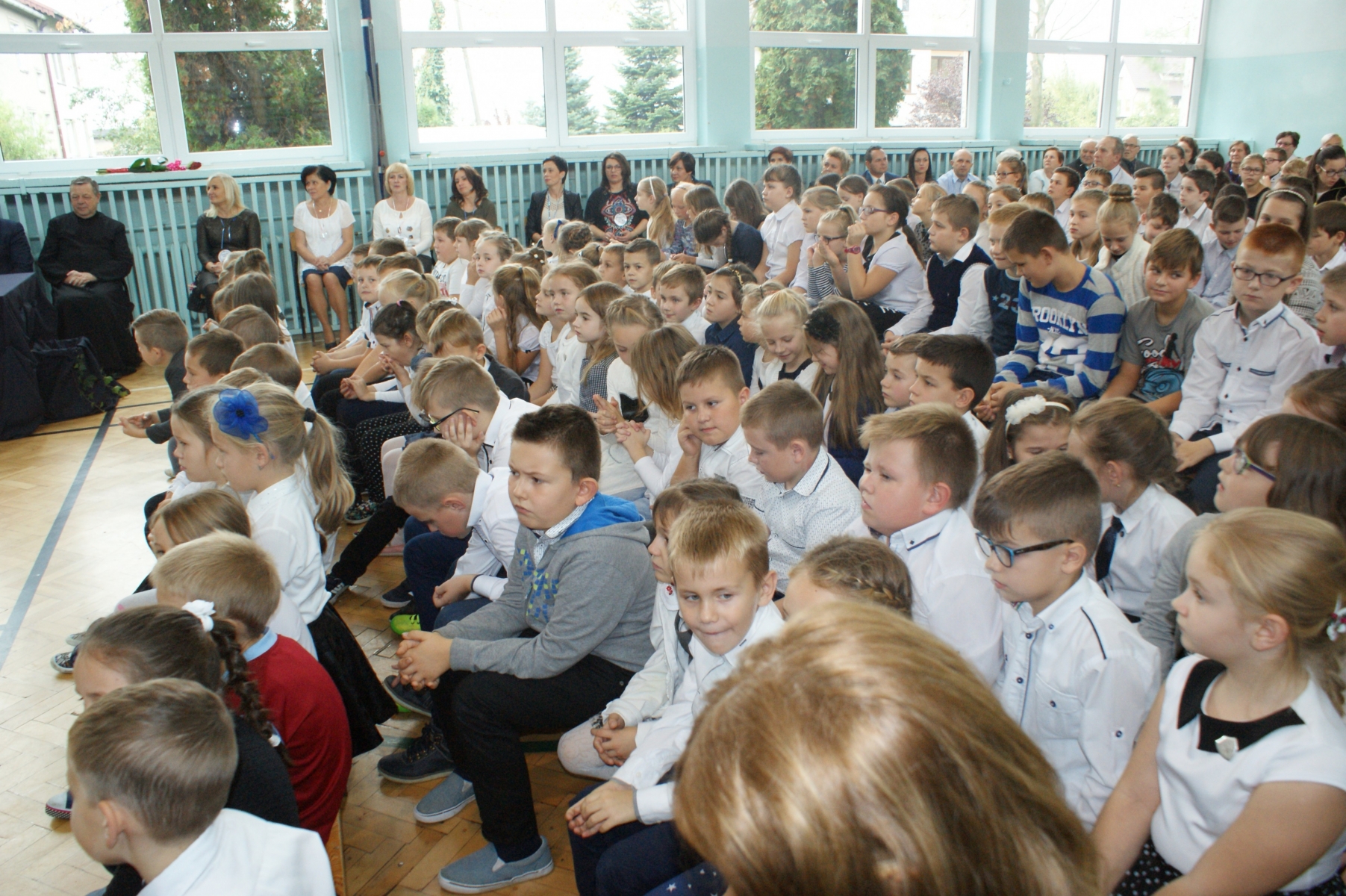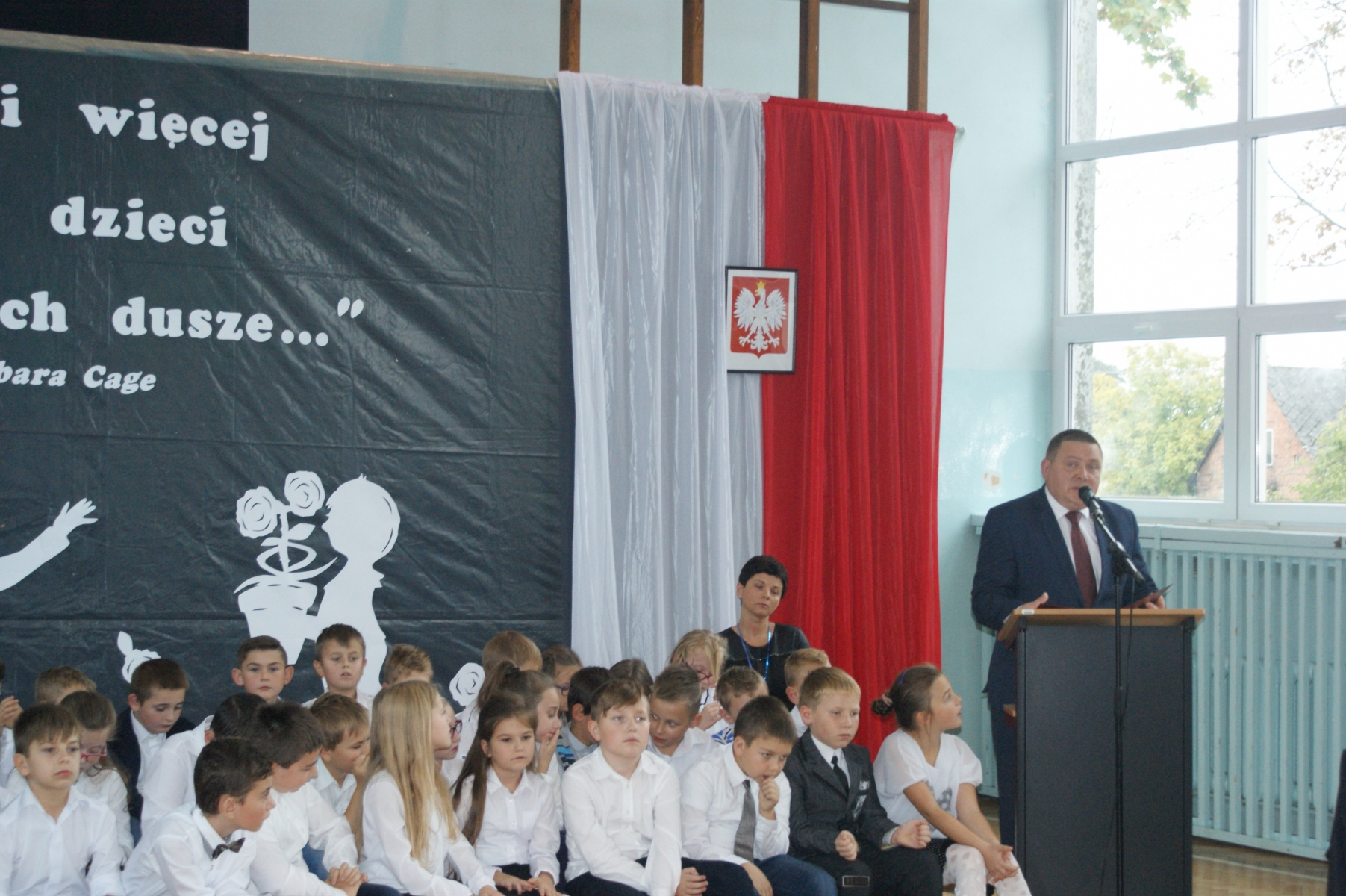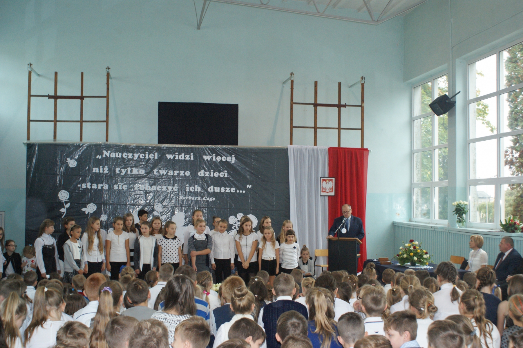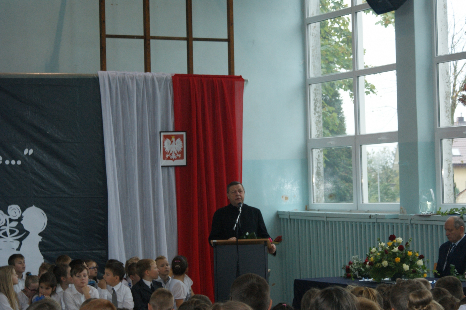Uczniowie recytowali wiersze, śpiewali piosenki, były też fragmenty z humorem. W swoich słowach zwracali uwagę na to, że praca nauczyciela to trudna droga, a trud związany z krzewieniem wiedzy jest często niedoceniany. Podkreślali, że to oni wskazują właściwą drogę, po której uczniowie mają w przyszłości kroczyć, a wiedza, którą zdobywają wychowankowie rysuje przed nimi nowe horyzonty i otwiera wiele do tej pory zamkniętych drzwi. To nauczyciele - wychowawcy uczą dzieci szacunku do drugiego człowieka i wiary we własne siły. Potrafią swoim postępowaniem rozładować napiętą sytuację, powodują, że świat staje się znośniejszy. Uczniowie w swoich słowach dziękowali za to, że nauczyciele kochają dzieci po prostu: te grzeczne i mądre, ale i te niesforne, rozgadane, a czasem po prostu niegrzeczne i leniwe… trzeba lubić z nami być i trzeba chcieć pokazywać nam świat… Trzeba po prostu urodzić się nauczycielem. Za wkładany trud i pracę, Pan Dyrektor Marek Nowicki nagrodził Nauczycieli i Pracowników: Ewę Stelmaszak, Marię Prentczyńską, Małgorzatę Wągiel, Julitę Muszalską, Izabelę Bartczak - Klimek, Justynę Balcerzak, Urszulę Kamińską, Emilię Kapustę, Henrykę Bogacką, Barbarę Wielgocką i Andrzeja Przytułę.