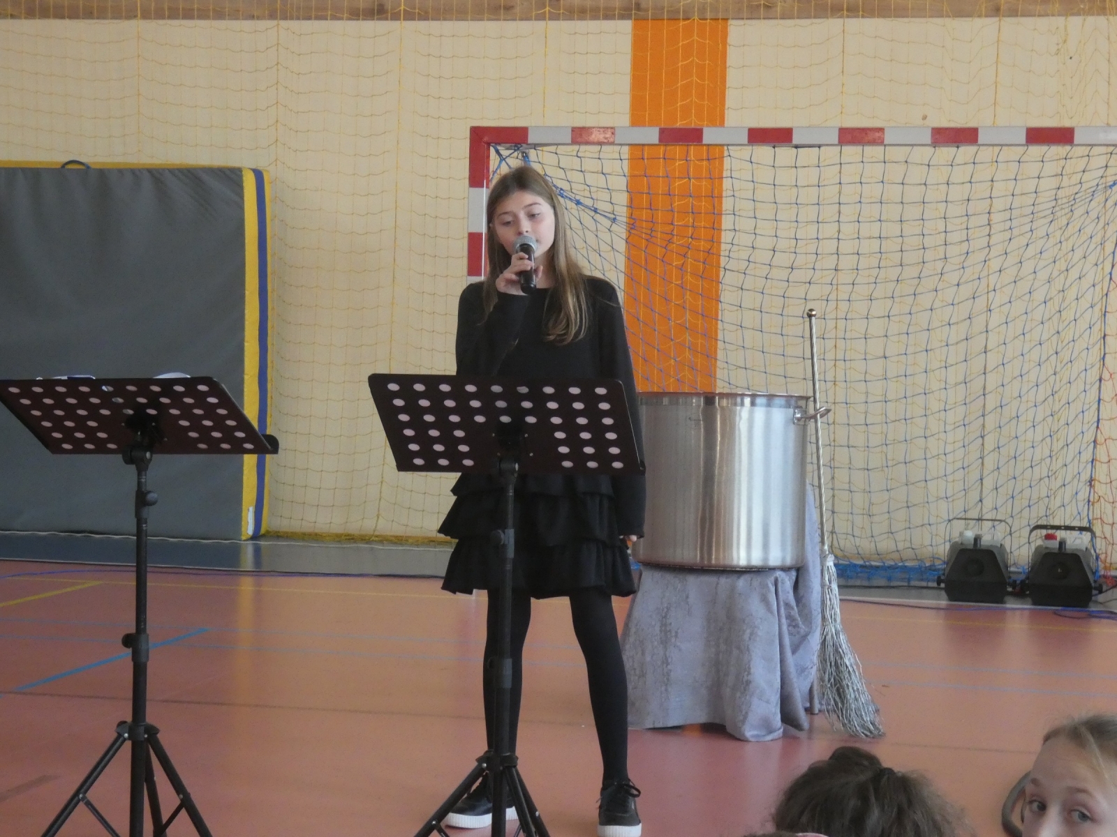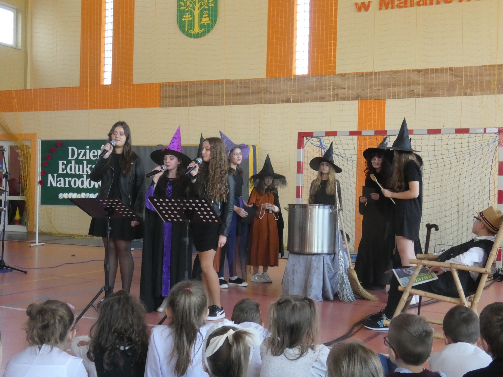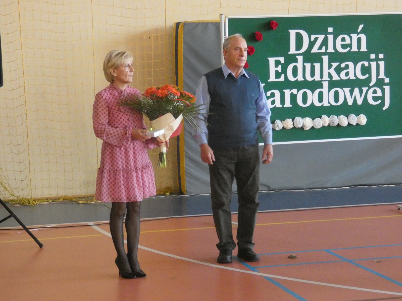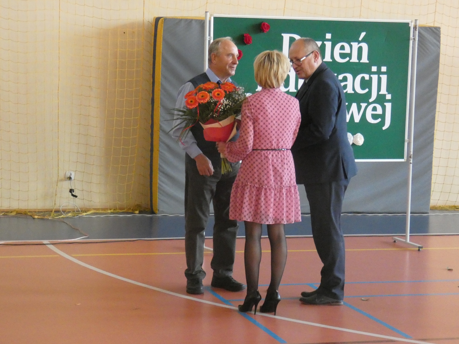 Zaraz po odśpiewaniu hymnu polskiego głos zabrał pan dyrektor Marek Nowicki, który wręczył również nagrody. Uczniowie klasy 6b odegrali scenkę, w której uświadomili nam jak ważną osobą jest nauczyciel. Następnie można było usłyszeć klasową piosenkę "Hej Sokoły" oraz podziękowania skierowane do nauczycieli. Wystąpiły również: Maja Szamburska, Maja Kubiak, Dominika Lament z piosenką "Nauczyciel o nas myśli" i Daria Pokrywiecka z piosenką "Wieczorny walczyk". Na koniec zatańczył zespół "Discomax" z układem zadedykowanym nauczycielom.