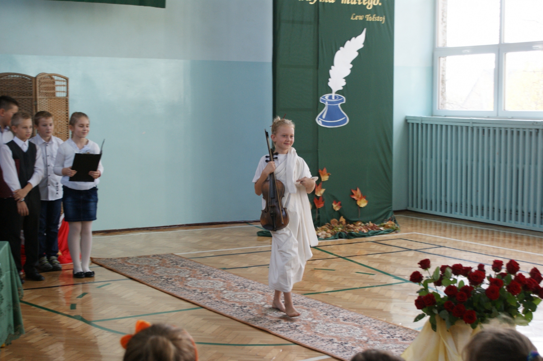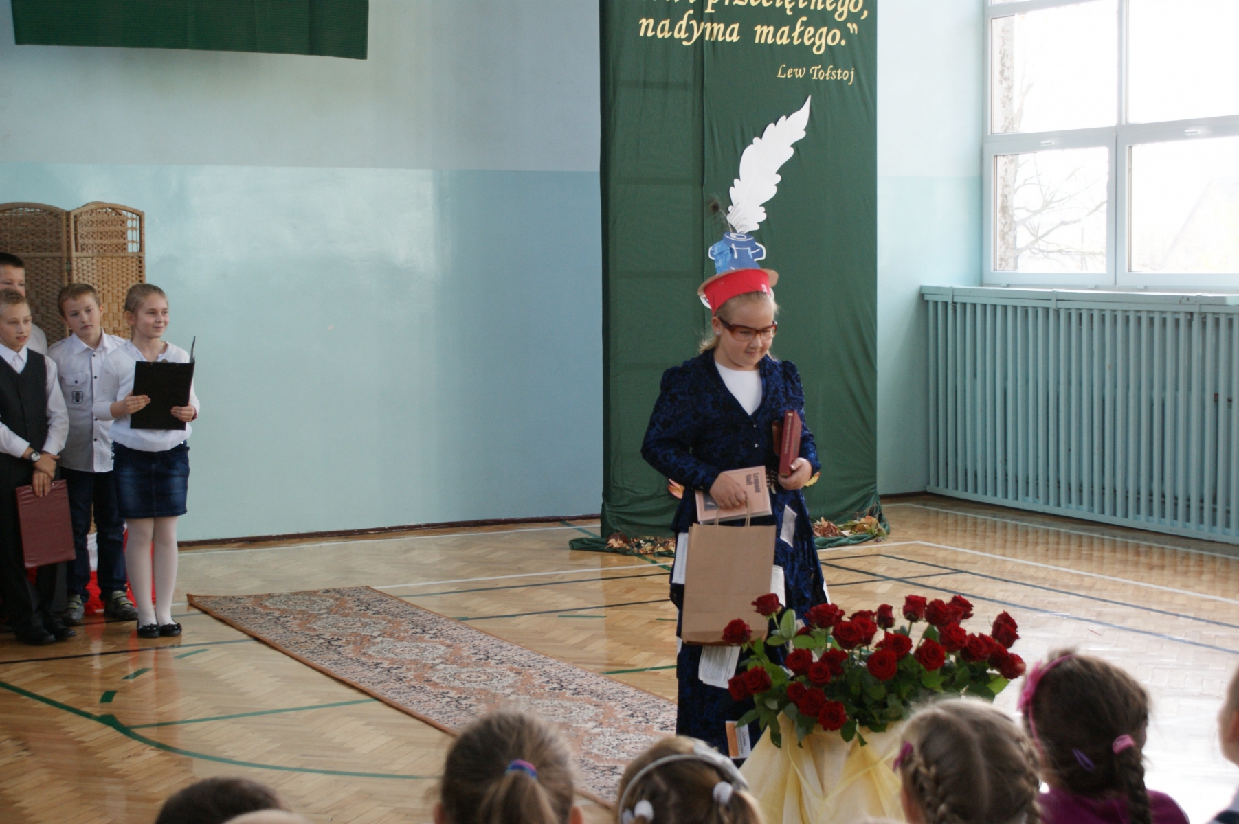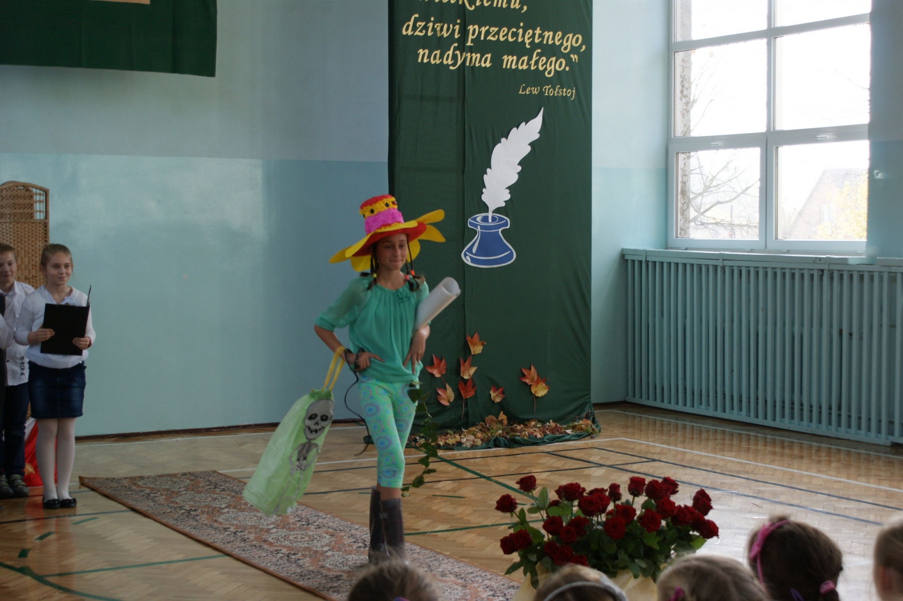 11 października w naszej szkole odbyła się uroczysta Akademia z okazji Dnia Edukacji Narodowej. Przygotowali ją uczniowie klasy IVb pod kierunkiem wychowawczyni Julity Muszalskiej. Na początku uczniowie powitali wszystkich gości, którzy przybyli na uroczystość: Zastępcę przewodniczącego Rady Gminy pana Piotra Jasiaka, Księdza Prałata Stanisława Płaszczyka, dyrekcję szkoły, nauczycieli i wychowawców, nauczycieli, którzy nie pracują już zawodowo w naszej szkole oraz pracowników administracyjnych szkoły. Następnie młodzi artyści w zabawny sposób przedstawili pokaz mody nauczycielskiej.Inspiracji do przygotowania kolekcji, szukali w tematyce przedmiotów, z jakimi spotykają się na etapie szkoły podstawowej. Uczniowie, którzy wcielili się w rolę modeli i modelek, mimo tremy, jaka towarzyszyła im na wybiegu, starali się w oryginalny sposób przekonać swoich nauczycieli, że przyjście w prezentowanych strojach do szkoły, wzbudzi ogromne zainteresowanie uczniów danym przedmiotem. Konferansjerzy z ogromną pasją zachwalali proponowane przez projektantów bezpretensjonalne stroje, które na pewno zostaną przebojem tegorocznych obchodów Dnia Nauczyciela. Cały pokaz przeplatany był utworami muzycznymi. Na koniec tradycyjnie w ramach podziękowania nauczycielom za ich trud włożony w edukację i wychowanie uczniowie złożyli im podziękowania i życzenia oraz obdarowali ich kwiatami.