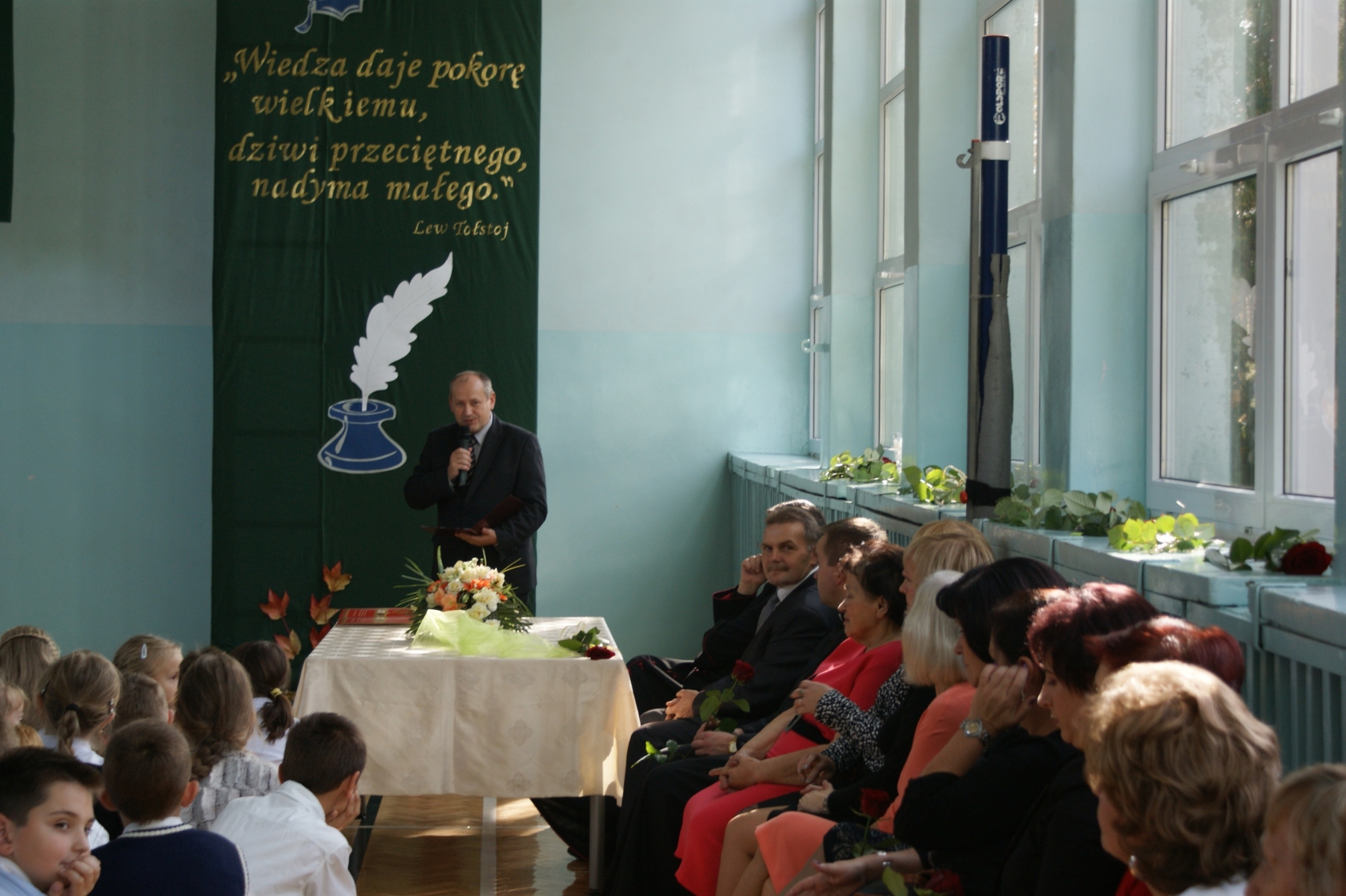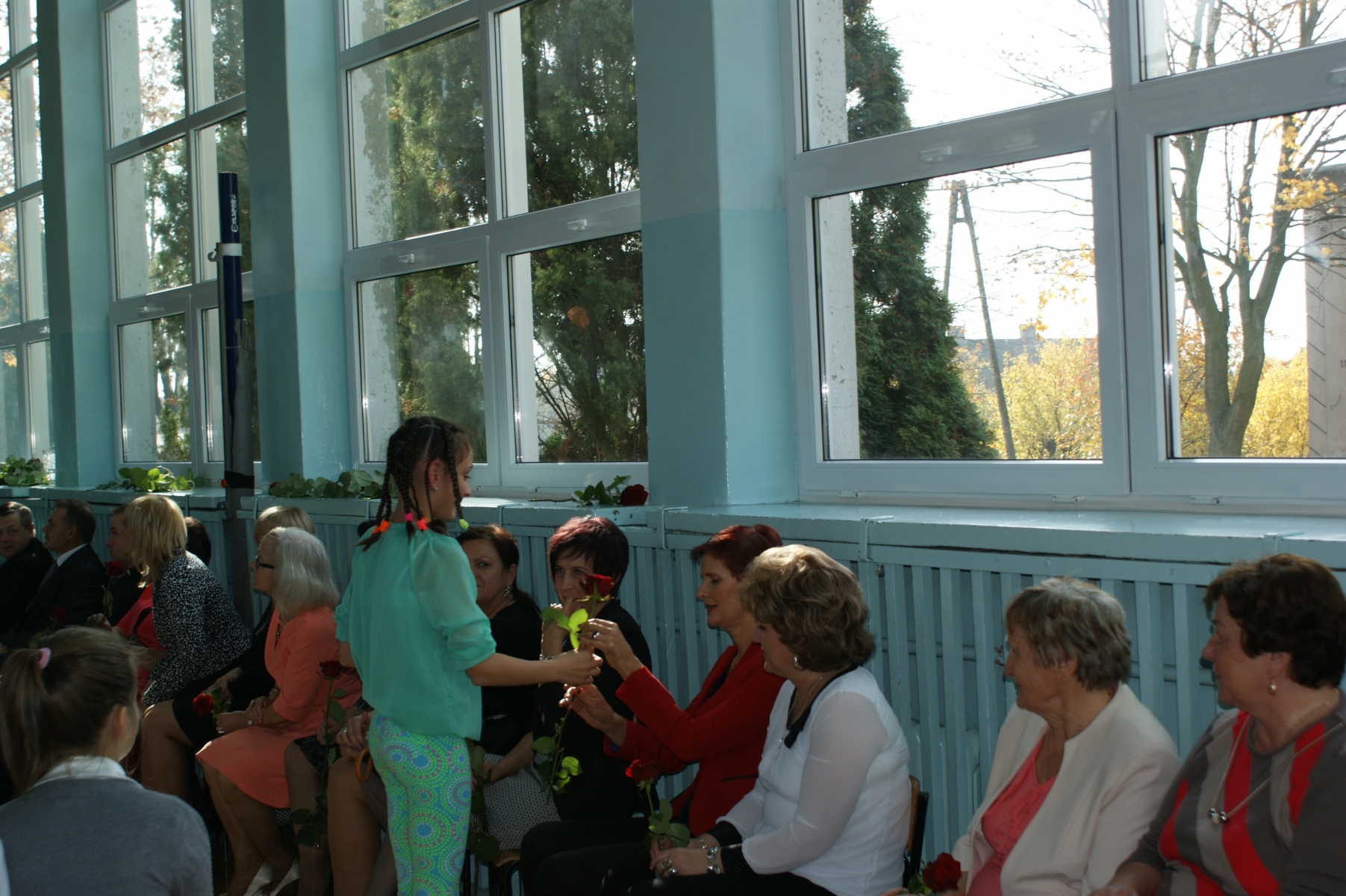 Po przedstawieniu przybyli na uroczystość goście złożyli życzenia wszystkim pracownikom szkoły oraz przekazali kwiaty na ręce Pani Dyrektor.