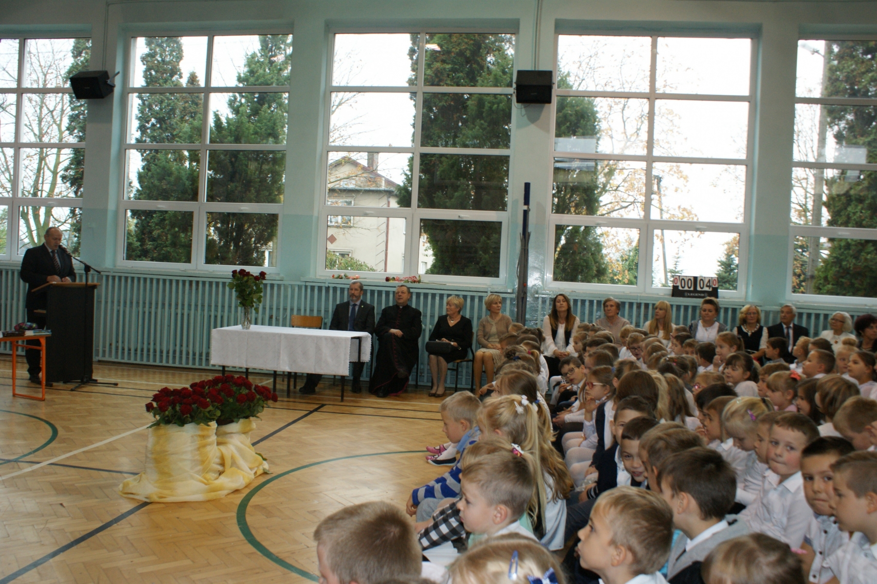 Uroczystość rozpoczął Pan Dyrektor Marek Nowicki, który powitał wszystkich gości, obecnych na uroczystości: Wójta Gminy Sławomira Prentczyńskiego, zastępcę Przewodniczącego Rady Gminy panią Bożenę Kołek, Księdza Prałata Stanisława Płaszczyka, nauczycieli i wychowawców, nauczycieli, którzy nie pracują już zawodowo w naszej szkole oraz pracowników administracyjnych szkoły. Pan Dyrektor wręczył także Nagrody Dyrektora nauczycielom: paniom Dorocie Cyran, Magdalenie Nowickiej , Emilii Stefaniak, Justynie Pietrzak, Aleksandrze Jasnowskiej, Małgorzacie Przybylak i Urszuli Kamińskiej oraz pracownikom obsługi: paniom Emilii Kapuście, Jolancie Gadzinowskiej, Danucie Wiśniarek i Halinie Zając. Podczas przekazywania nagród uczniowie dziękowali nagrodzonym gromkimi brawami. Następnie przybyli na uroczystość goście złożyli życzenia wszystkim pracownikom szkoły oraz przekazali kwiaty na ręce Pani Dyrektor.