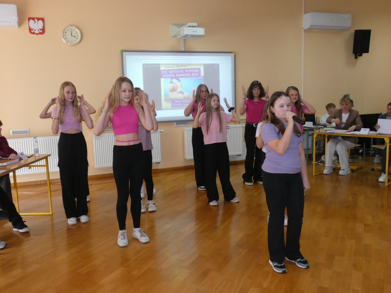 W trakcie, kiedy jurorzy liczyli punkty, przed widownią zaprezentowały się uczennice z klasy V B z układem tanecznym do niemieckiej piosenki.