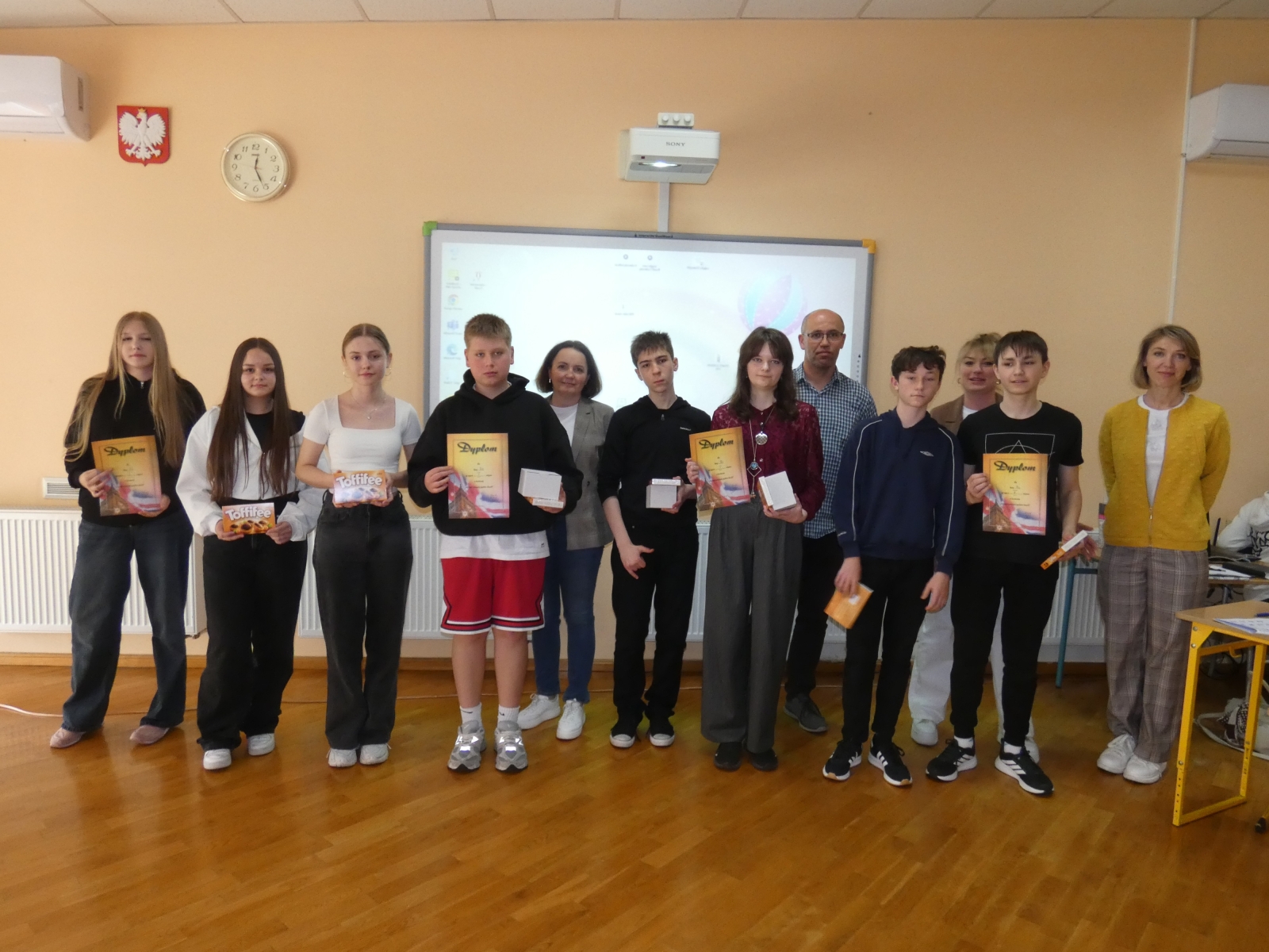Niedługo po tym przyszedł czas na ogłoszenie wyników. Z wynikiem 19/20 pkt. miejsce I zajęli ex aequo przedstawiciele klas ósmych. II miejsce z wynikiem 17/20 pkt. zostało przyznane ex aequo uczniom klas siódmych.
