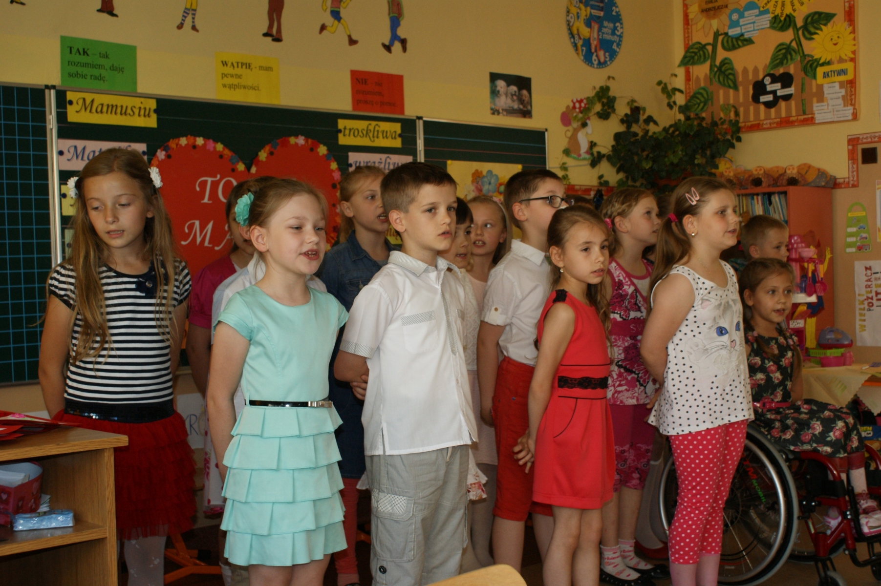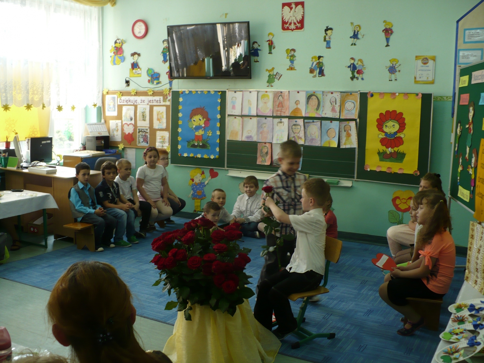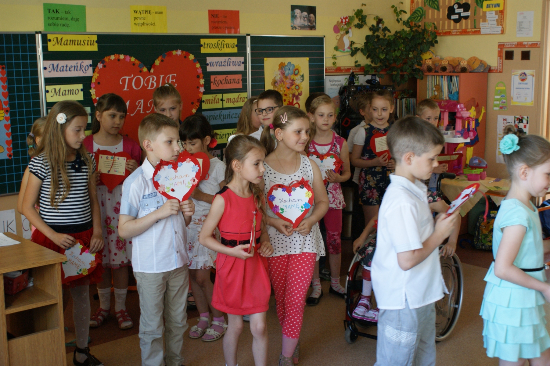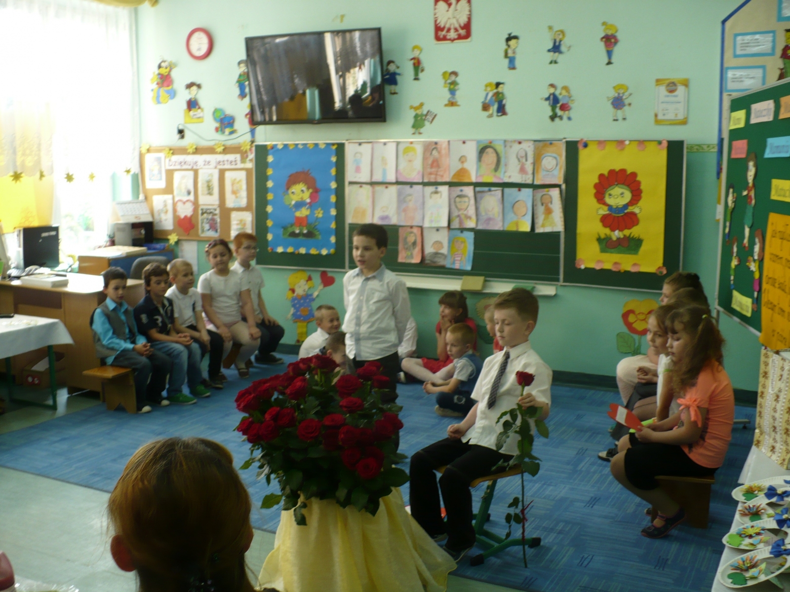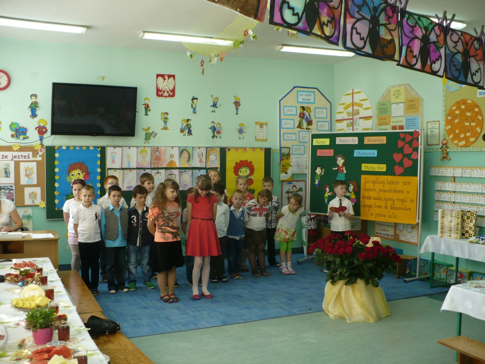 Na początku wychowawczynie przywitały gości i złożyły życzenia Mamom z okazji ich święta. Następnie pierwszoklasiści zaprezentowali przygotowane programy artystyczne, w których wyrazili miłość, wdzięczność i oddanie swoim mamom. Mamy wysłuchały wierszy, piosenek i krótkiej historii n/t obchodów Dnia Matki. Obejrzały proste układy taneczne oraz scenki, w których dzieci przedstawiły problemy życia codziennego. Najbardziej wzruszającym momentem była „wiązanka serdecznych życzeń”, gdzie dzieci mogły indywidualnie w miłych słowach wyrazić wdzięczność za ciepło domowej atmosfery i trud codziennego dnia, wręczając swoim mamom symboliczne róże oraz laurki. W czasie trwania części artystycznej na twarzach mam pojawiał się często uśmiech i łzy wzruszenia.