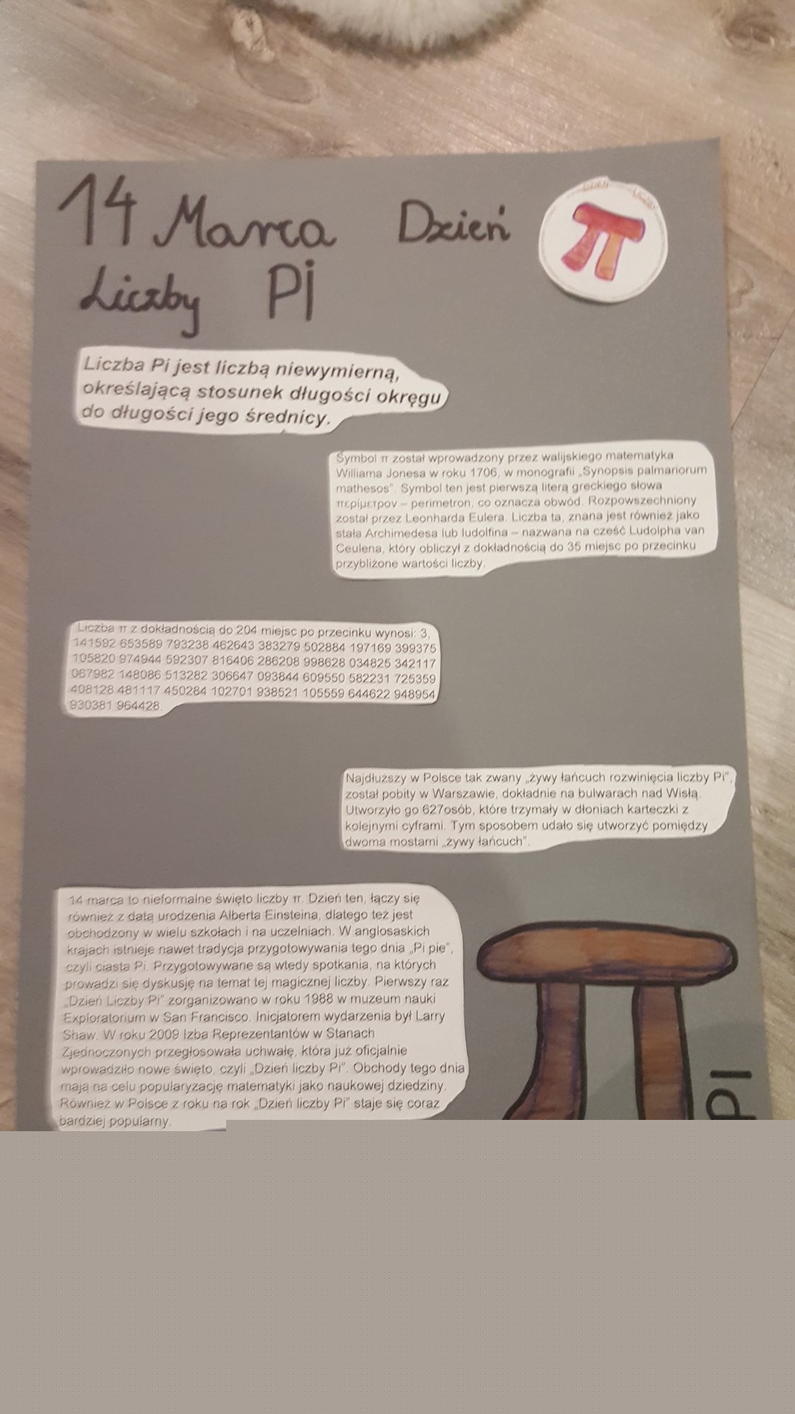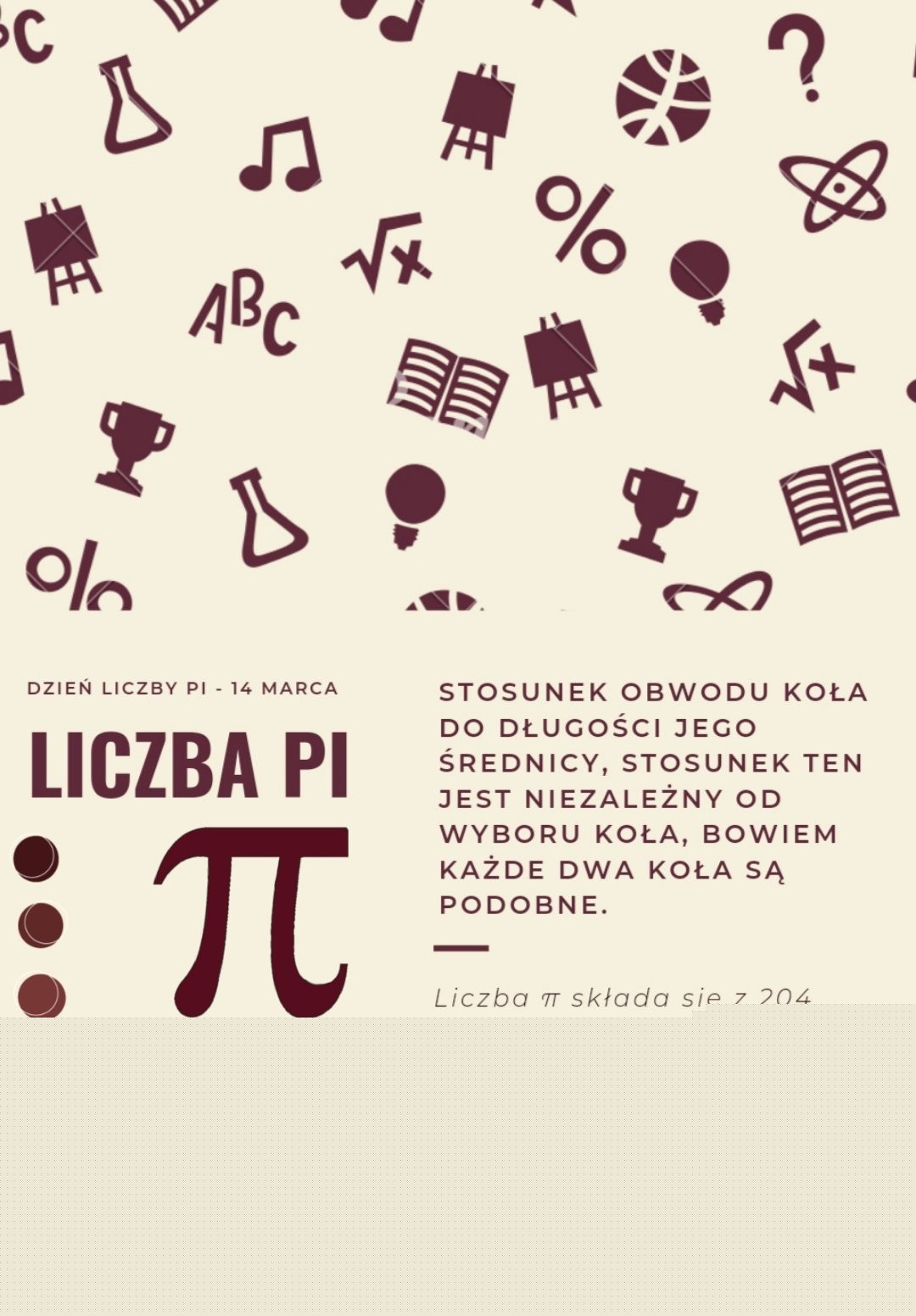 - liczba π w przybliżeniu to 3,14 - dlatego nie przypadkowo obchodzimy to święto14 marca,