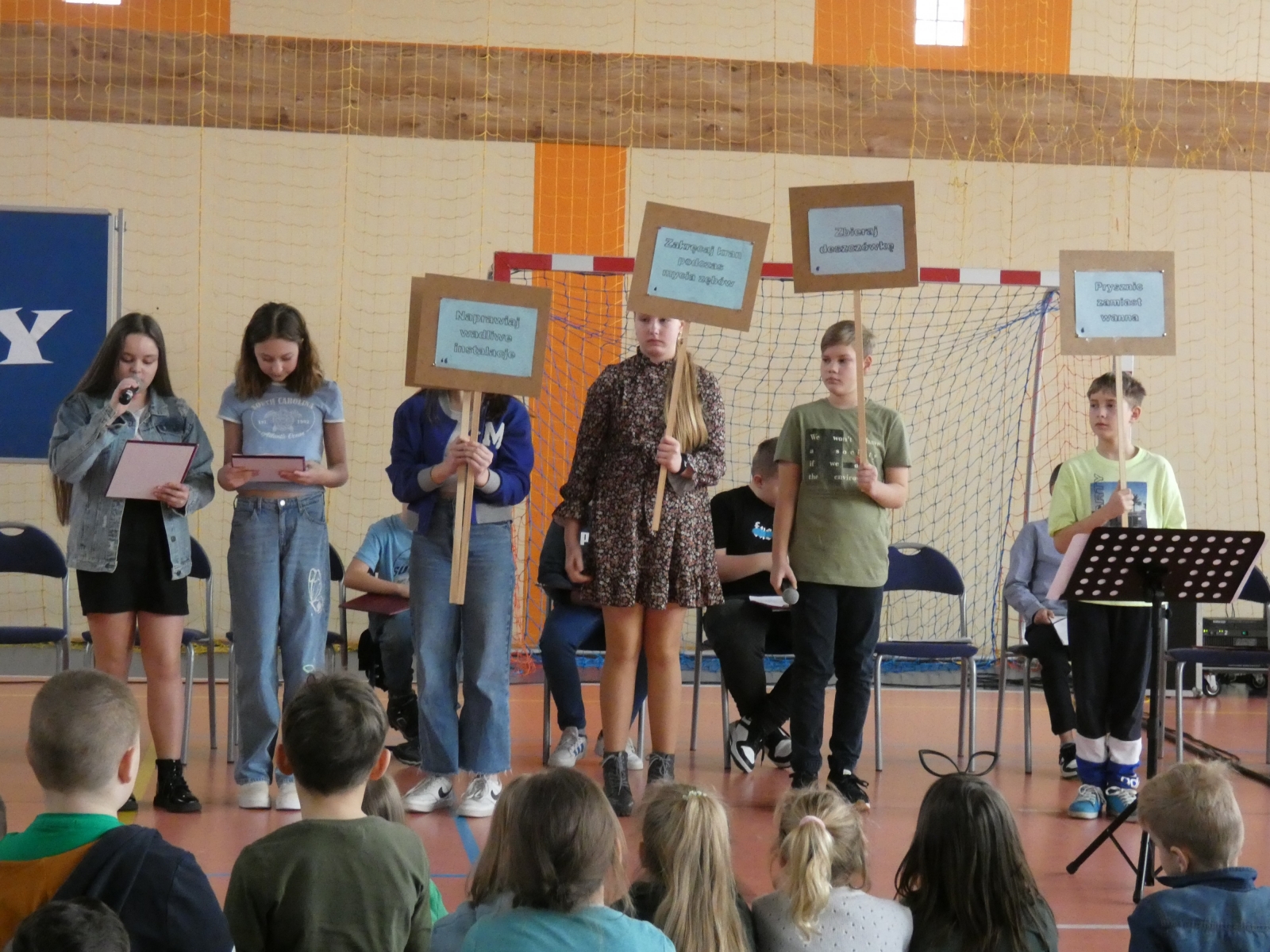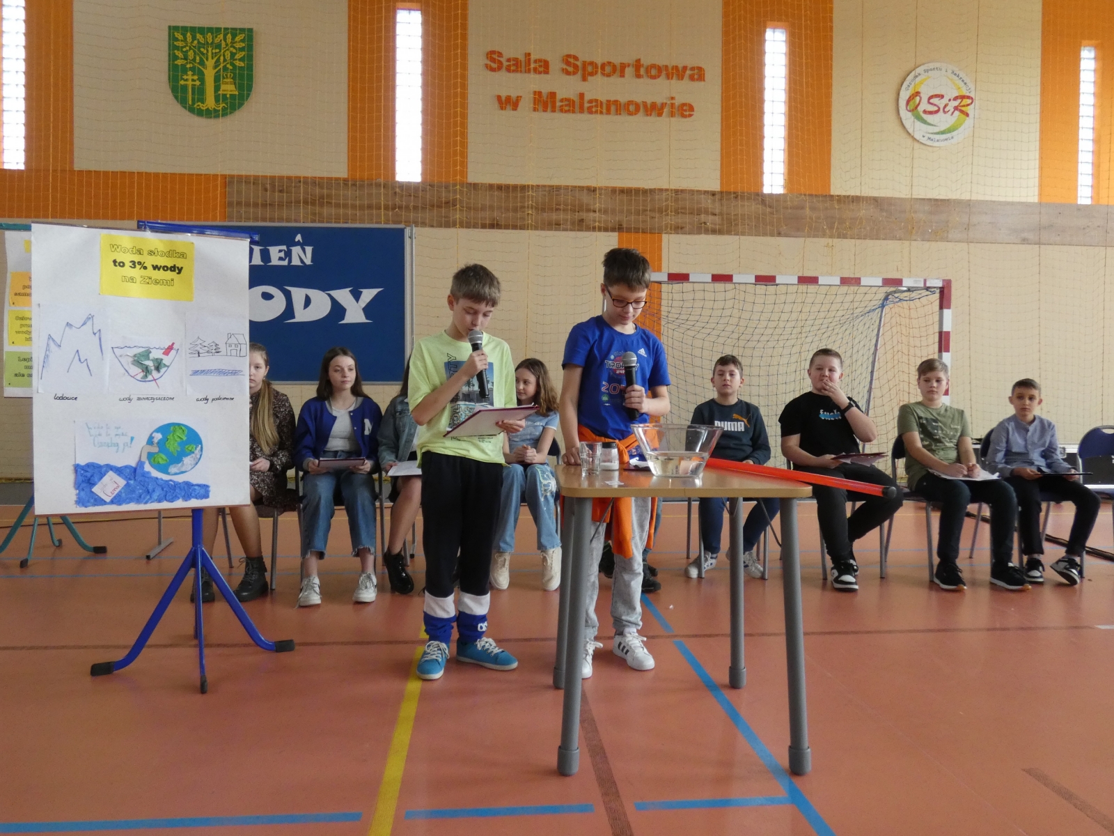 Uczniowie opowiedzieli o różnych formach i sposobach oszczędzania wody, podkreślając fakt, iż zasoby wody słodkiej kurczą się błyskawicznie, podczas gdy liczba ludności na Ziemi rośnie, a wraz z nią wzrasta zapotrzebowanie na wodę.
