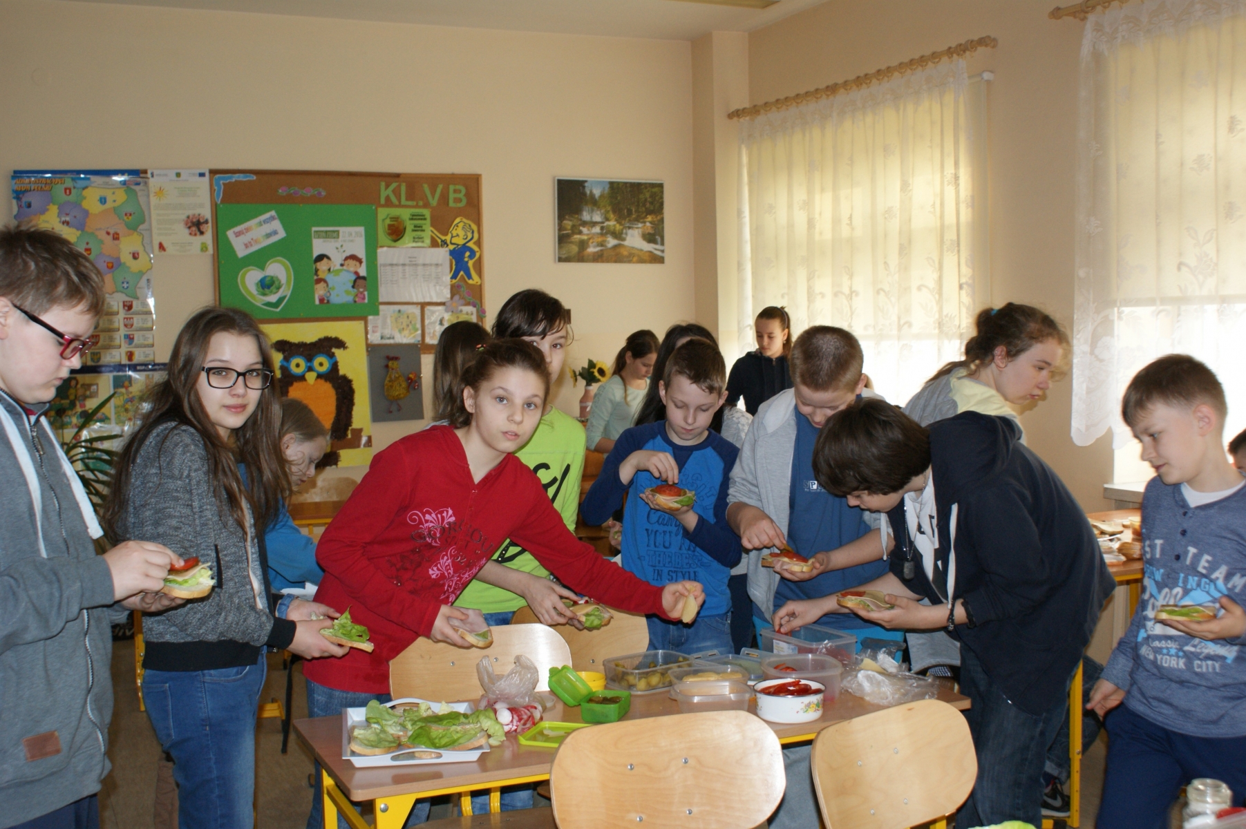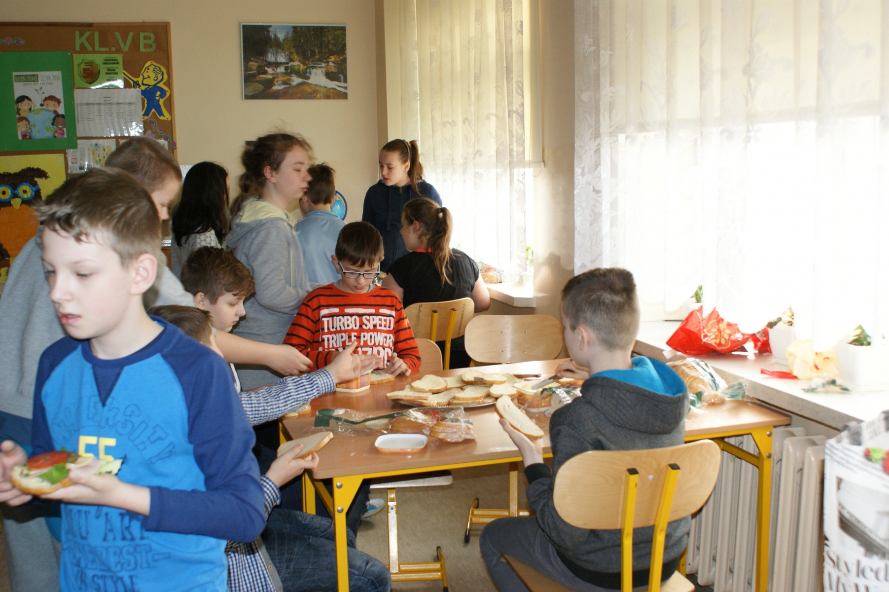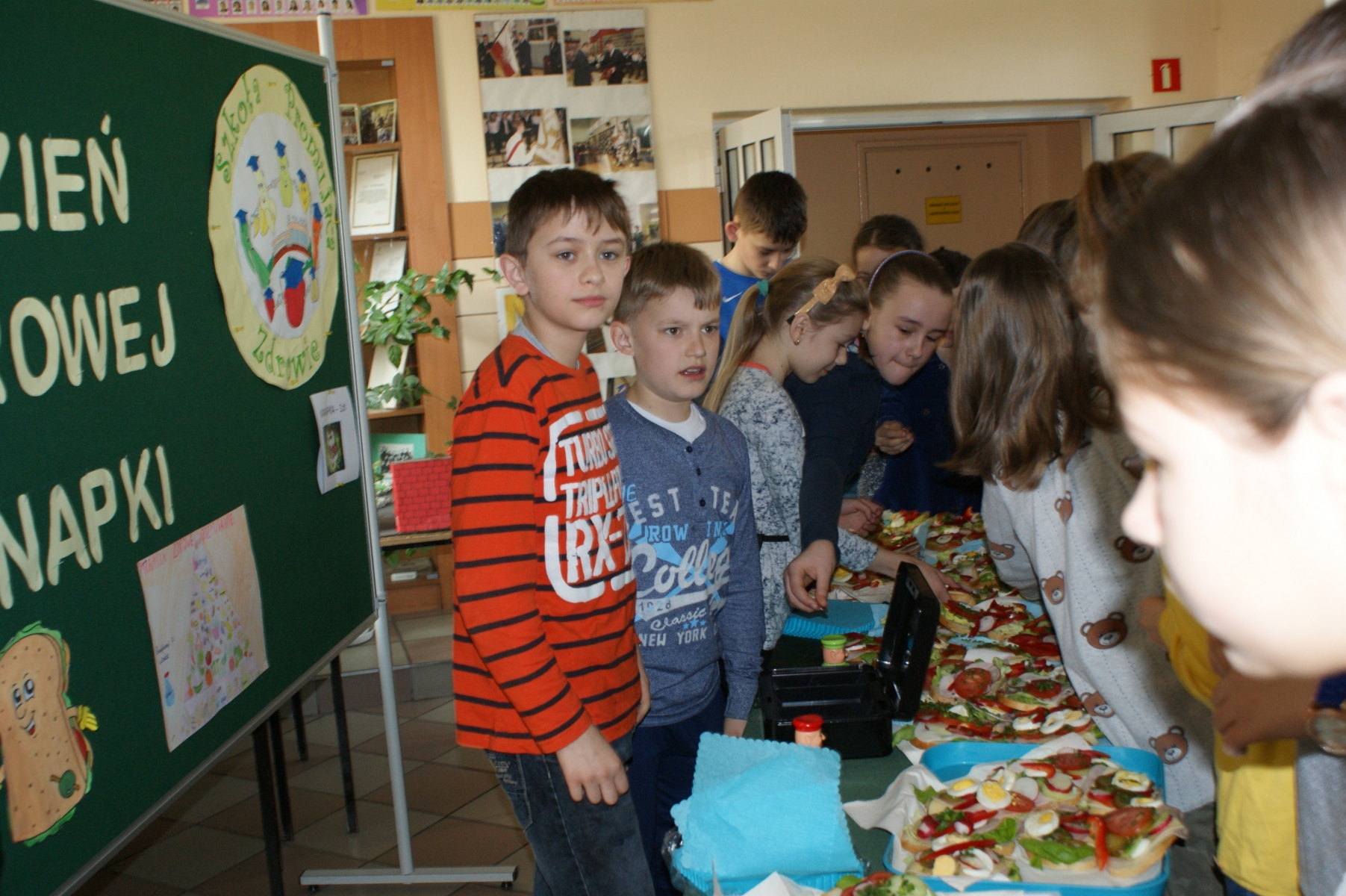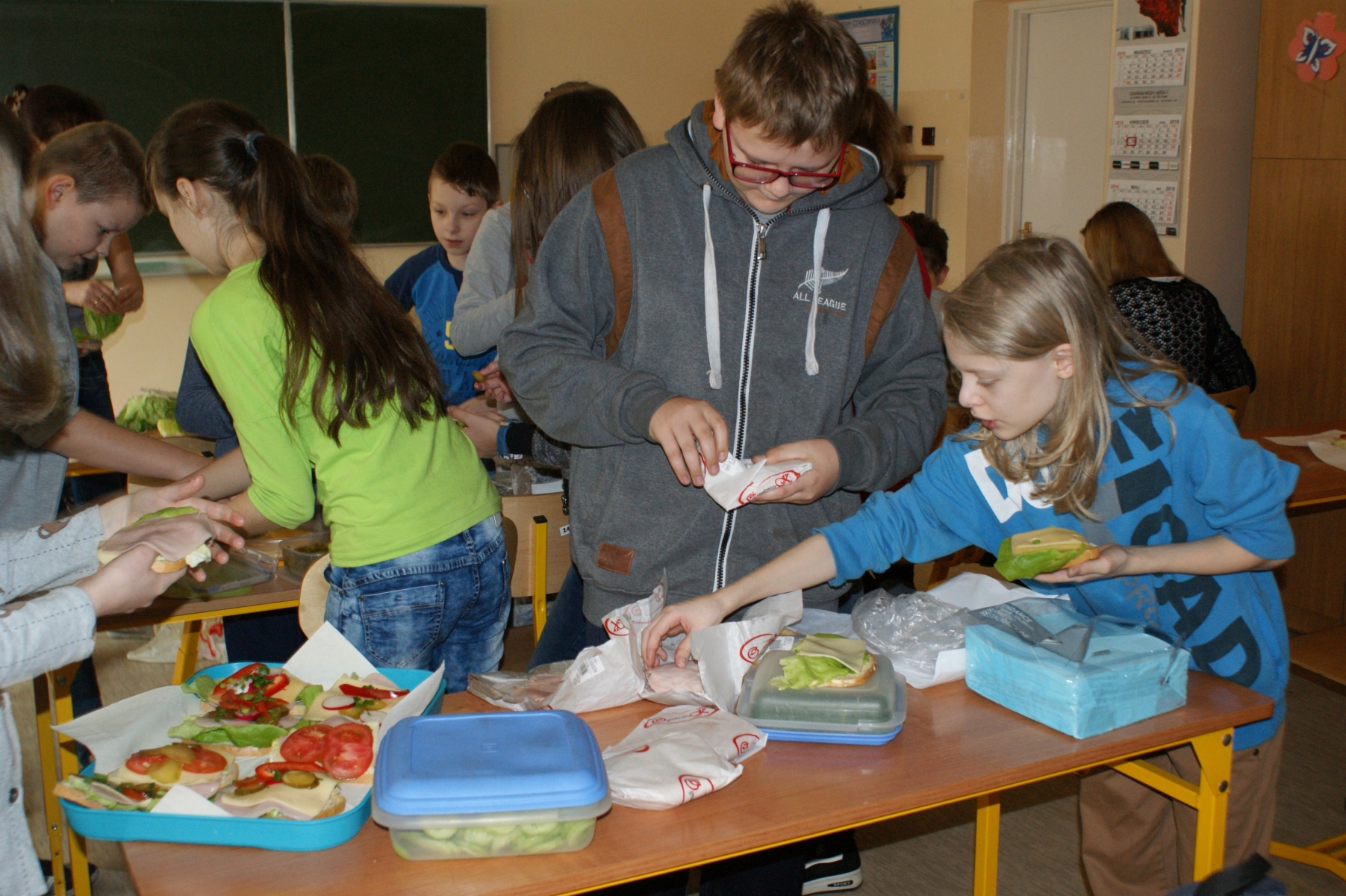 W dniu 13 kwietnia 2016 roku w Szkole Podstawowej w Malanowie odbył się po raz kolejny Dzień Zdrowej Kanapki w ramach realizacji programu „Szkoły Promującej Zdrowie”. Uczniowie klasy V b z wielkim zaangażowaniem i zapałem przystąpili do przygotowania kanapek ze zdrowych produktów. W przygotowaniu kanapek pomagały nam mamy naszych uczniów pani Joanna Mrugas , pani Małgorzata Ćwiklińska i pani Emilia Dymarczyk, którym za pomoc serdecznie dziękuję. Podczas przerwy czterech uczniów naszej klasy rozprowadzali kanapki dla całej społeczności szkolnej za symboliczną złotówkę. Otrzymany zysk przeznaczono na konto Rady Rodziców.