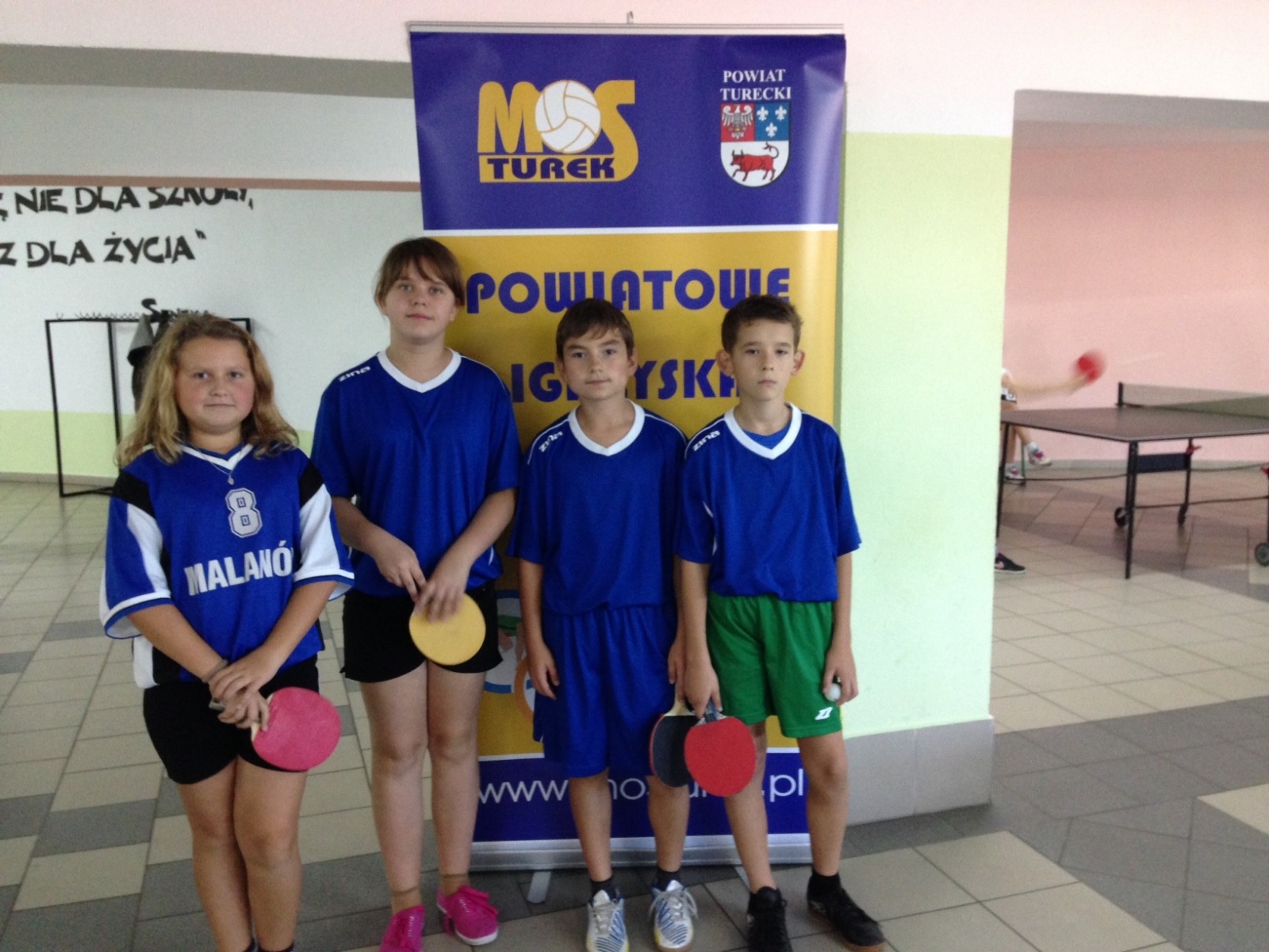 W dniu 23 października w Brudzewie odbyły się Eliminacje Drużynowe Dziewcząt i Chłopców Szkół Podstawowych. Rozlosowano systemem brazylijskim po dwóch przegranych meczach zespół odpada z gry, trafiliśmy na Słodków i Przykonę, niestety musieliśmy uznać przewagę naszych przeciwników i odpadliśmy z dalszych eliminacji. Naszą szkołę reprezentowali Klaudia Kowalska, Julia Andrzejewska, Szymon Pawlak i Kamil Nowakowski. Mam nadzieję, iż nauka pozyskana podczas turnieju pozwoli nam w przyszłości zaistnieć na arenie naszego powiatu w tej dyscyplinie sportu.