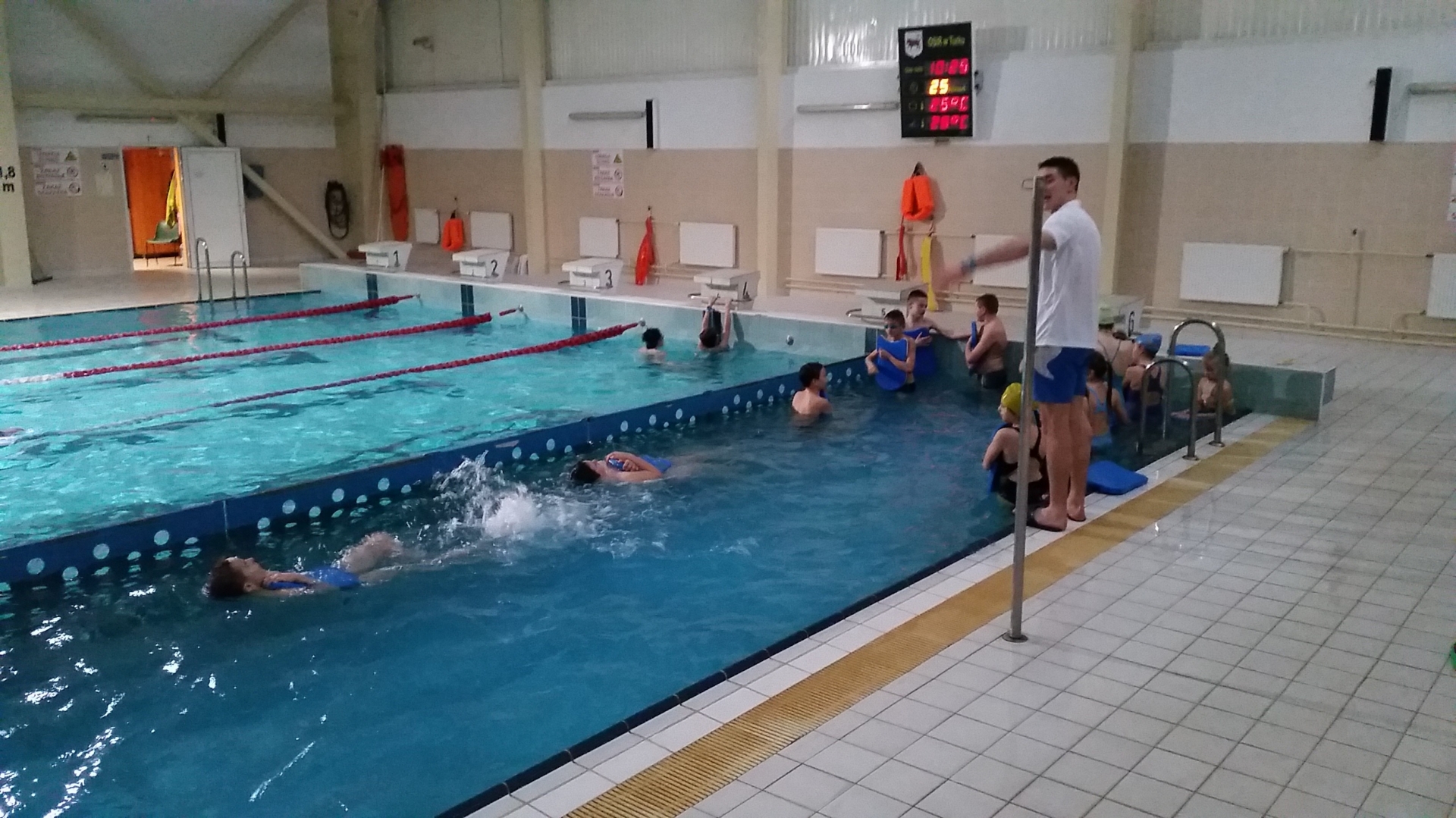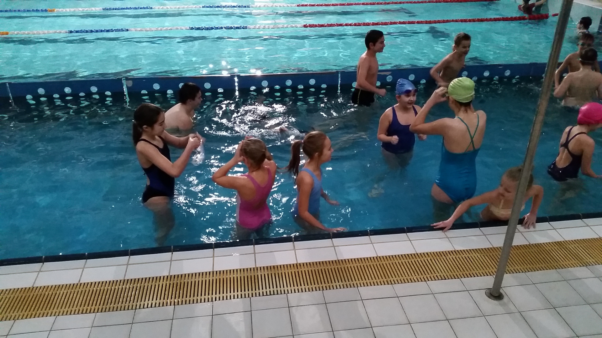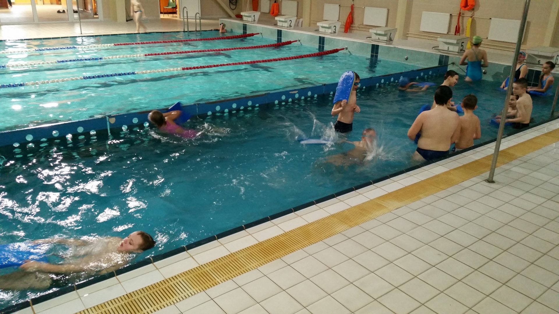 Podczas pierwszych zajęć uczniowie zapoznali się ze środowiskiem wodnym poprzez gry i zabawy w wodzie. Nurkując, wykonując poślizgi oraz wydechy do wody młodzi pływacy zapoznali się z przysłowiowym „abecadłem” pływania. Kolejne zajęcia opierały się na doskonaleniu pracy nóg i ramion w pływaniu stylem grzbietowym i kraulem na piersiach. W drugim tygodniu zajęć uczniowie uczestniczyli w nauce pływania w głębokim basenie oraz doskonalili skoki do wody. Wspólna nauka, zabawa i ruch sprawiły, że dzieci spędziły wolny czas w aktywny sposób. Cztery godziny zajęć to zaledwie „kropla w morzu” w całym cyklu nauki pływania, jednakże zauważalne postępy i zaangażowanie wśród dzieci były motorem napędowym zajęć.
