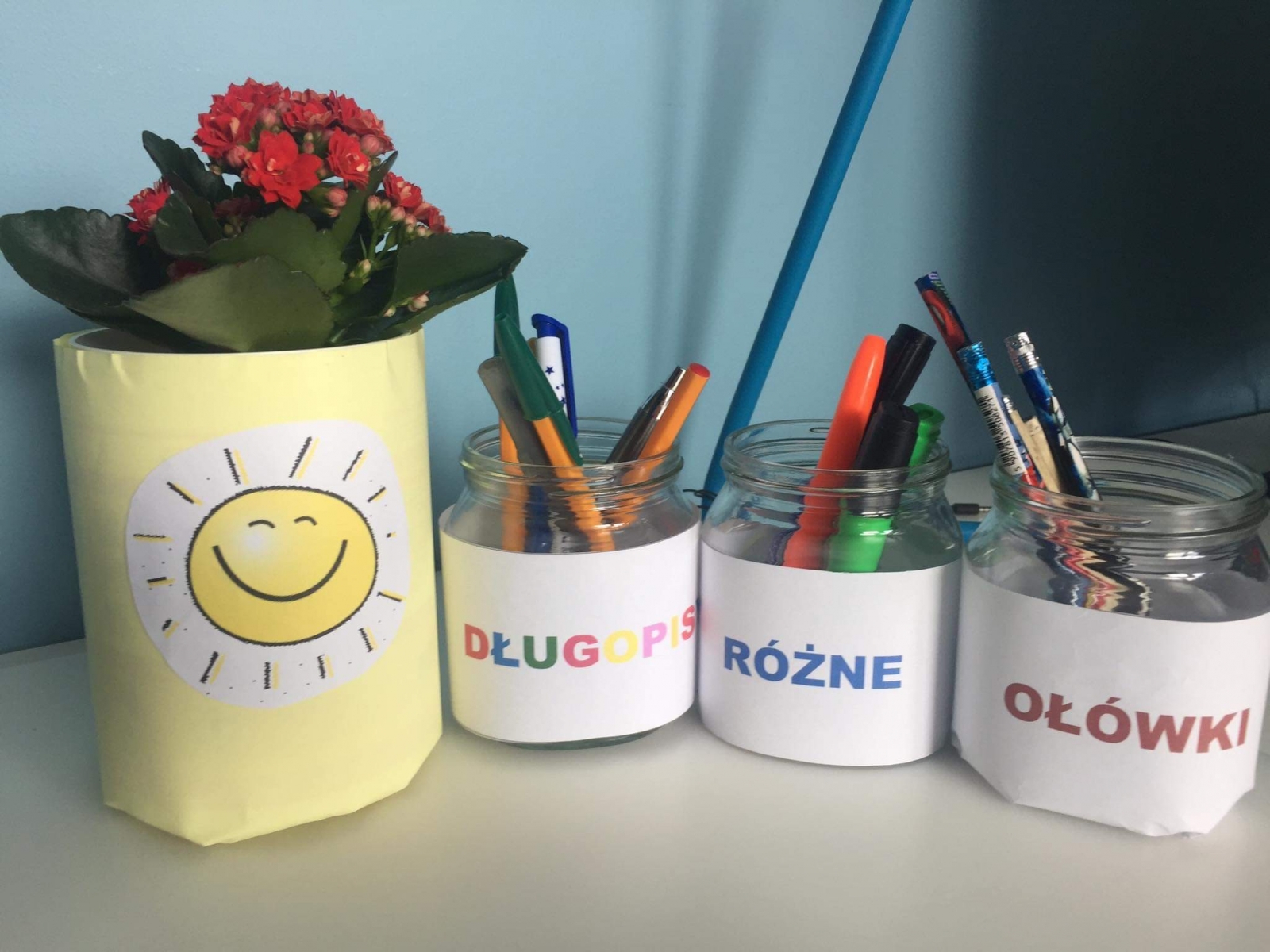 Ich zadaniem było wykonanie właśnie takiego przedmiotu z odpadów, które znaleźli w domu np. butelki, puszki po farbie, tekturowego pudełka, czy … starego ubrania. Powstały bardzo fajne rzeczy: wazony, przyborniki do długopisów, skarbonki, a jedna z uczennic uszyła nawet dla siebie koszulę i frotki do włosów.