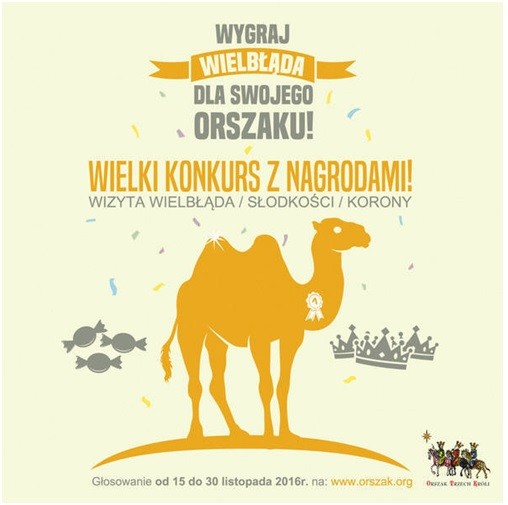 Już po raz czwarty mieszkańcy wszystkich miejscowości, w których odbędzie się Orszak Trzech Króli 2017, będą mogli wygrać dla swojego orszaku WIELBŁĄDA!