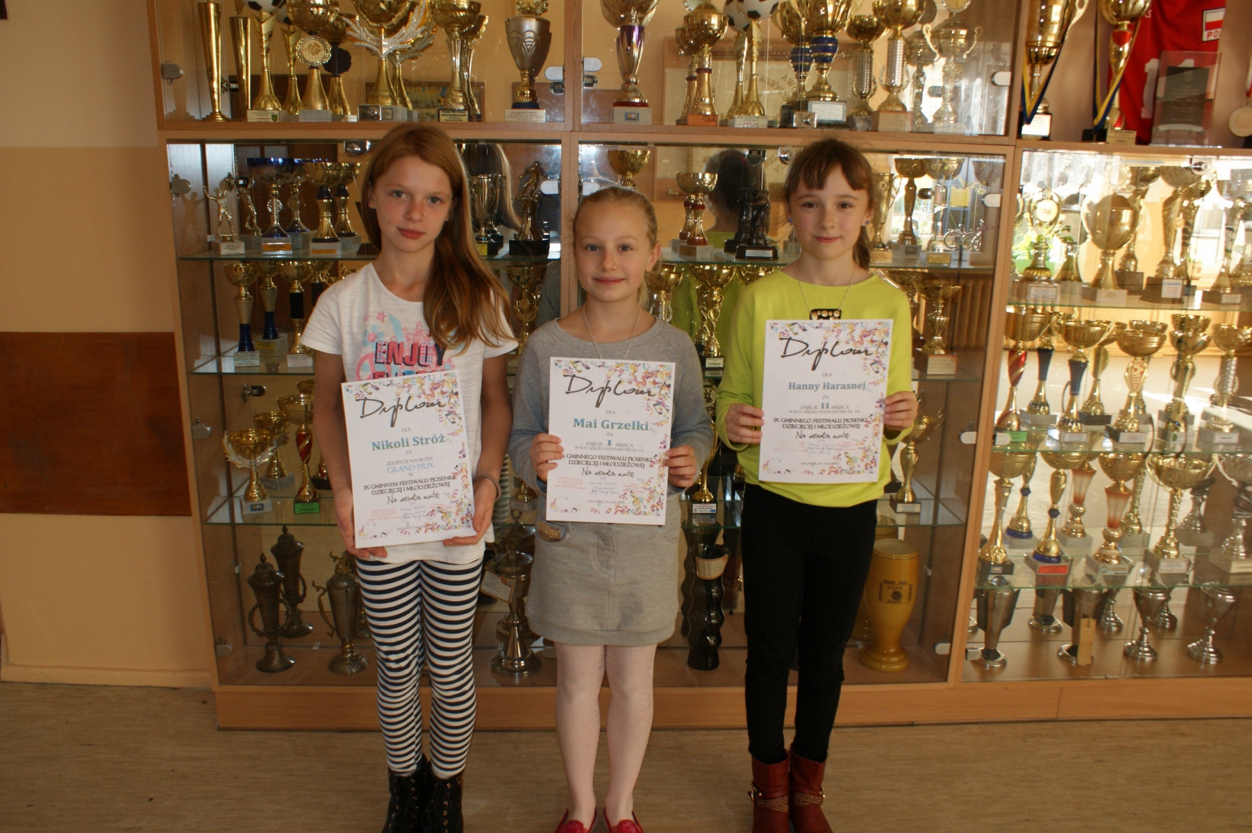 Natomiast najważniejsza nagroda festiwalu czyli GRAND PRIX 2015 przypadła uczennicy klasy szóstej - Nikoli Stróż, która piosenką „Szklana pogoda” w bardzo trudnej i żywiołowej aranżacji zachwyciła nie tylko jurorów lecz również całą zgromadzoną widownię. Wszyscy wokaliści otrzymali dyplomy uczestnictwa, a laureaci festiwalu dyplomy, gratulacje oraz nagrody. Opiekunami wykonawców były panie: Aleksandra Jasnowska, Emilia Andrzejczak, Katarzyna Tomczyk.