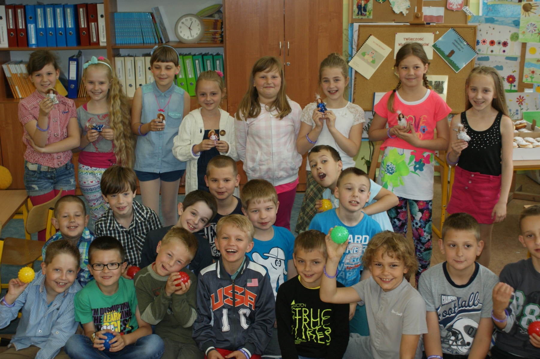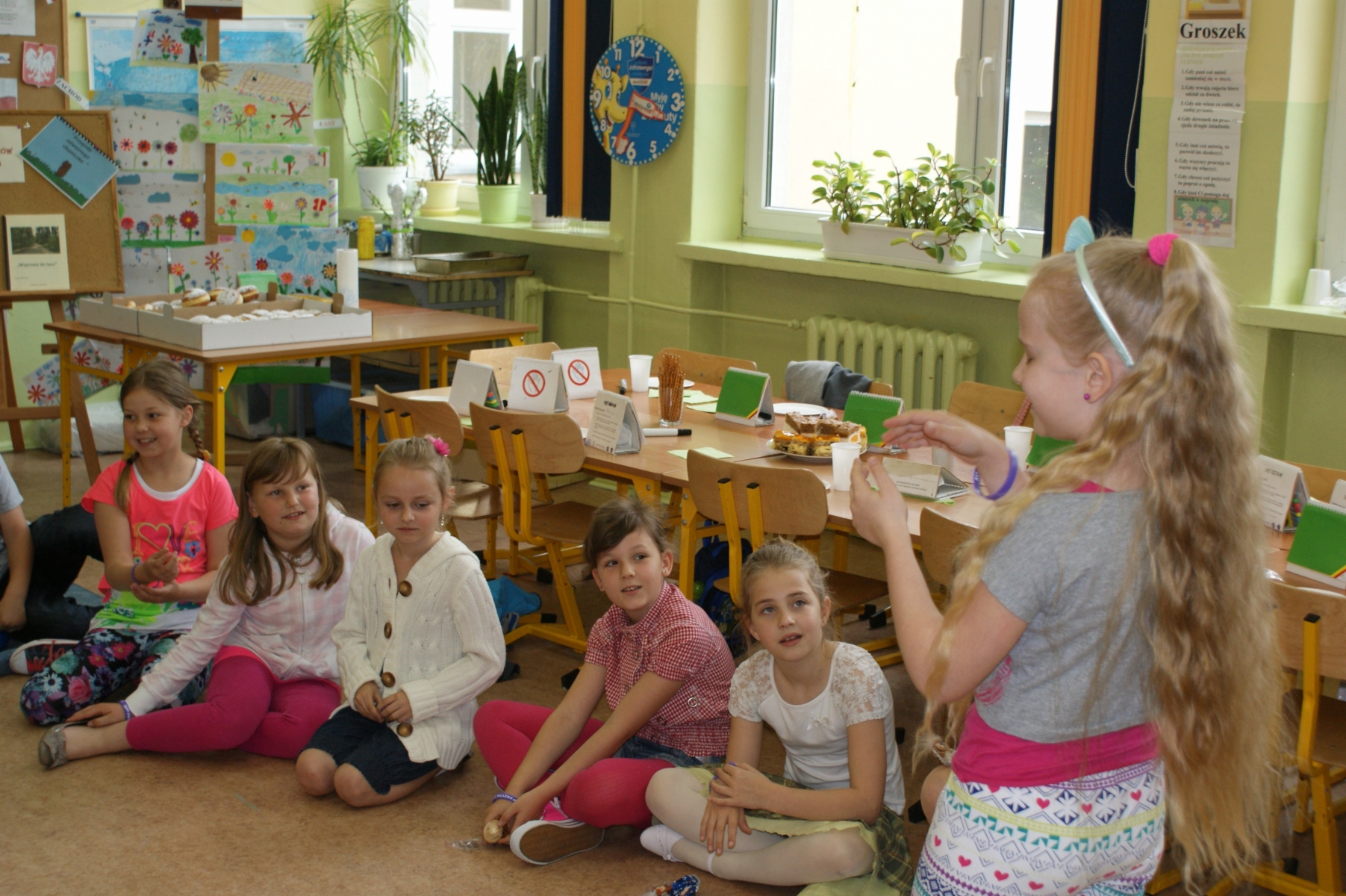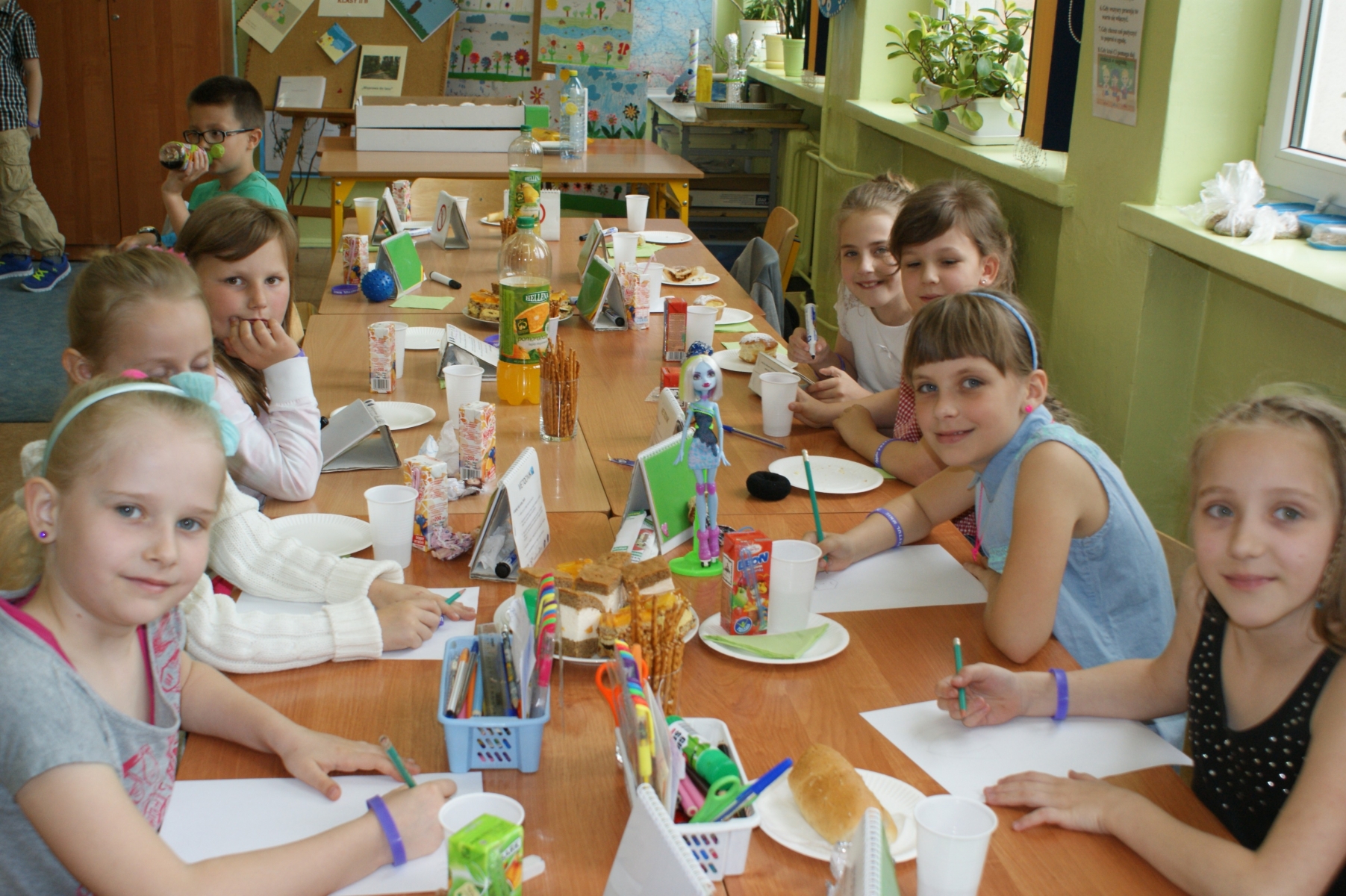 2 czerwca został zorganizowany w naszej szkole Dzień Dziecka. Z okazji tego święta uczniowie przyszli do szkoły bez teczek. Czekały na nich liczne atrakcje m.in. ciekawe gry i zabawy, bajki i filmy oraz słodkie poczęstunki. Odbył się również turniej piłki siatkowej. Uczniowie radośnie kibicowali i dopingowali swoich kolegów. Dla wszystkich został również przygotowany ciepły posiłek w postaci hot-dogów, herbaty i soczku. Na koniec można było potańczyć przy dźwiękach muzyki.
