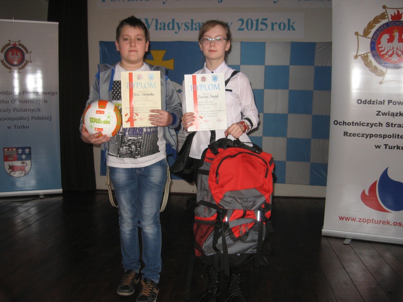 W sobotnie przedpołudnie 7 marca 2015 roku w Gimnazjum we Władysławowie odbyły się powiatowe eliminacje Ogólnopolskiego Turnieju Wiedzy Pożarniczej. Wzięli w nich udział laureaci gminnych etapów z terenu powiatu tureckiego. Naszą gminę i Szkołę Podstawową w Malanowie reprezentowało dwóch uczniów Monika Przybył - uczennica klasy VIb i Filip Okraska - uczeń klasy Va.