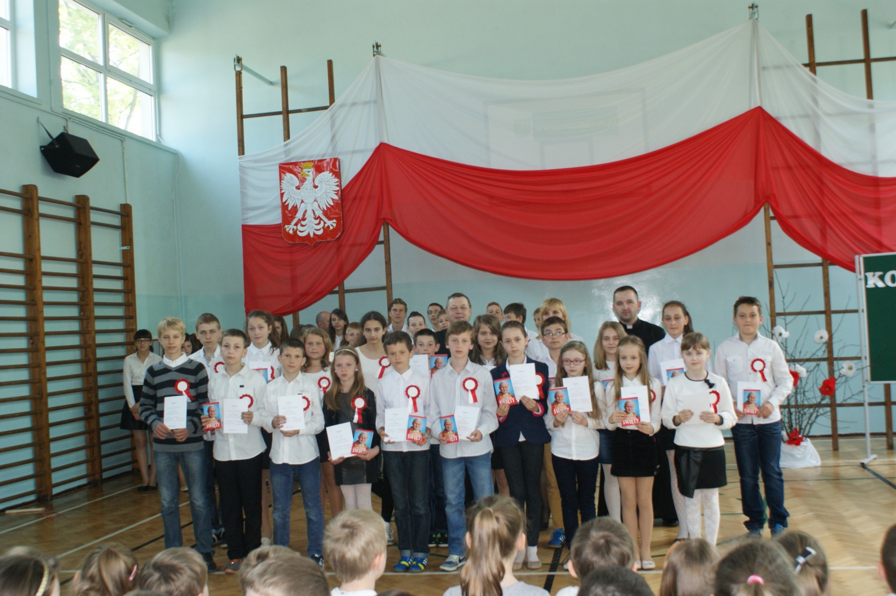 27 kwietnia odbyła się kanonizacja naszego ukochanego Papieża Jana Pawła II. Jesteśmy dumni z naszego rodaka i zawsze byliśmy. Świadczą o tym coroczne apele przygotowywane przez nas z okazji Dnia Papieskiego, wizyty w kościele, całej naszej społeczności z okazji kolejnych rocznic śmierci Papieża.