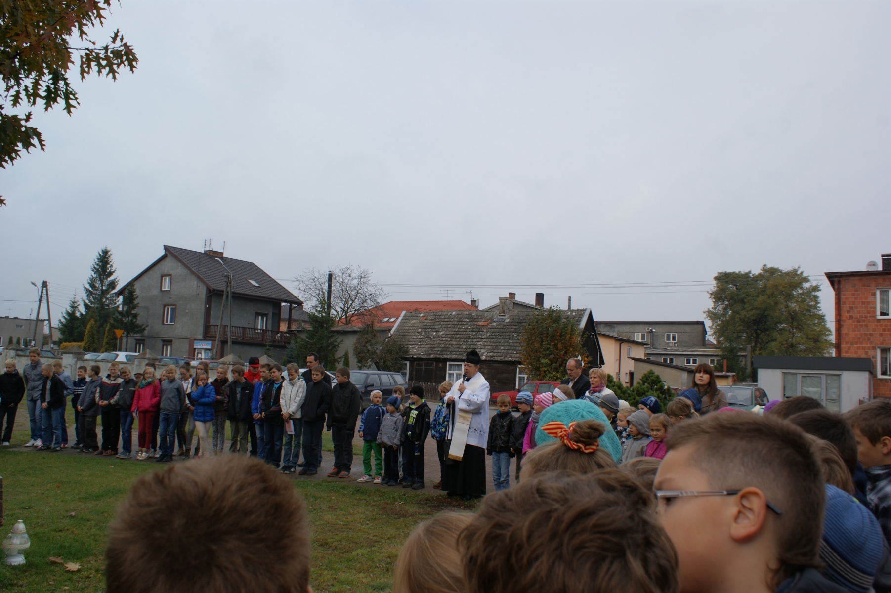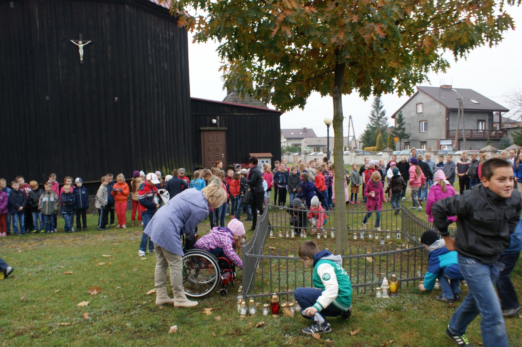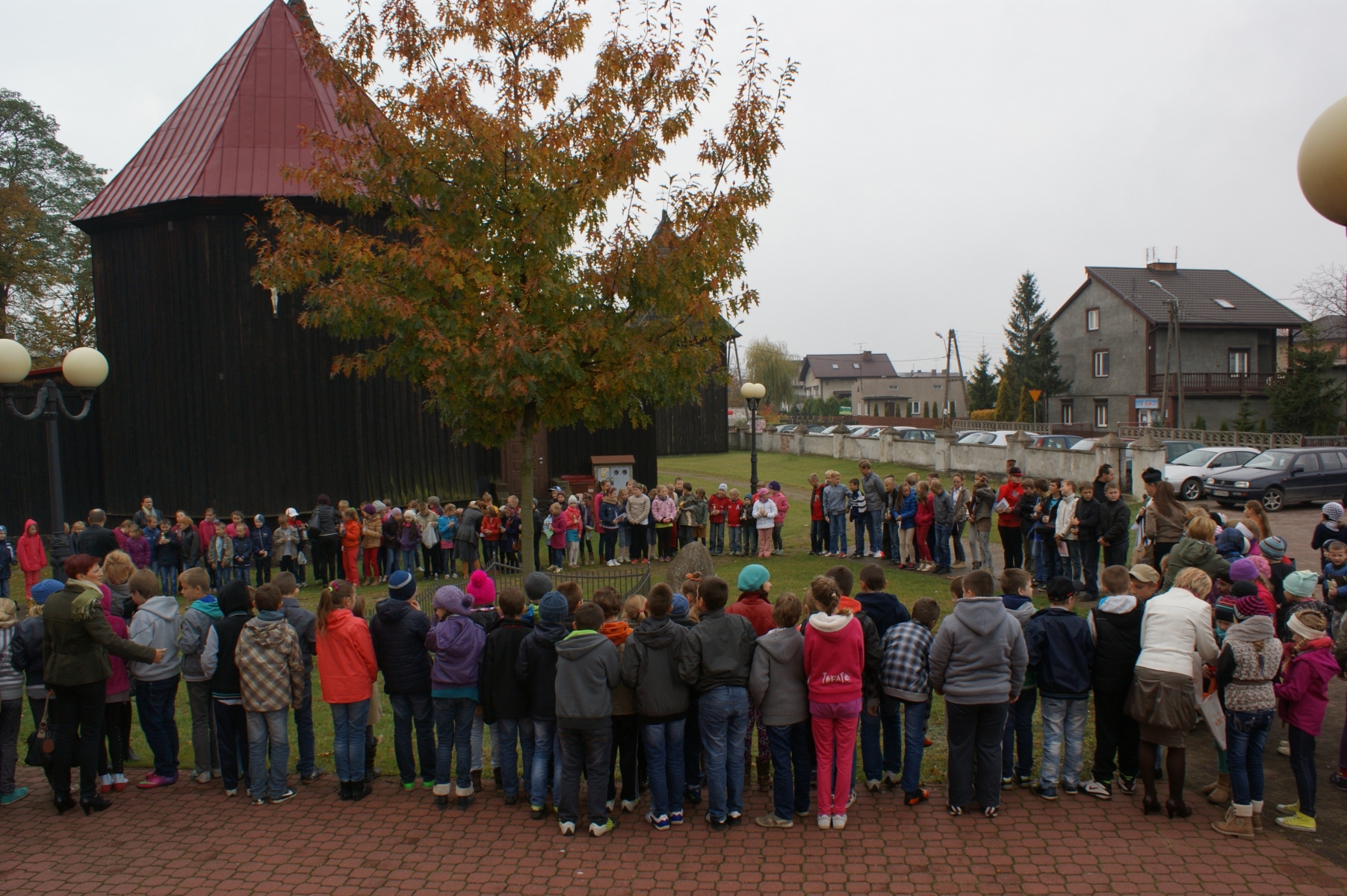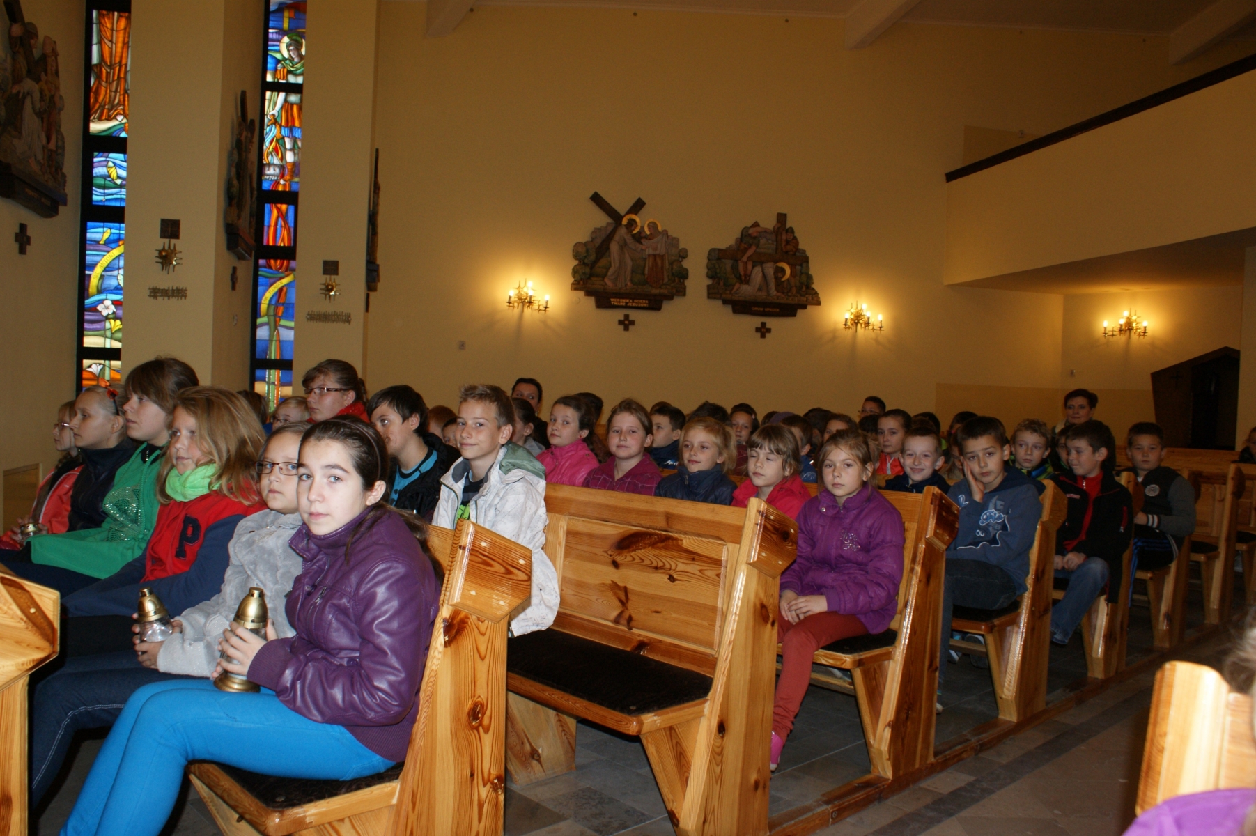 Następnie odbyło się podsumowanie konkursu różańcowego i wręczenie dyplomów i nagród wszystkim uczniom biorącym udział w konkursie. W ostatniej części spotkania uczniowie i nauczyciele zgromadzili się wokół dębu rosnącego przy kościele. Dąb ten przypomina nam postać Jana Pawła II. Tam zapaliliśmy znicze, a potem wróciliśmy do szkoły.