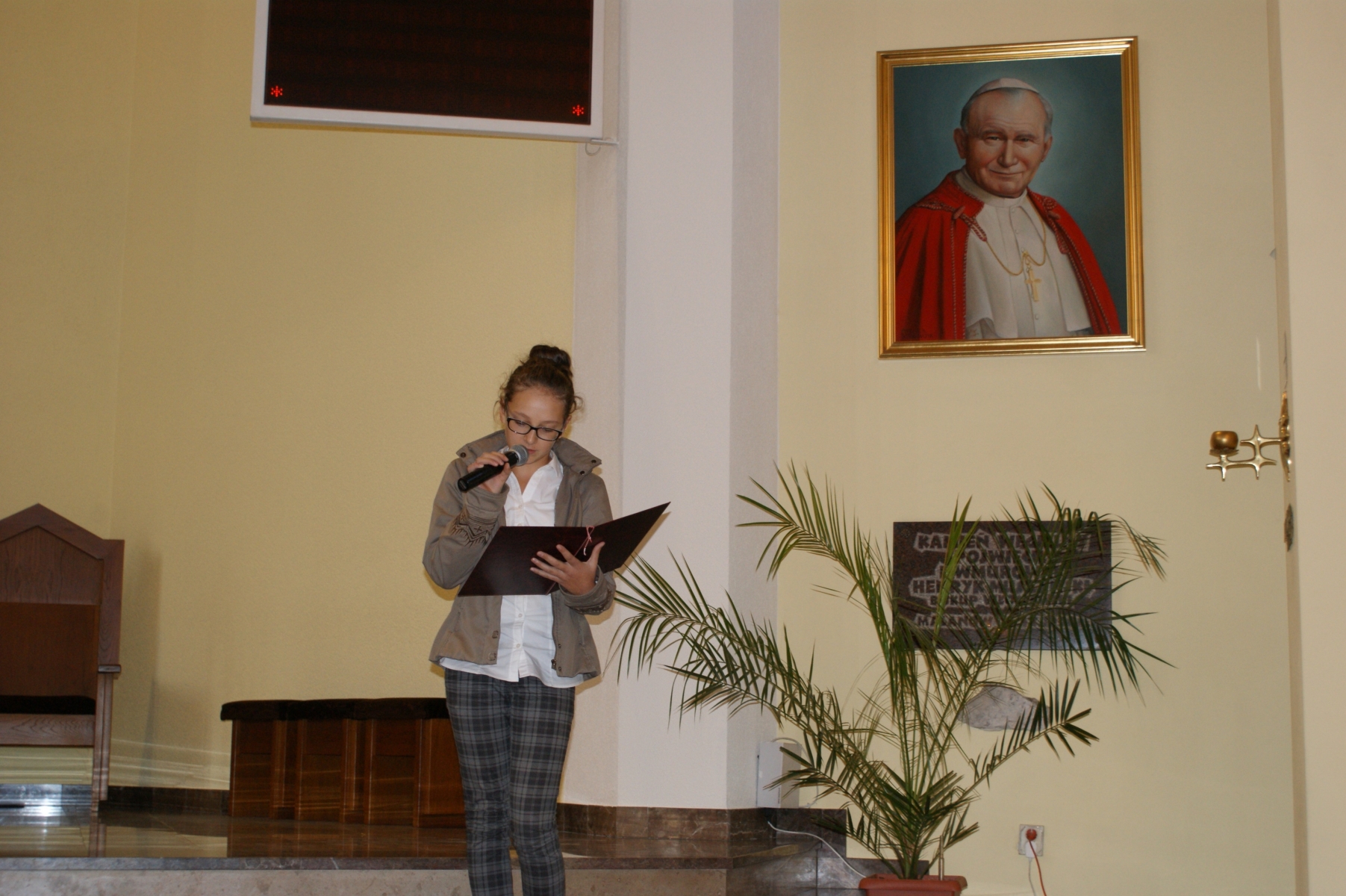 Pod takim hasłem przebiegał tegoroczny Dzień Papieski. Nasza szkoła w tym roku oddała cześć Papieżowi Janowi Pawłowi II udając się z wizytą do kościoła parafialnego w Malanowie. Spotkanie poprowadził ks. prałat Stanisław Płaszczyk, który na wstępie wspominał chwile jakie przeżył w związku z wyborem Karola Wojtyły na Papieża. Były to wspomnienia pełne wzruszeń. Uczniowie przygotowani przez p. katechetkę przedstawili Jana Pawła II jako mistrza dialogu. Wysłuchaliśmy słów samego Papieża nt. prowadzenia właściwie prowadzonego dialogu. Uczniowie prezentowali wiersze , które przeplatane były pieśniami. Na zakończenie wszyscy wspólnie odmówiliśmy modlitwę w intencji osób, które jeszcze nie potrafią właściwie prowadzić dialogu.