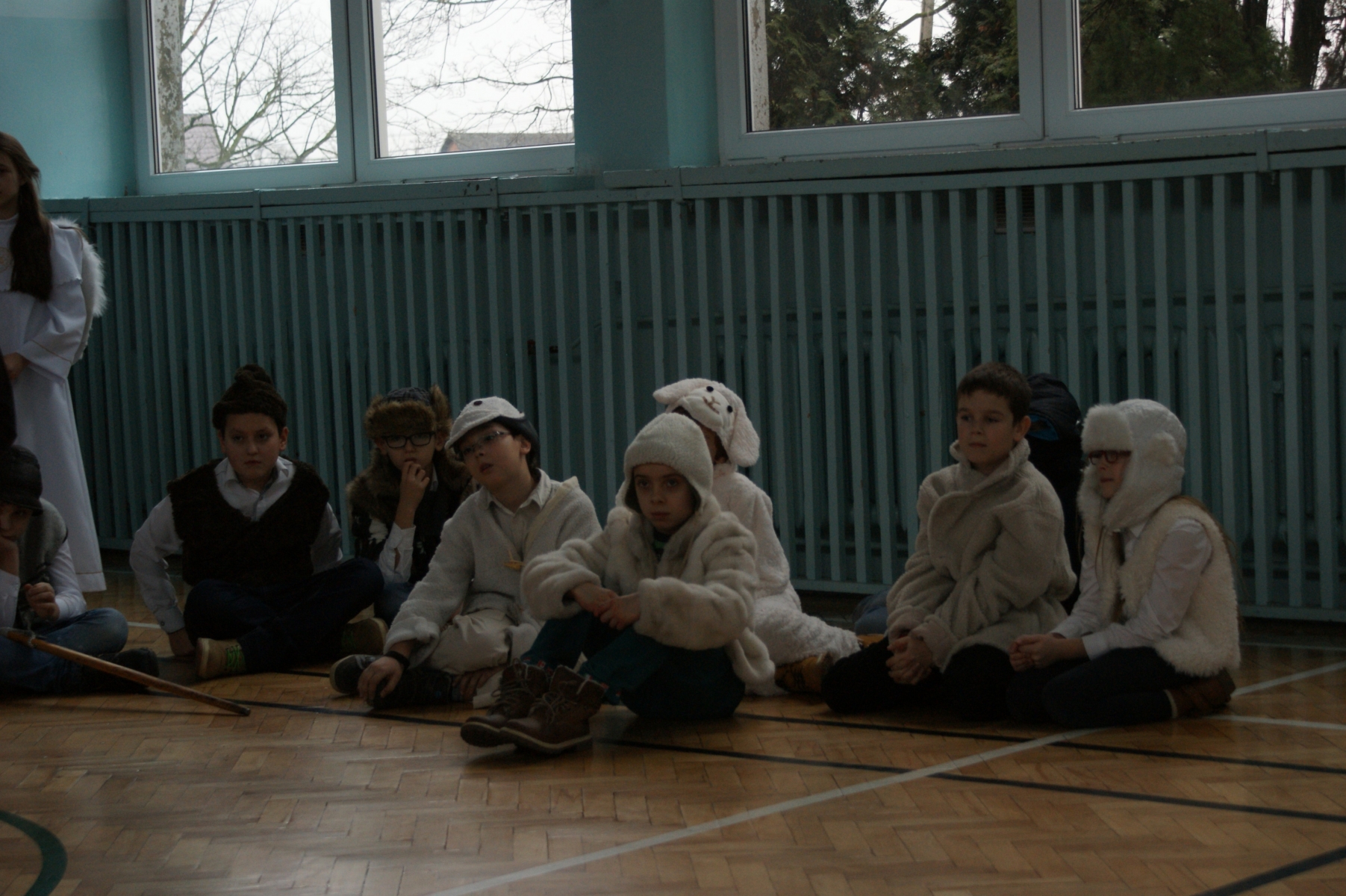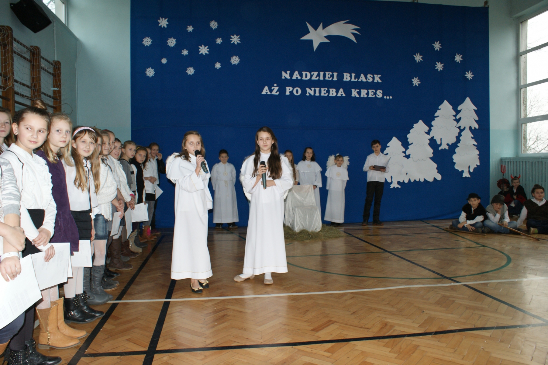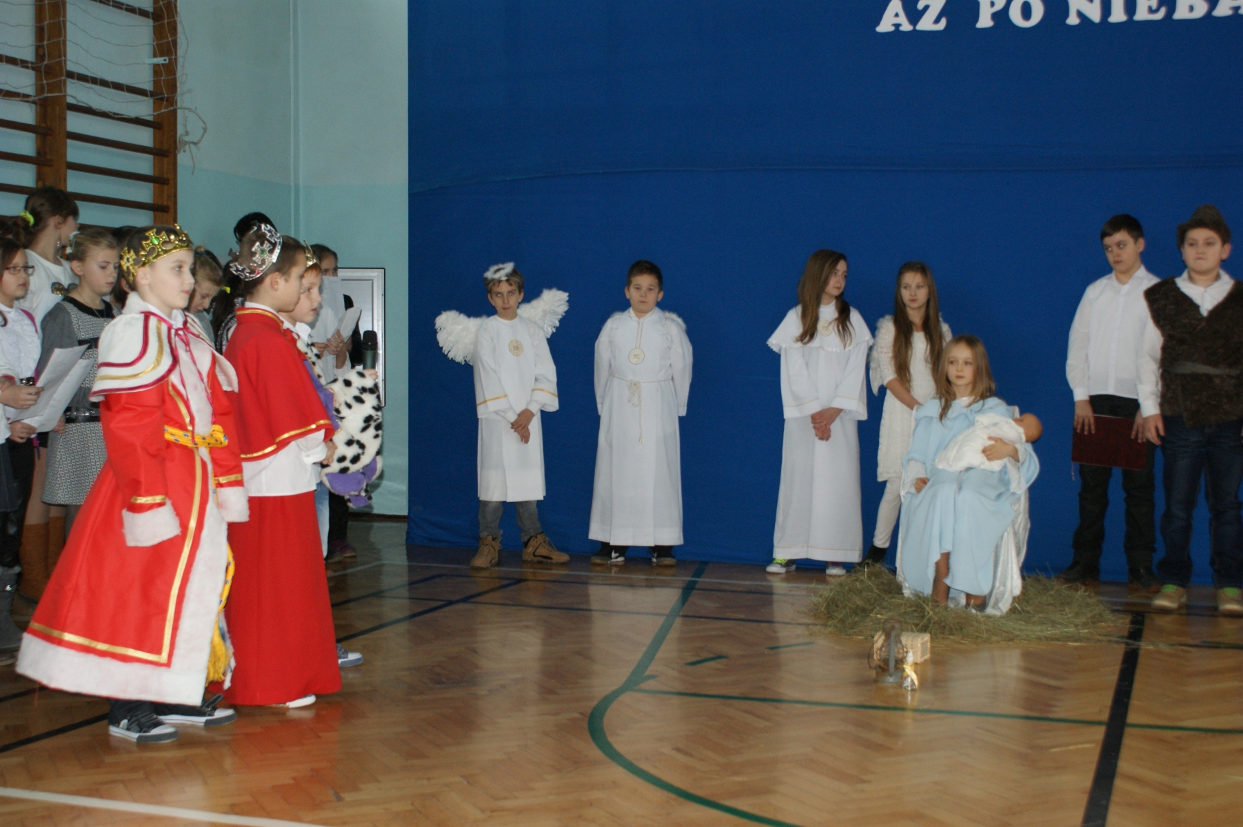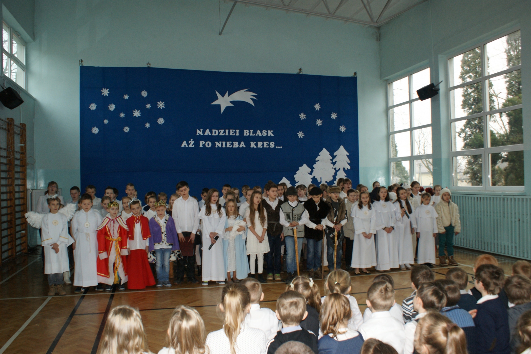 Jasełka przygotowali ks. Tomasz Smoliński i p. katechetka Małgorzata Przybylak. Przedstawienie przeplatane było pięknymi kolędami w wykonaniu uczniów klas IV – VI pod kierunkiem p. Katarzyny Tomczyk. Na świąteczny nastrój wpływ miała dekoracja wykonana przez p. Julitę Muszalską.