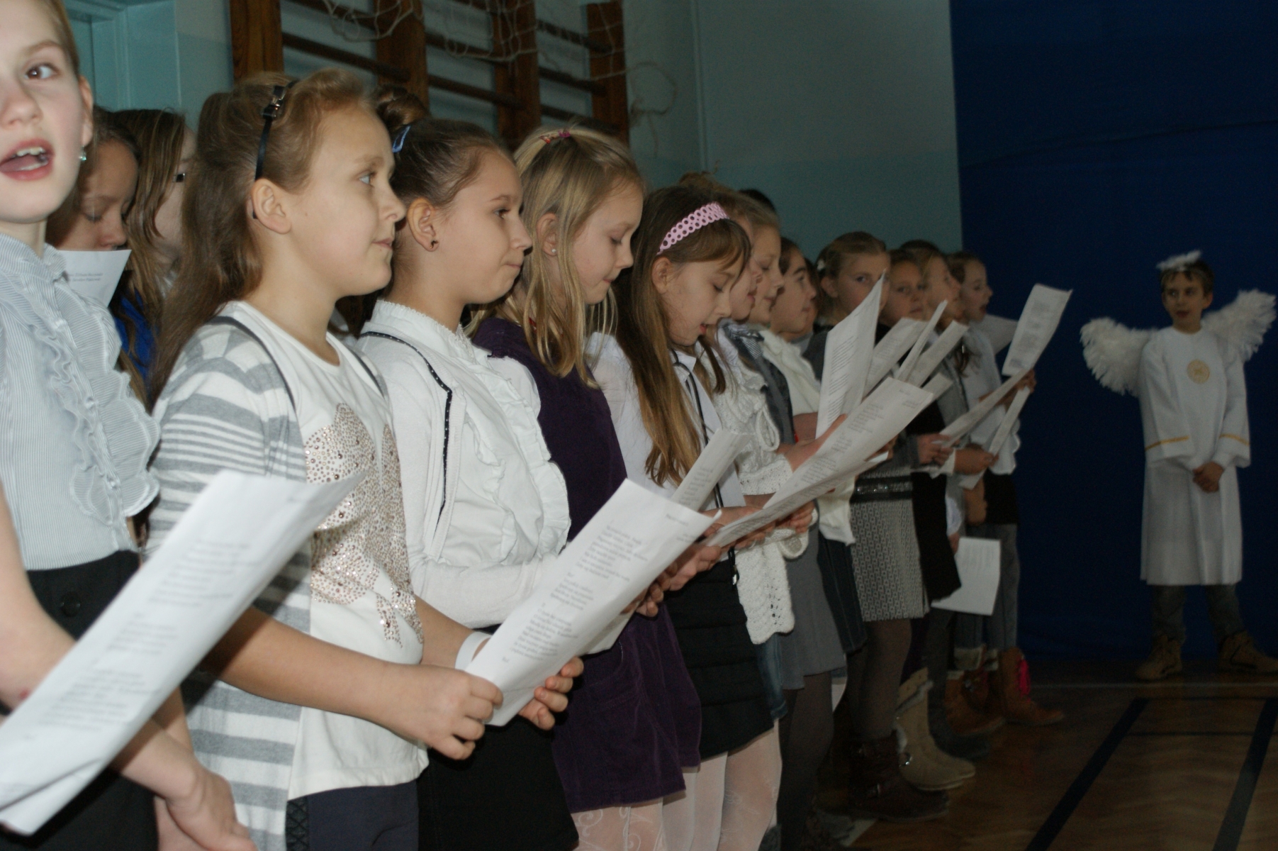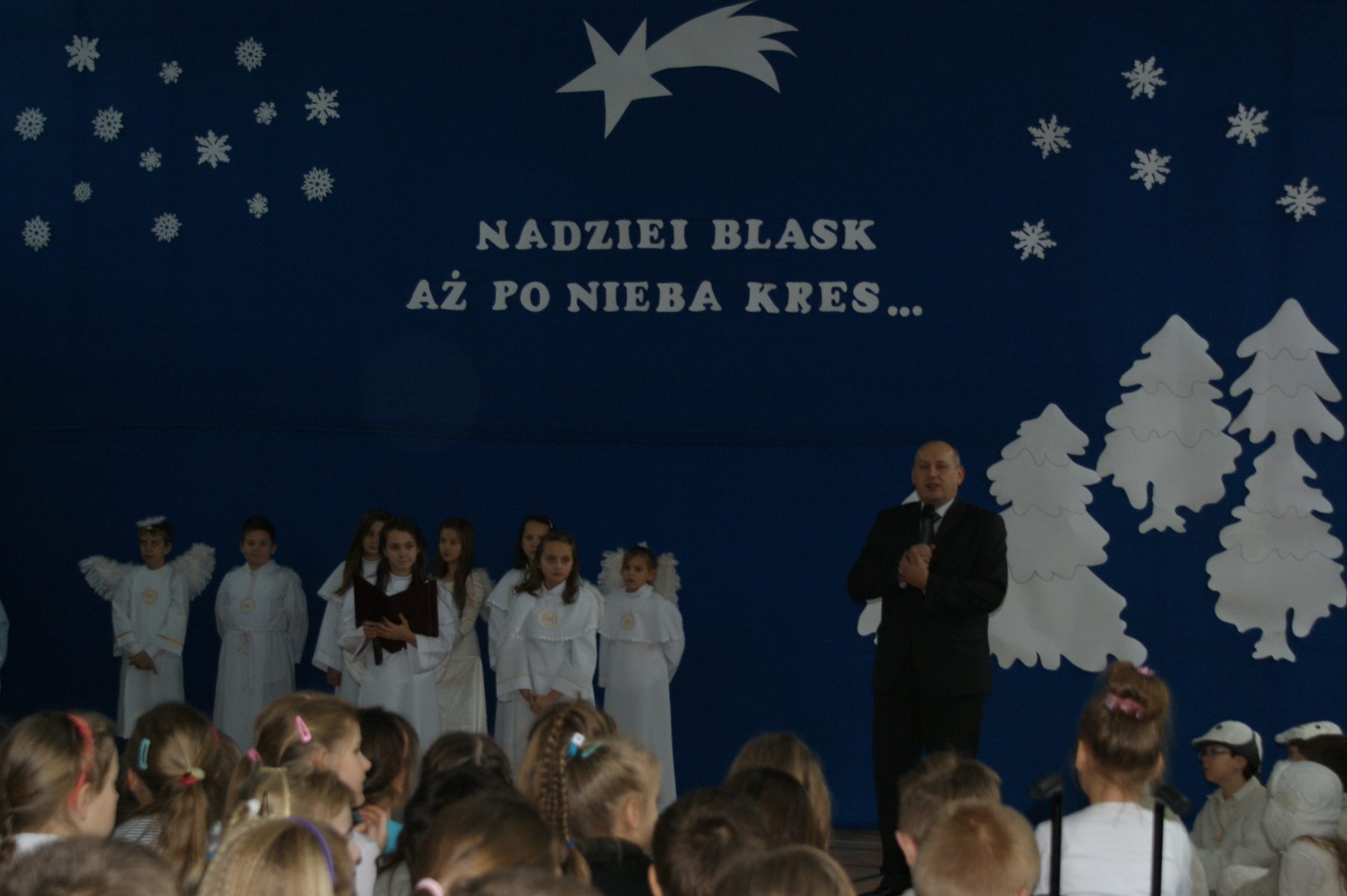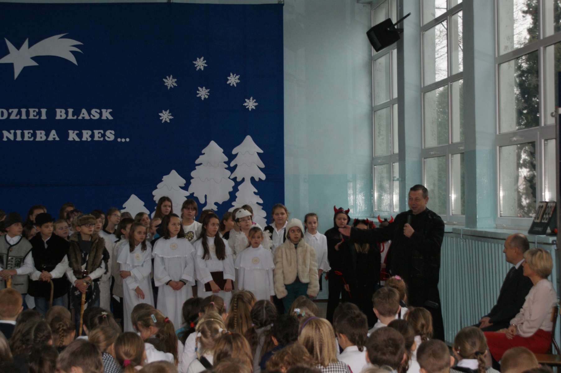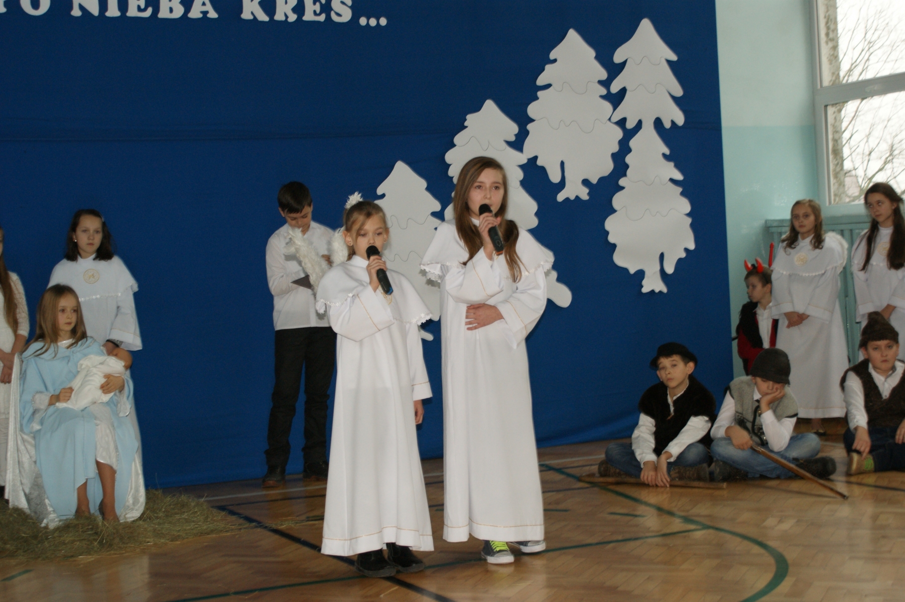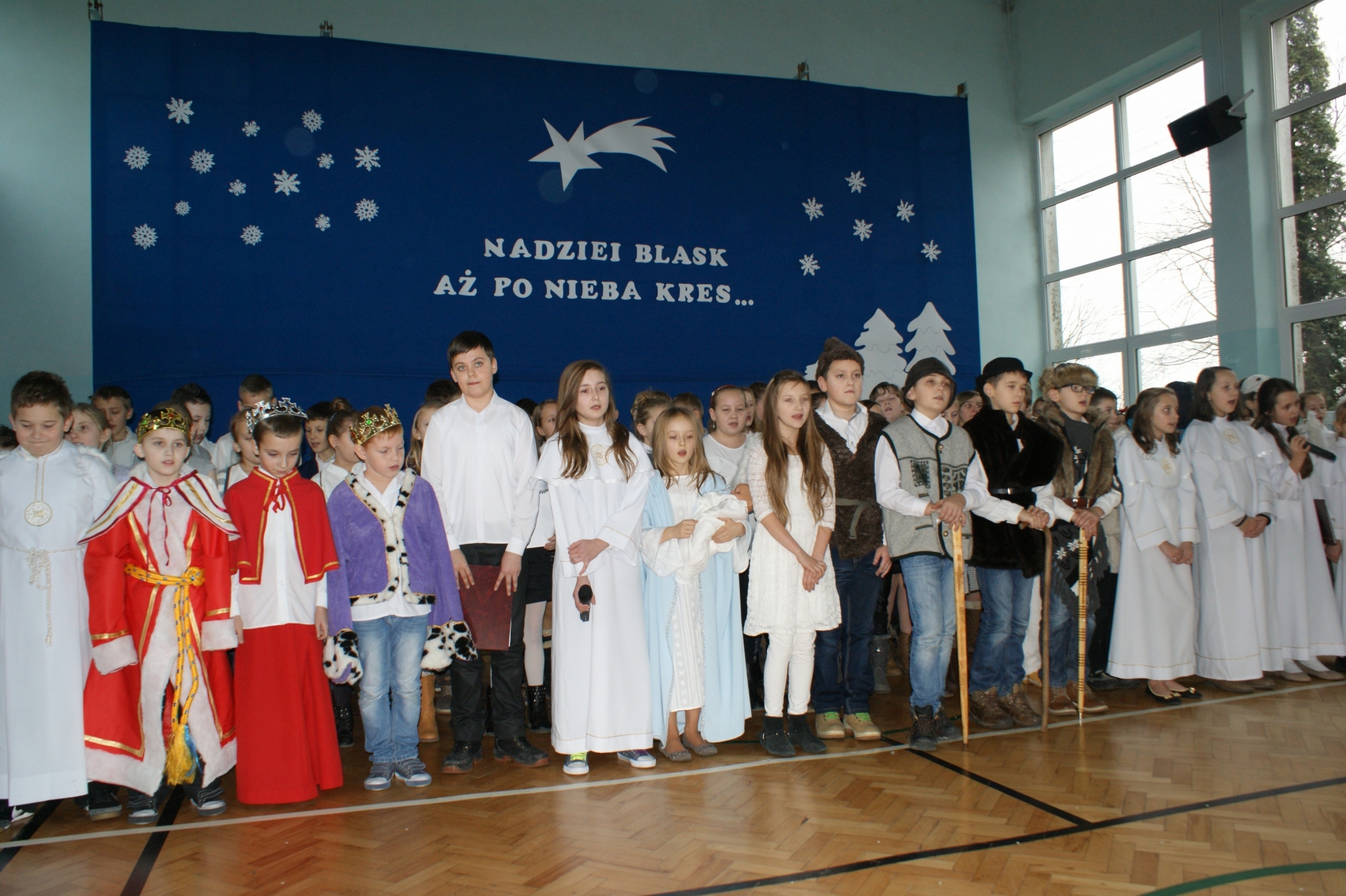 Jasełka przygotowali ks. Tomasz Smoliński i p. katechetka Małgorzata Przybylak. Przedstawienie przeplatane było pięknymi kolędami w wykonaniu uczniów klas IV – VI pod kierunkiem p. Katarzyny Tomczyk. Na świąteczny nastrój wpływ miała dekoracja wykonana przez p. Julitę Muszalską.