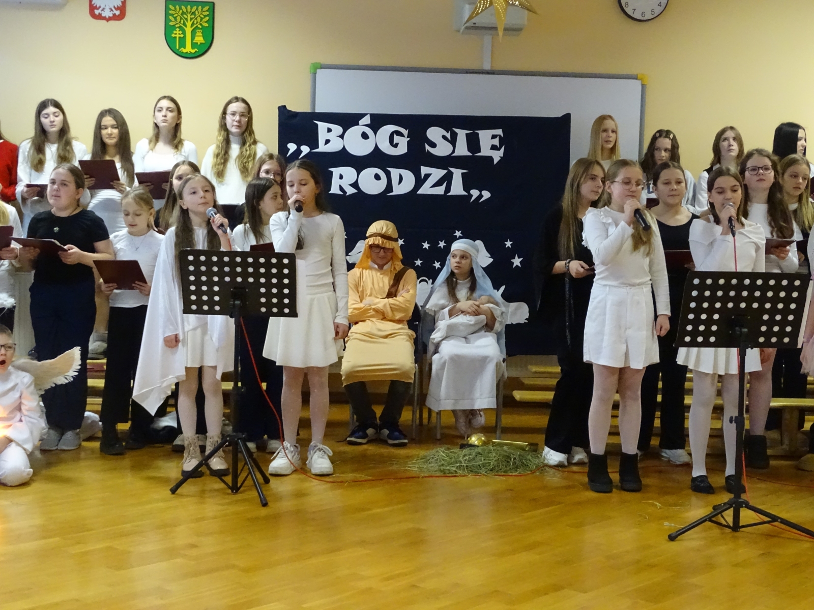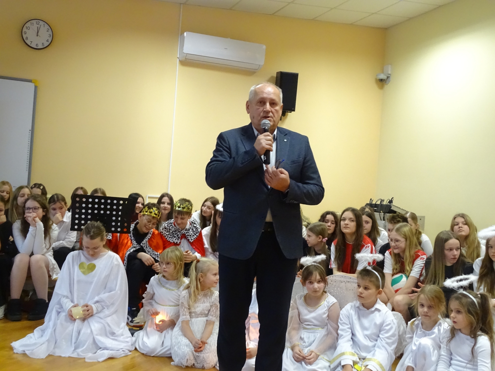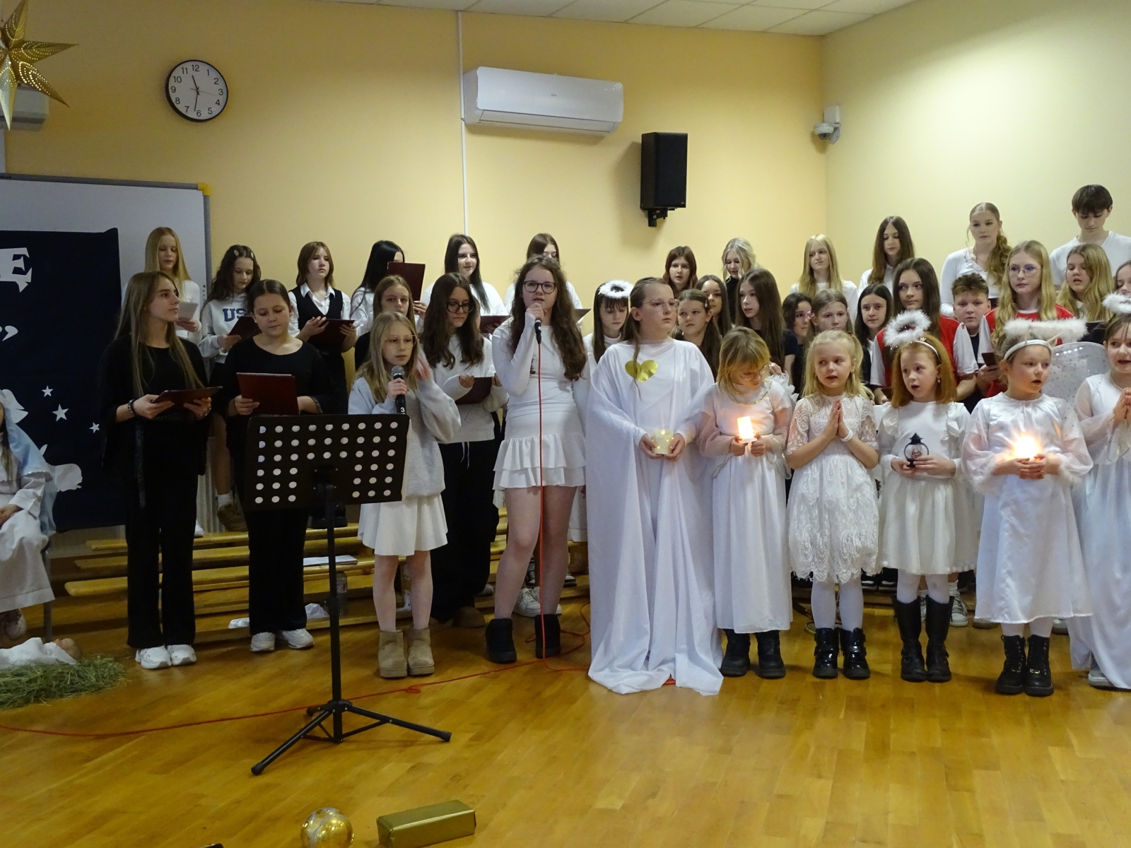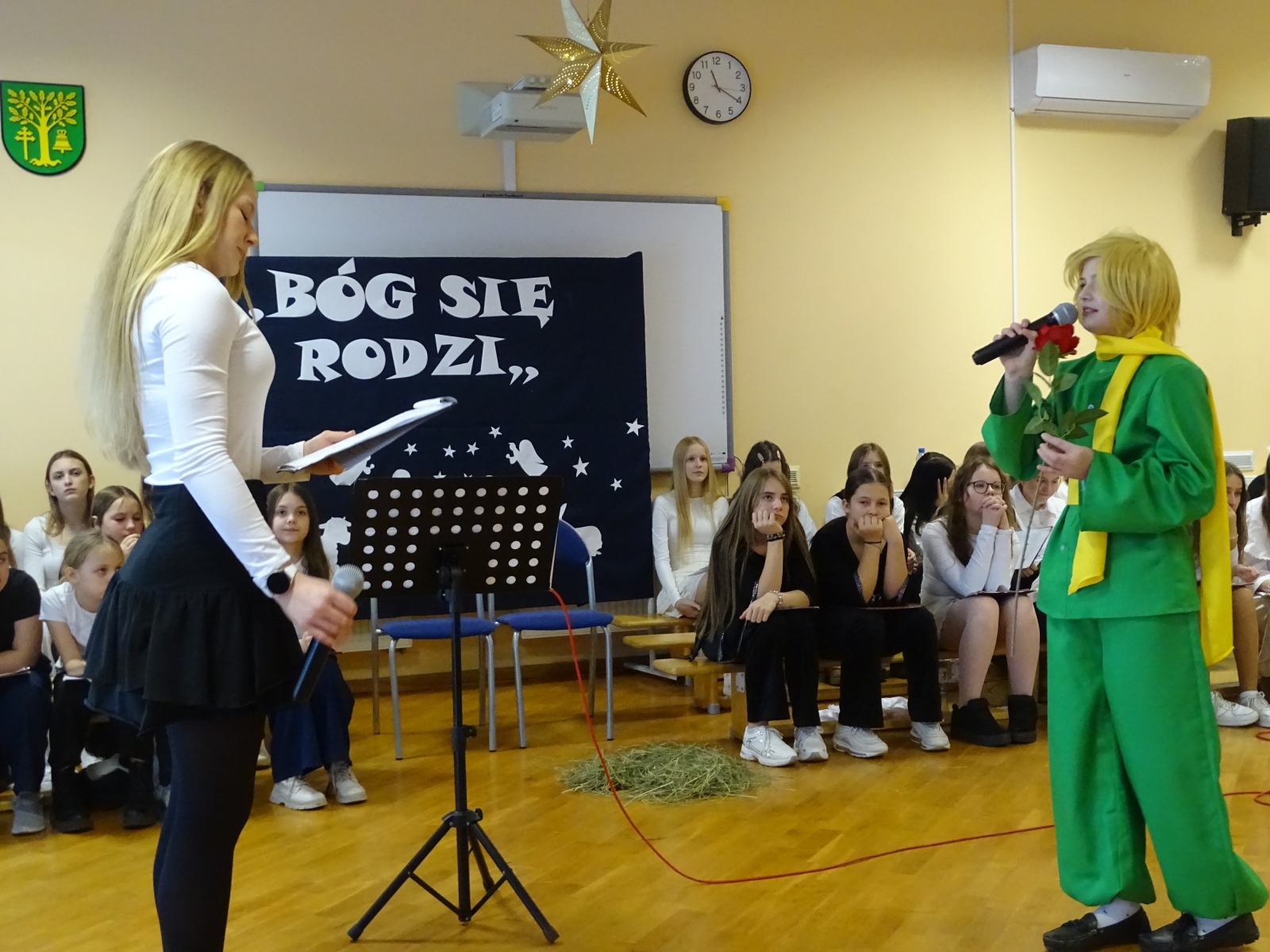 19 grudnia 2025 roku w Szkole Podstawowej w Malanowie odbyło się wyjątkowe przedstawienie jasełkowe zatytułowane ,,Jasełka z Małym Księciem”. Tegoroczne widowisko Bożonarodzeniowe miało nie tylko tradycyjny, ale również symboliczny charakter, łącząc historię narodzin Jezusa z przesłaniem przyjaźni, miłości i odpowiedzialności za drugiego człowieka, znanym z lektury Mały Książe autorstwa Antoine’a de Saint-Exupery’ego. Uczniowie w niezwykle poruszający sposób zaprezentowali sceny biblijne, przeplatane refleksjami Małego Księcia o tym, co w życiu najważniejsze i ,,niewidoczne dla oczu”. Całość przedstawienia wzbogacona była oprawą muzyczną. Piękne kolędy w wykonaniu chóru szkolnego, pod kierunkiem pani Katarzyny Tomczyk, wprowadziły zgromadzonych w świąteczny nastrój, a ich wspólny śpiew spotkał się z dużym uznaniem publiczności. Szczególnym momentem był także taniec do piosenki ,,Mario, czy ty wiesz, który wzruszył widzów i podkreślił wyjątkowość tej opowieści o Bożym Narodzeniu. W świąteczny klimat wprowadziła piękna dekoracja w wykonaniu pani Anety Świtalskiej i Jacka Stasińczuka. W uroczystości wzięli udział zaproszeni goście: Wójt Gminy Malanów Ireneusz Augustyniak, Ksiądz Proboszcz Tomasz Kalinowski oraz Przewodnicząca Rady Rodziców Małgorzata Lament. Ich obecność była dla społeczności szkolnej dużym wyróżnieniem i podkreśliła rangę wydarzenia. Jasełka ,,Z Małym Księciem” stały się nie tylko pięknym artystycznym przeżyciem, ale również okazją do wspólnej refleksji nad sensem Świąt Bożego Narodzenia. To wydarzenie na długo pozostanie w pamięci uczniów, nauczycieli, rodziców oraz wszystkich zaproszonych gości.