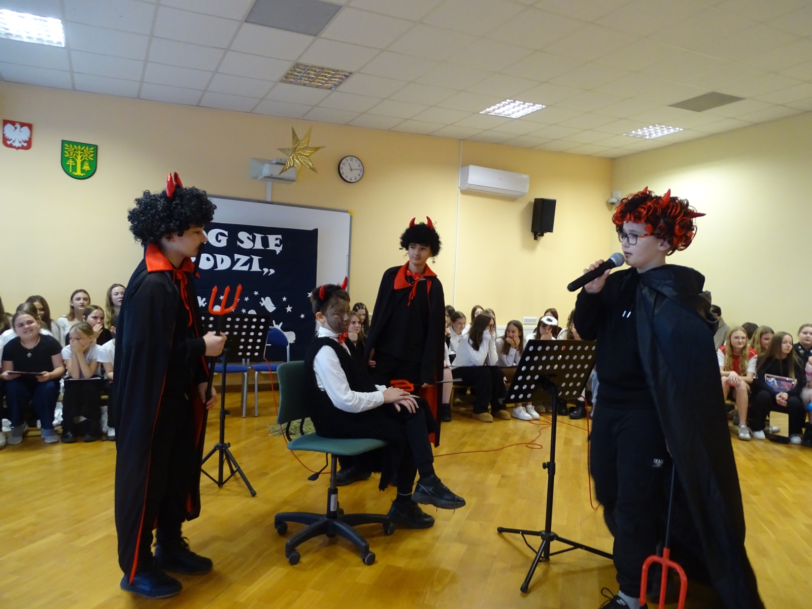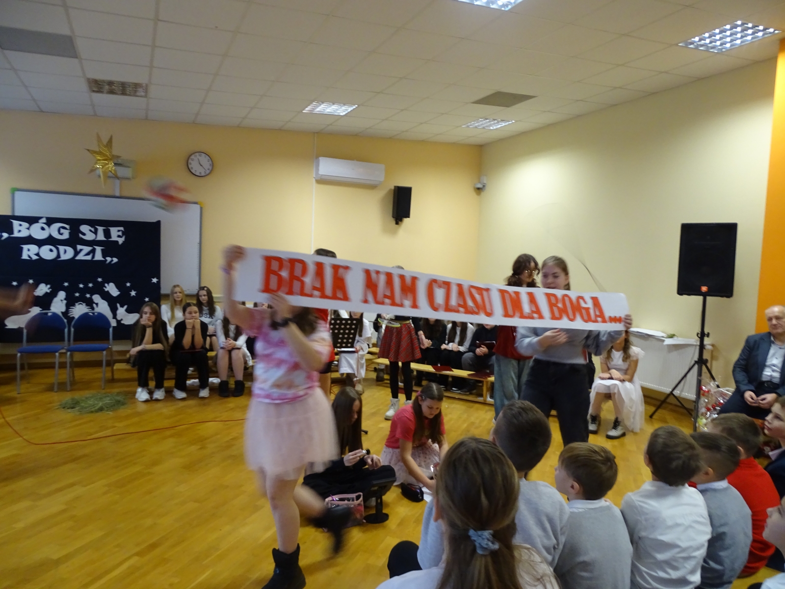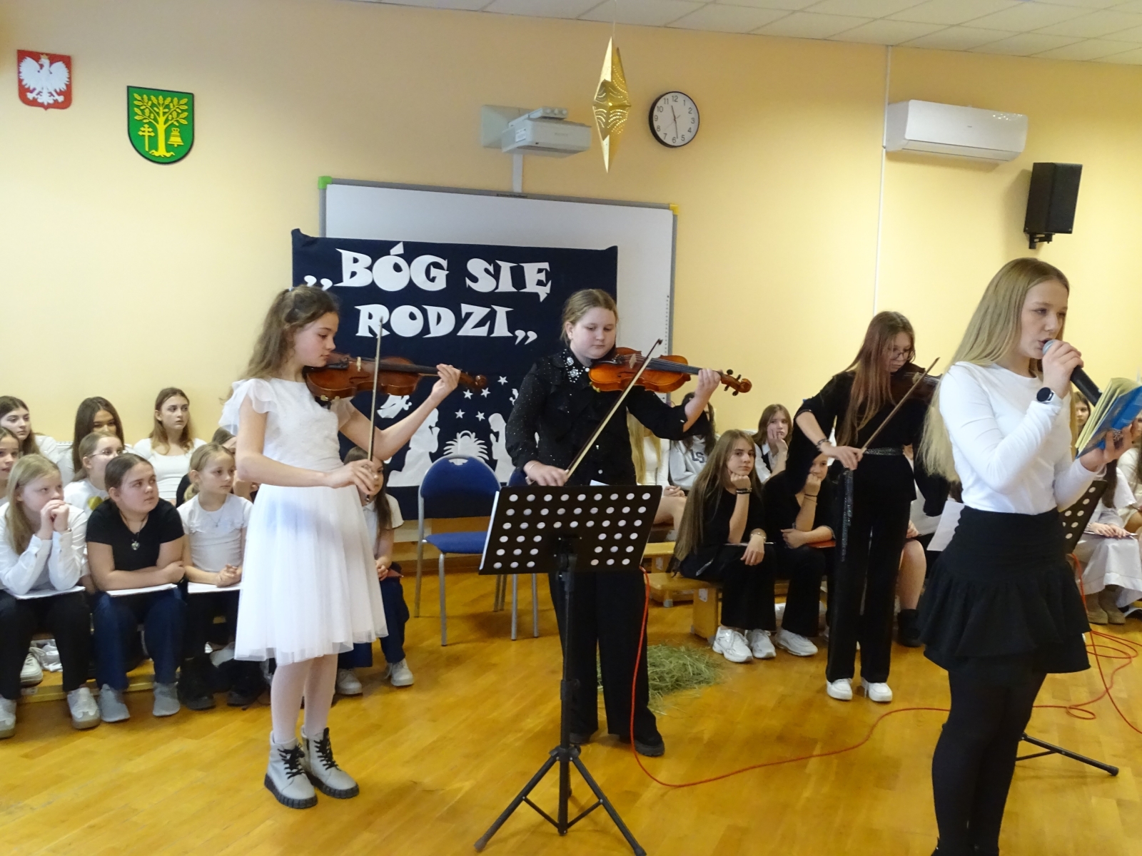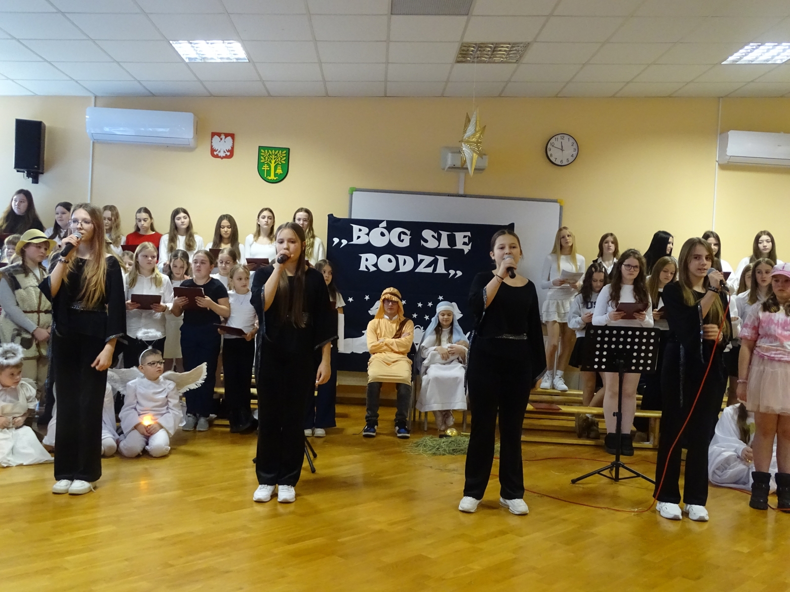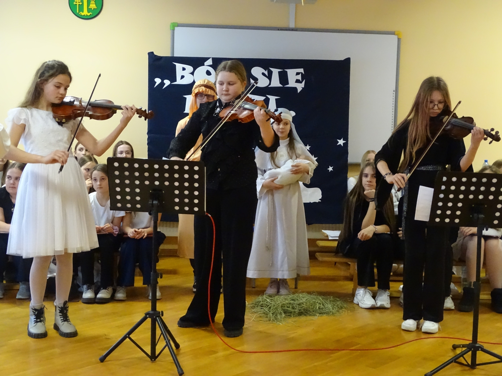19 grudnia 2025 roku w Szkole Podstawowej w Malanowie odbyło się wyjątkowe przedstawienie jasełkowe zatytułowane ,,Jasełka z Małym Księciem”. Tegoroczne widowisko Bożonarodzeniowe miało nie tylko tradycyjny, ale również symboliczny charakter, łącząc historię narodzin Jezusa z przesłaniem przyjaźni, miłości i odpowiedzialności za drugiego człowieka, znanym z lektury Mały Książe autorstwa Antoine’a de Saint-Exupery’ego. Uczniowie w niezwykle poruszający sposób zaprezentowali sceny biblijne, przeplatane refleksjami Małego Księcia o tym, co w życiu najważniejsze i ,,niewidoczne dla oczu”. Całość przedstawienia wzbogacona była oprawą muzyczną. Piękne kolędy w wykonaniu chóru szkolnego, pod kierunkiem pani Katarzyny Tomczyk, wprowadziły zgromadzonych w świąteczny nastrój, a ich wspólny śpiew spotkał się z dużym uznaniem publiczności. Szczególnym momentem był także taniec do piosenki ,,Mario, czy ty wiesz, który wzruszył widzów i podkreślił wyjątkowość tej opowieści o Bożym Narodzeniu. W świąteczny klimat wprowadziła piękna dekoracja w wykonaniu pani Anety Świtalskiej i Jacka Stasińczuka. W uroczystości wzięli udział zaproszeni goście: Wójt Gminy Malanów Ireneusz Augustyniak, Ksiądz Proboszcz Tomasz Kalinowski oraz Przewodnicząca Rady Rodziców Małgorzata Lament. Ich obecność była dla społeczności szkolnej dużym wyróżnieniem i podkreśliła rangę wydarzenia. Jasełka ,,Z Małym Księciem” stały się nie tylko pięknym artystycznym przeżyciem, ale również okazją do wspólnej refleksji nad sensem Świąt Bożego Narodzenia. To wydarzenie na długo pozostanie w pamięci uczniów, nauczycieli, rodziców oraz wszystkich zaproszonych gości.